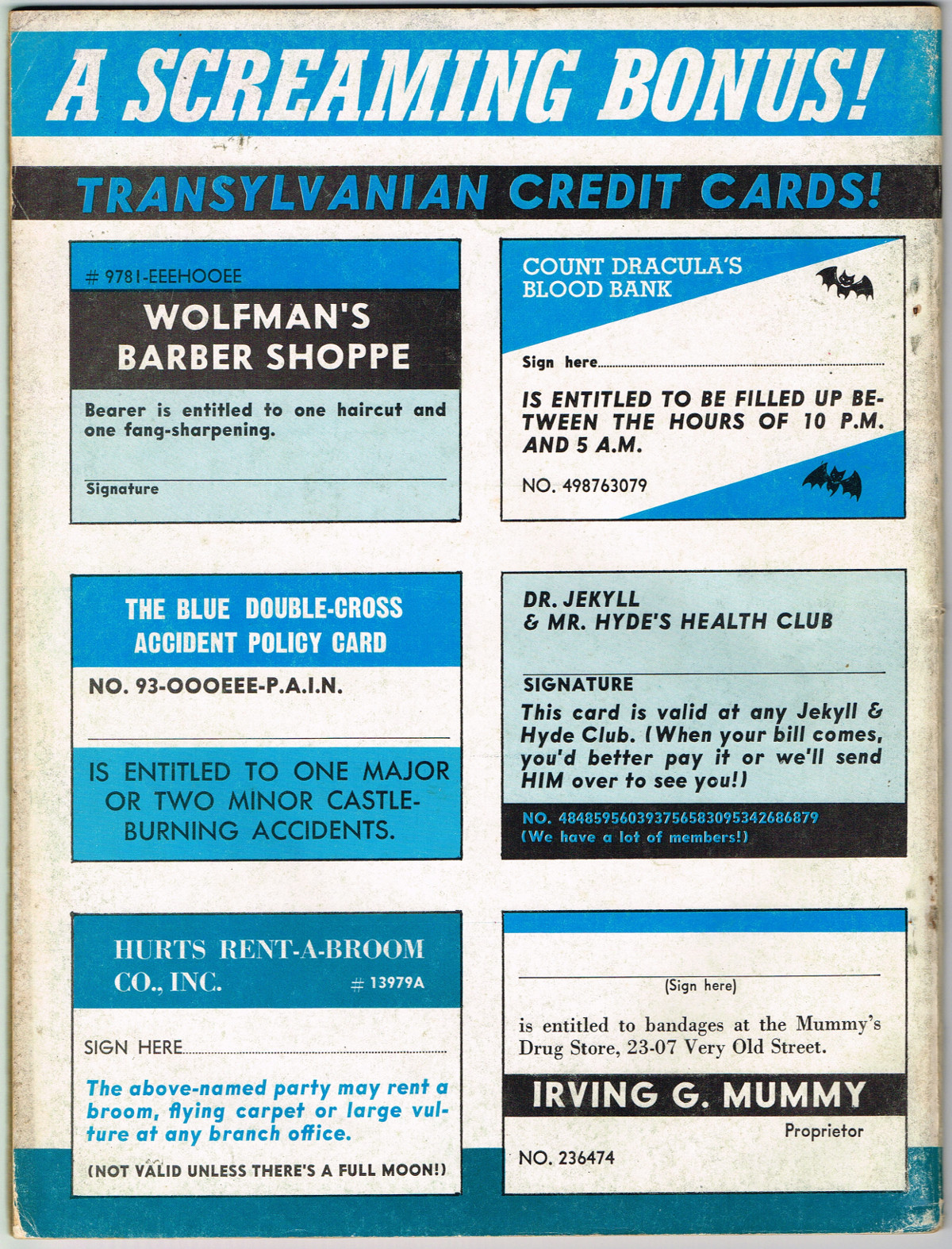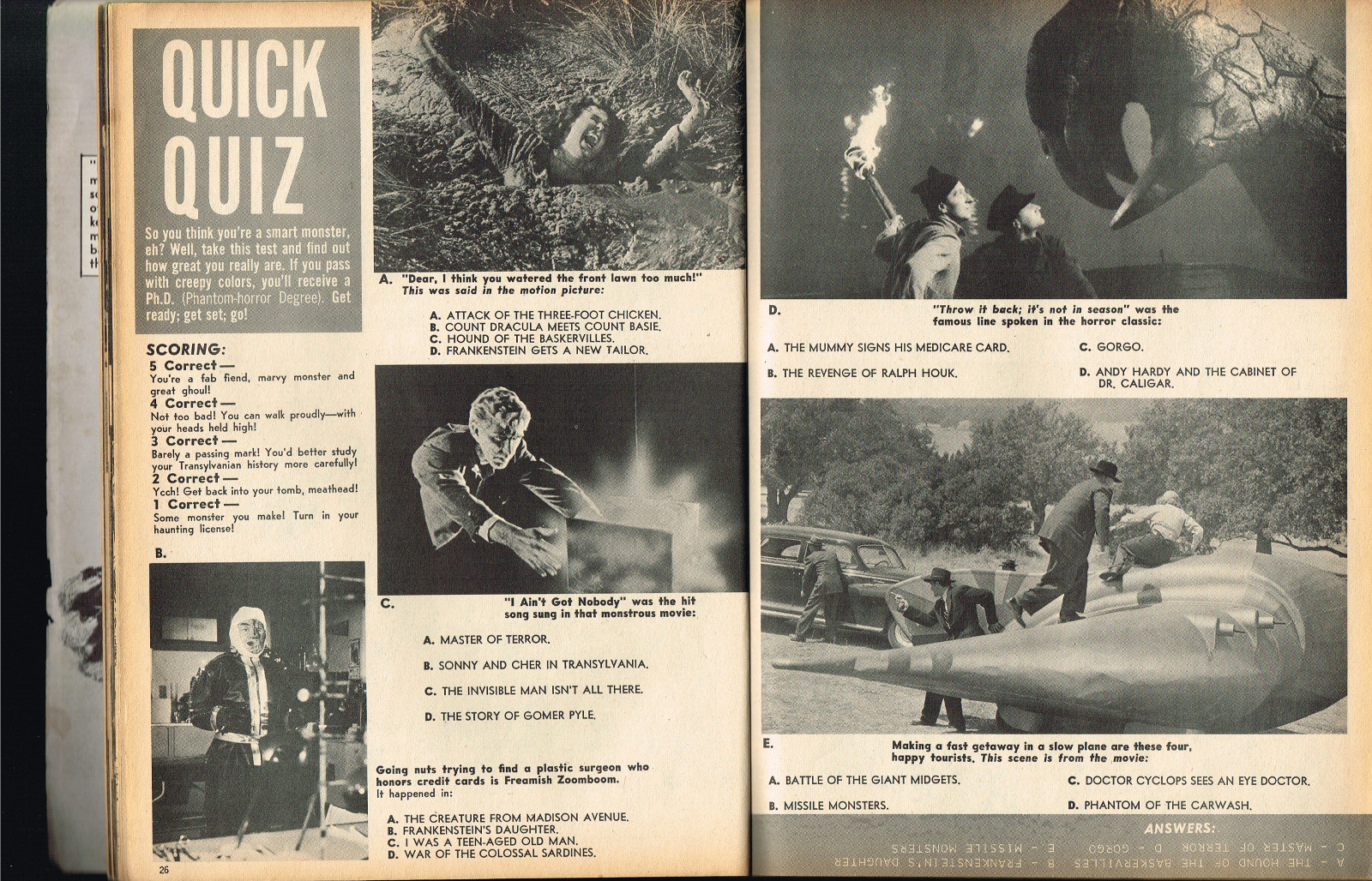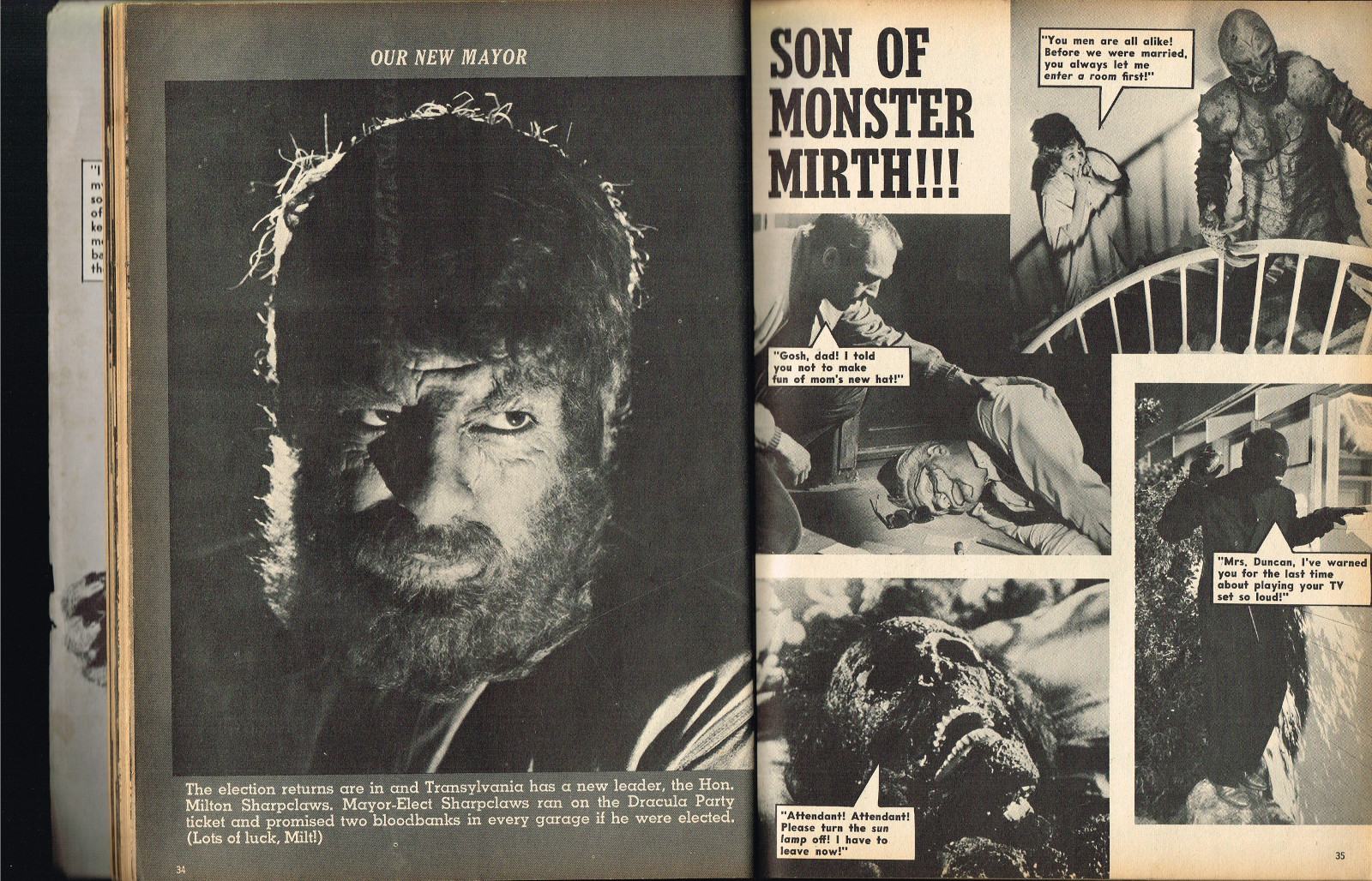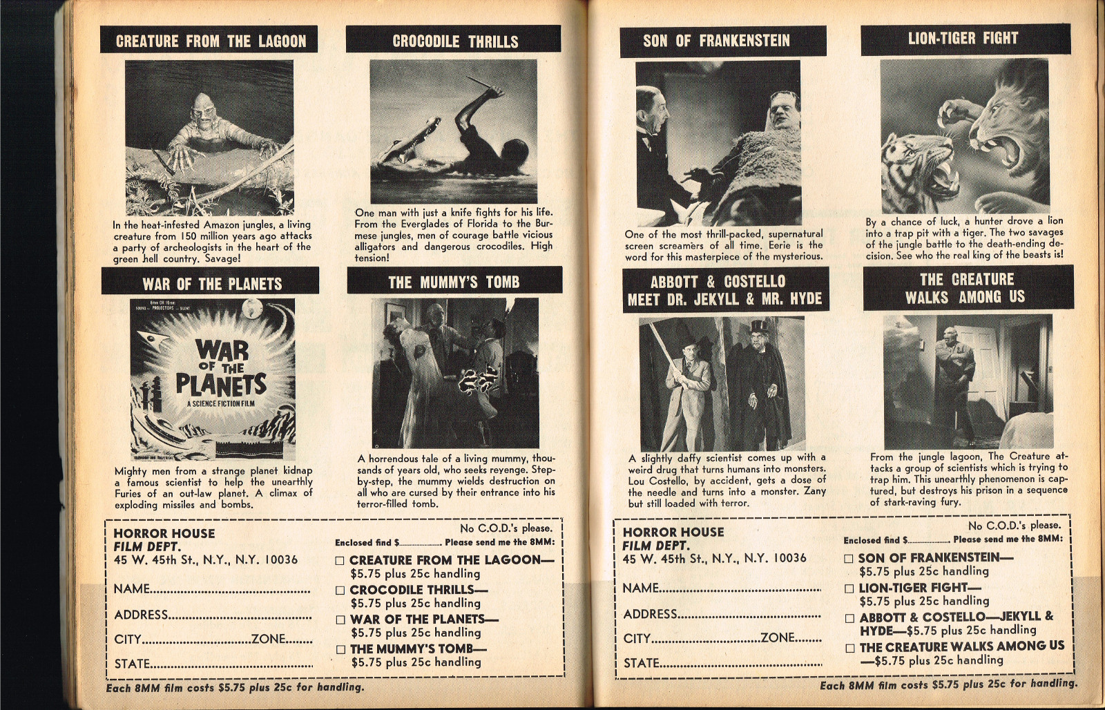 With issue 3 of Cracked’s For Monsters Only, the cartoons and comic stories, the photo-gags, and the horror coverage for both old and newer monsters packed its pages well. Even the John Severin cover was quite inviting as it stared back at you from the overcrowded magazine rack daring you to join the monster party. In this issue Richard Bojarski writes a lengthy, informative article in The Horror Worlds of Karloff (and remember kids, there wasn’t any Google or Wikipedia to refer to!), the School for Monsters shows us where all those monsters appearing everywhere in the 1960s were graduating from (note that horror host Zacherle headed the employment bureau), and John Severin provided some Dungeon Dan-Dan-Dandies to chew on.