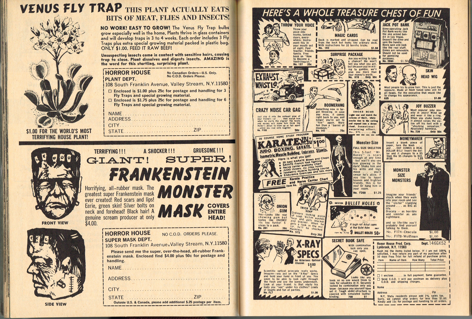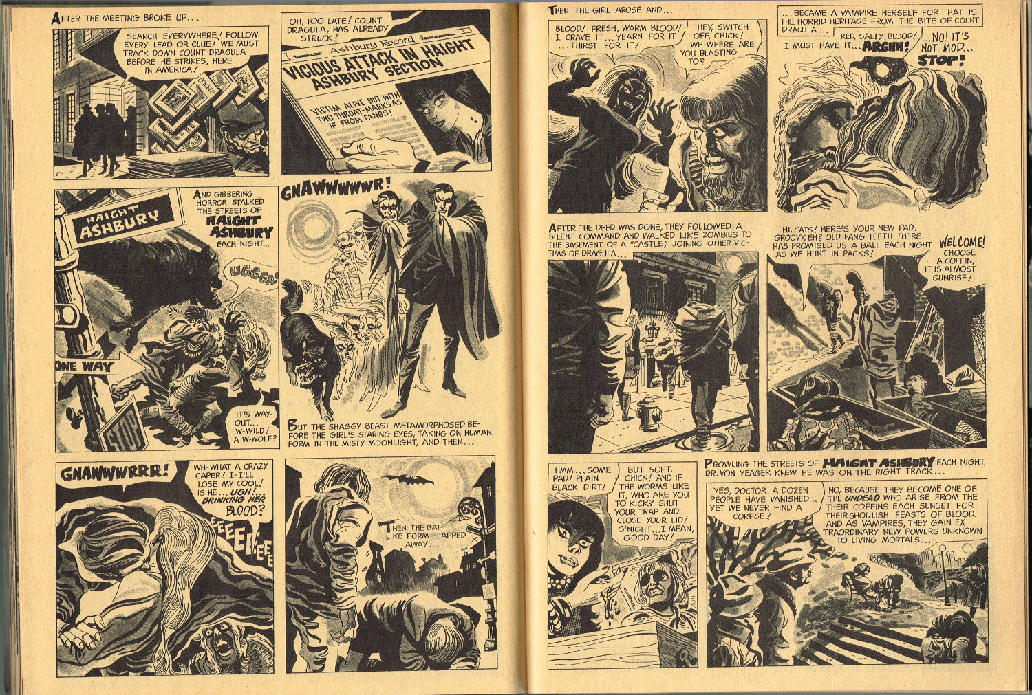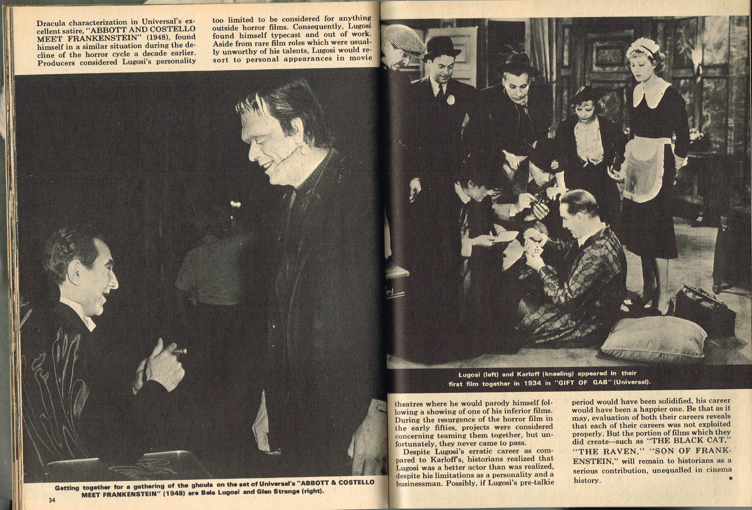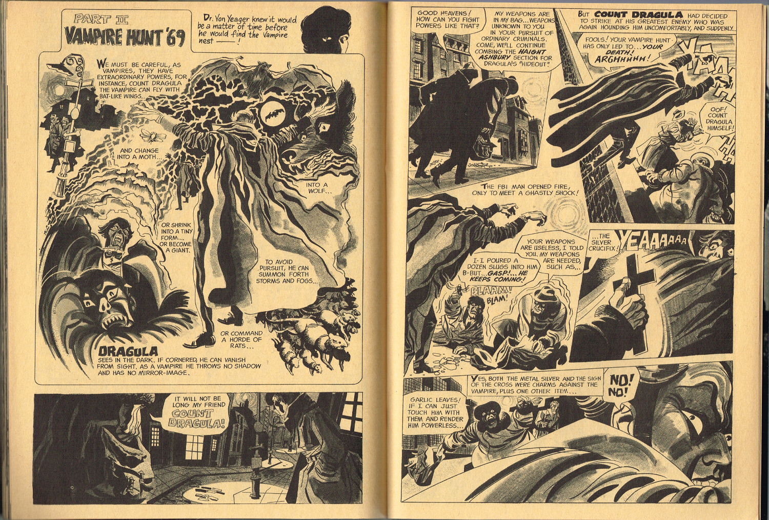 Richard Bojarski comes to the rescue again in issue 7 of Cracked's For Monsters Only with Peter Cushing: Monster Fighter and Karloff and Lugosi: The Titans of Terror. Otherwise, it's the usual filler comprised of ad pages, humor pages (which are actually quite funny this time around), and a 16-page comic, The Secret Files of Marc Vangoro, Master of Horror (he appears in another adventure in CFMO No. 8.)