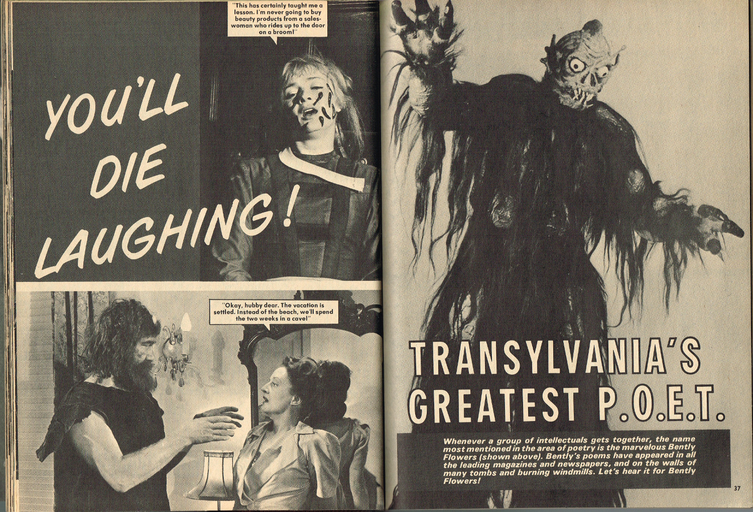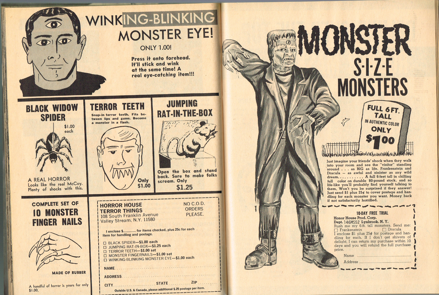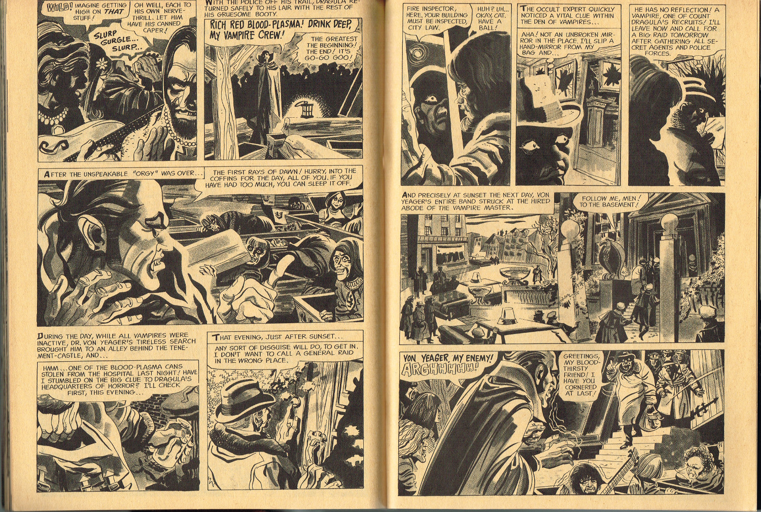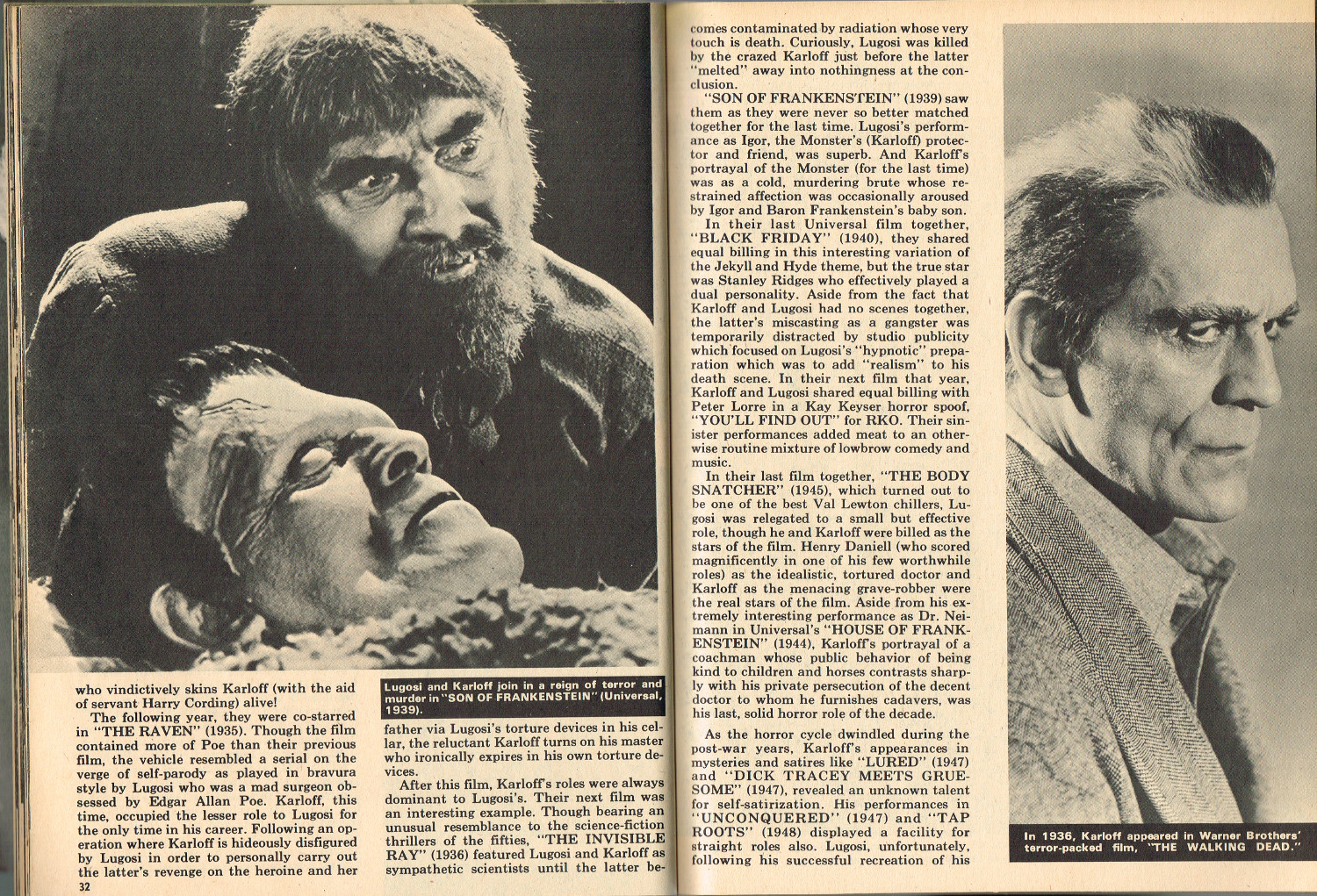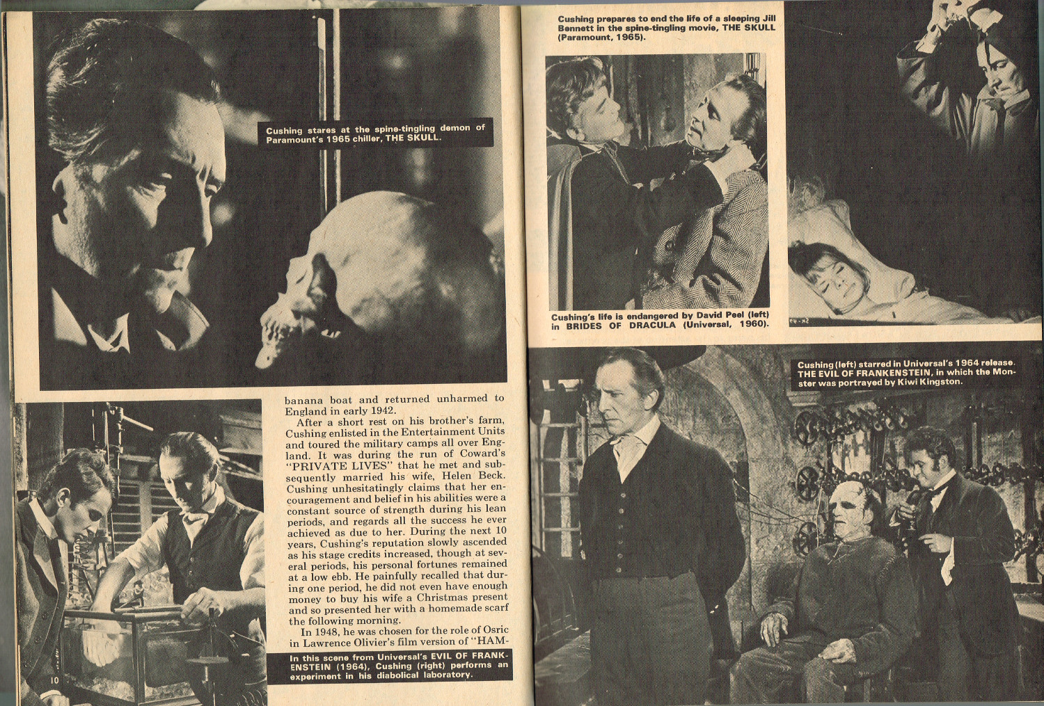Richard Bojarski comes to the rescue again in issue 7 of Cracked's For Monsters Only with Peter Cushing: Monster Fighter and Karloff and Lugosi: The Titans of Terror. Otherwise, it's the usual filler comprised of ad pages, humor pages (which are actually quite funny this time around), and a 16-page comic, The Secret Files of Marc Vangoro, Master of Horror (he appears in another adventure in CFMO No. 8.)