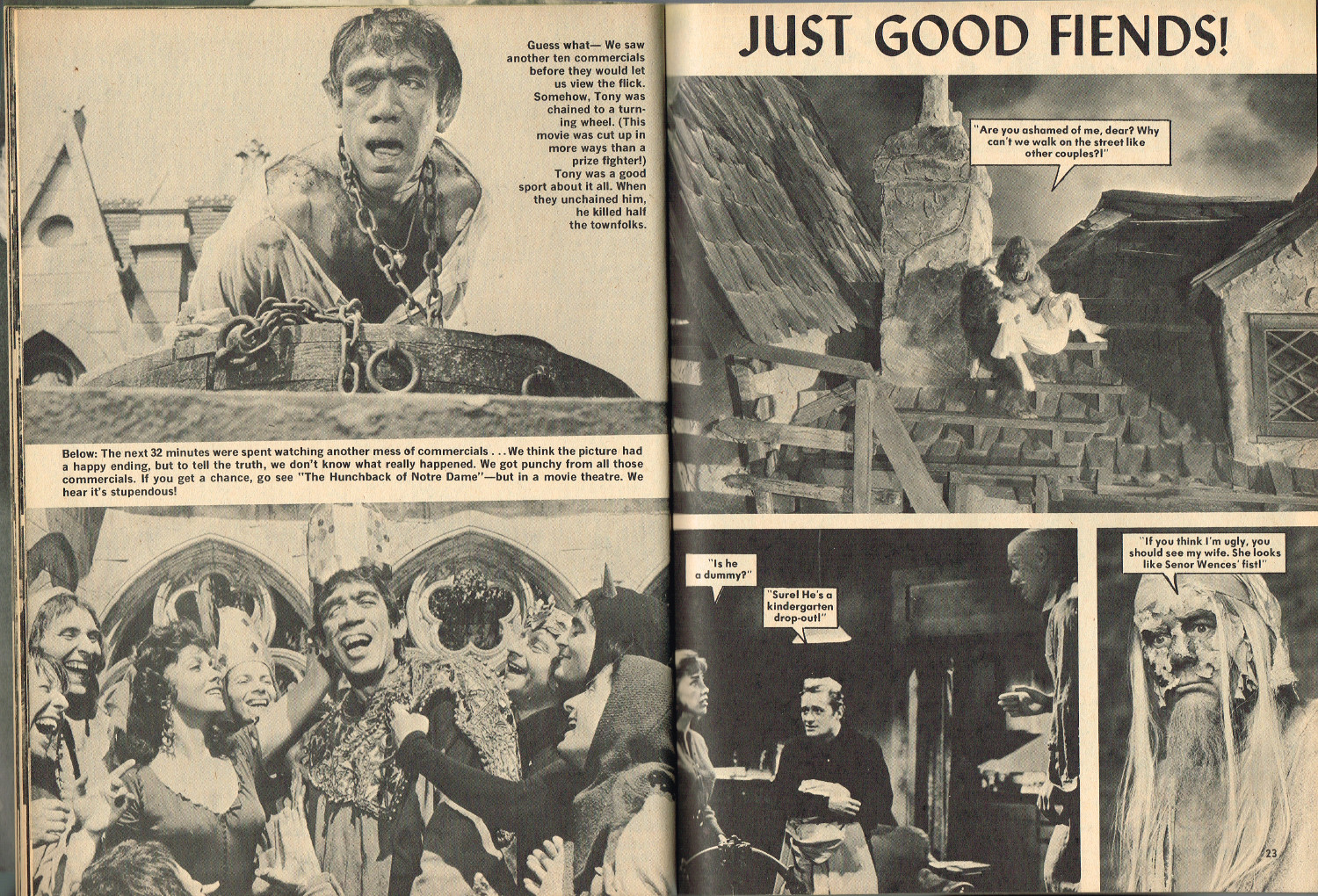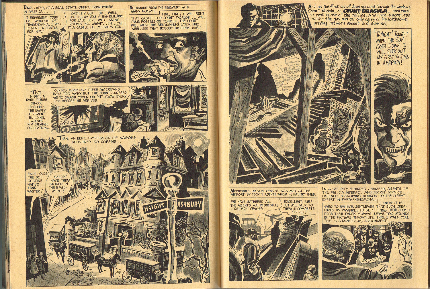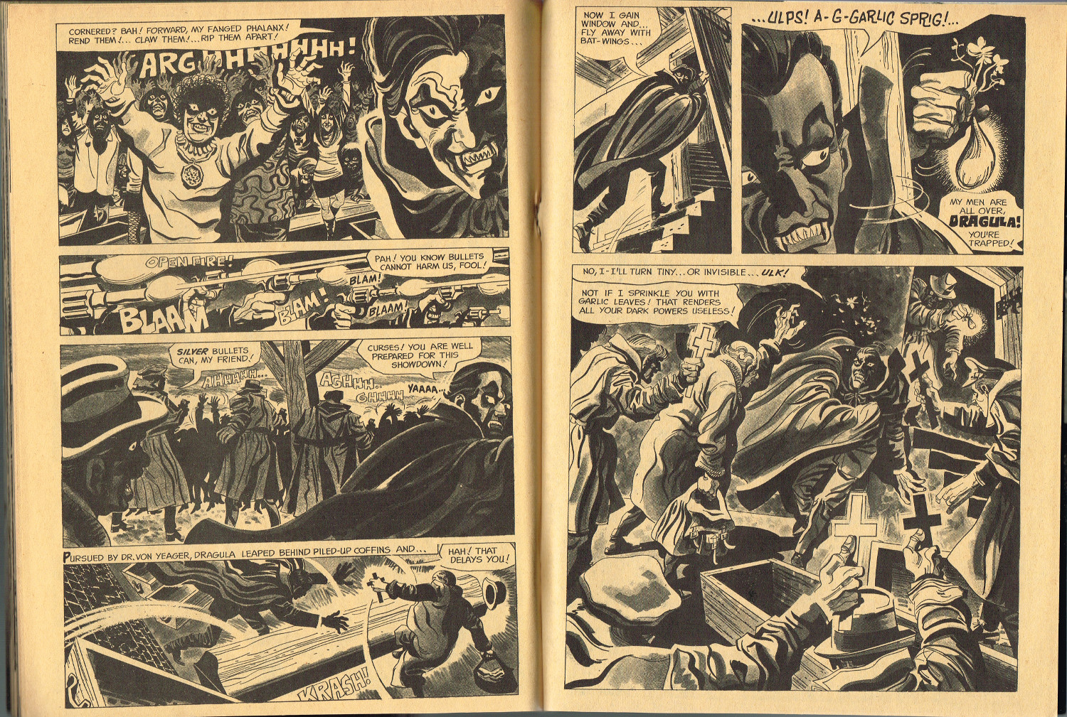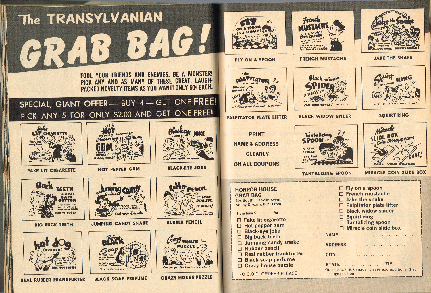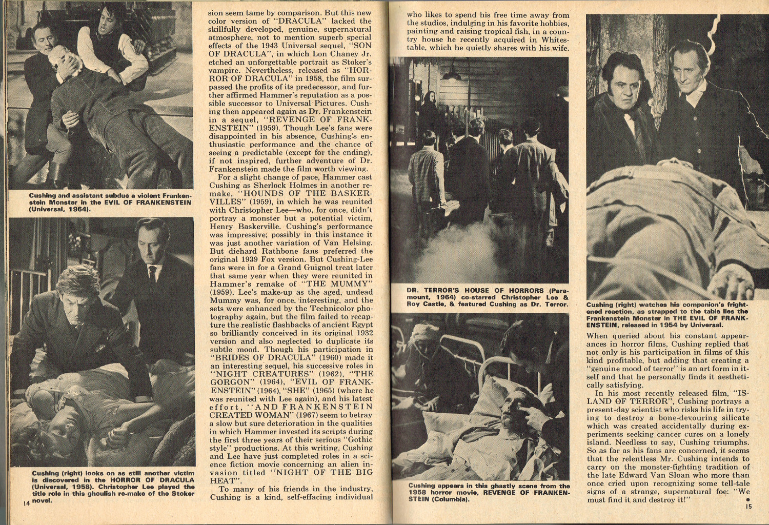 Richard Bojarski comes to the rescue again in issue 7 of Cracked's For Monsters Only with Peter Cushing: Monster Fighter and Karloff and Lugosi: The Titans of Terror. Otherwise, it's the usual filler comprised of ad pages, humor pages (which are actually quite funny this time around), and a 16-page comic, The Secret Files of Marc Vangoro, Master of Horror (he appears in another adventure in CFMO No. 8.)