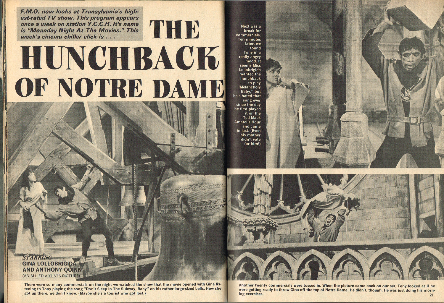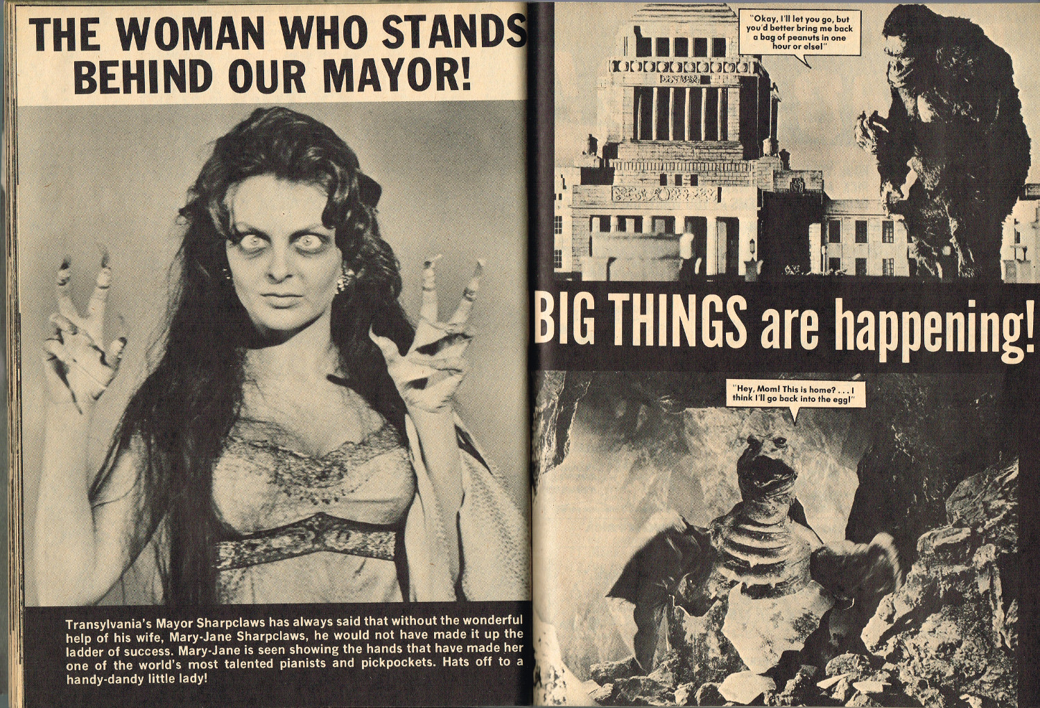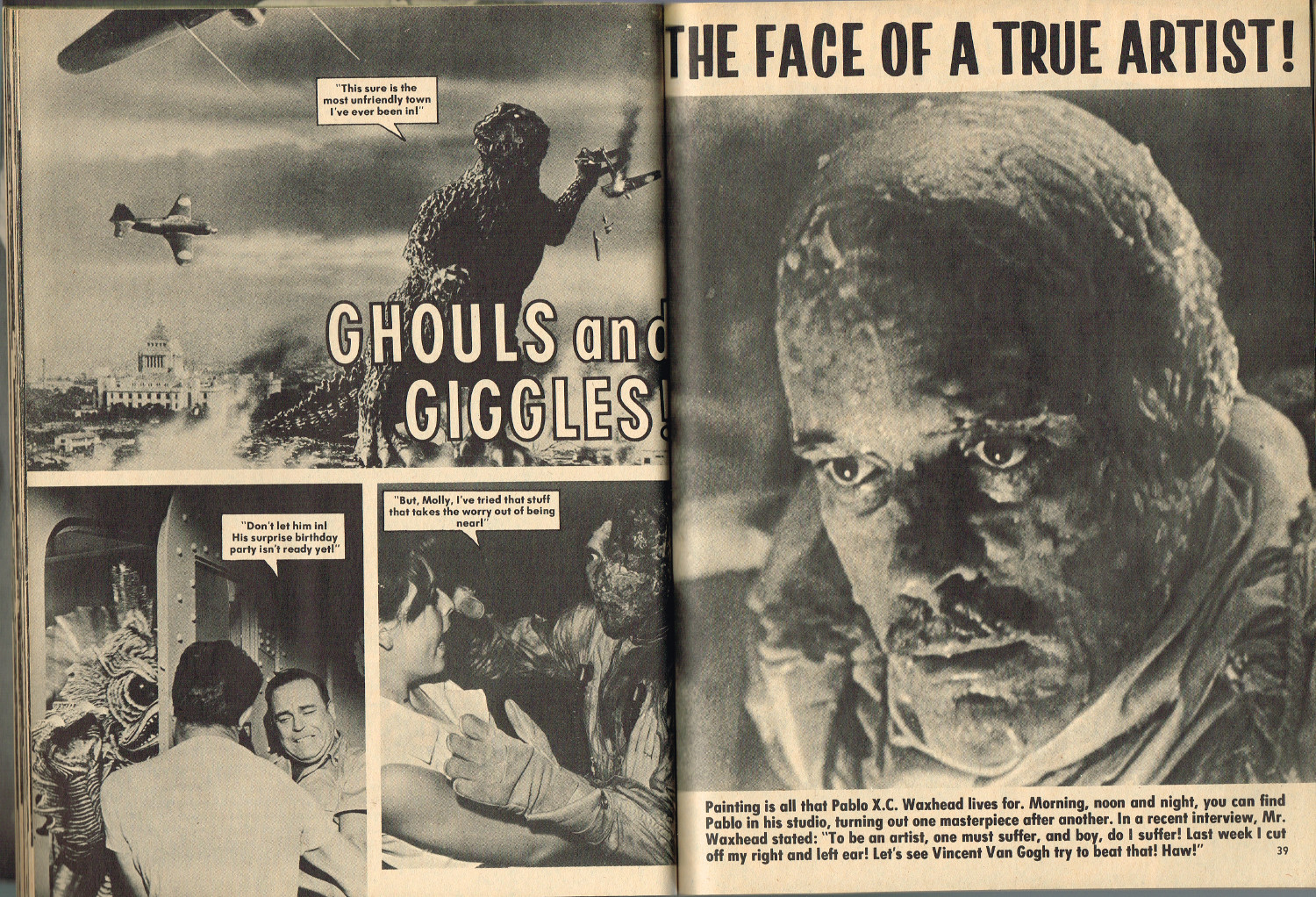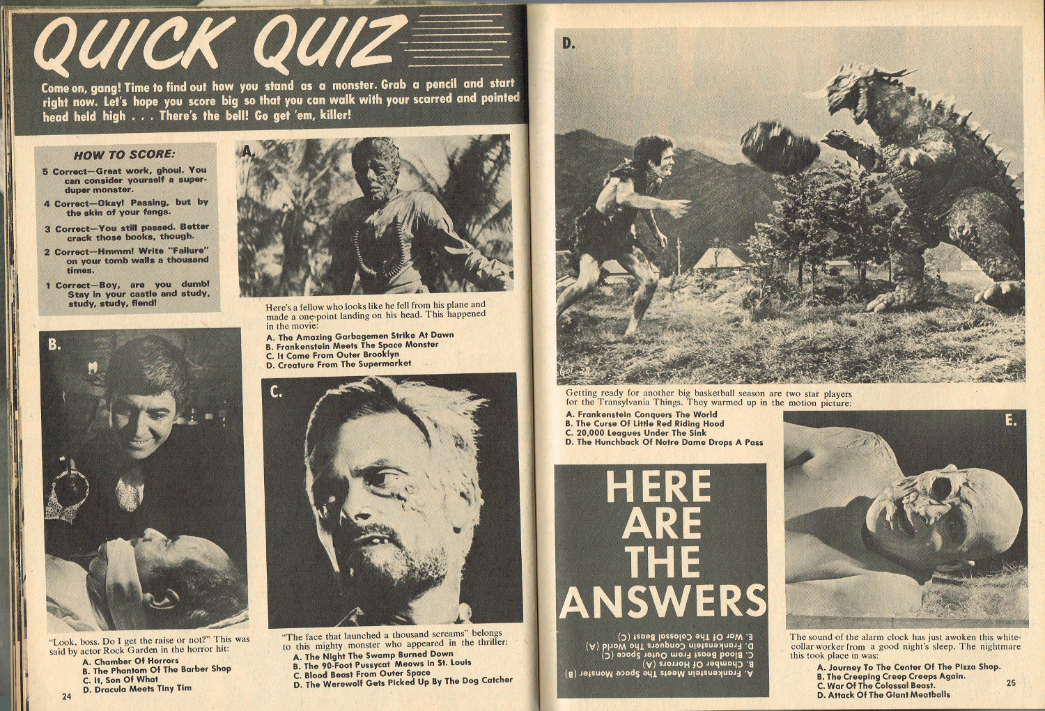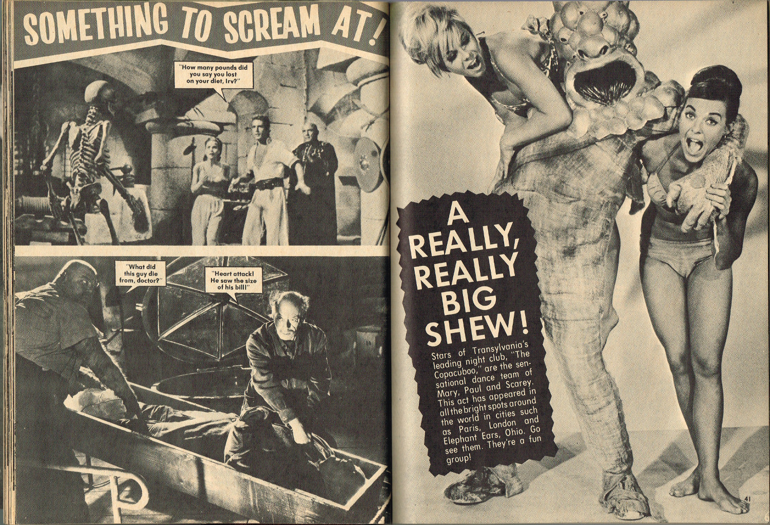 Richard Bojarski comes to the rescue again in issue 7 of Cracked's For Monsters Only with Peter Cushing: Monster Fighter and Karloff and Lugosi: The Titans of Terror. Otherwise, it's the usual filler comprised of ad pages, humor pages (which are actually quite funny this time around), and a 16-page comic, The Secret Files of Marc Vangoro, Master of Horror (he appears in another adventure in CFMO No. 8.)
