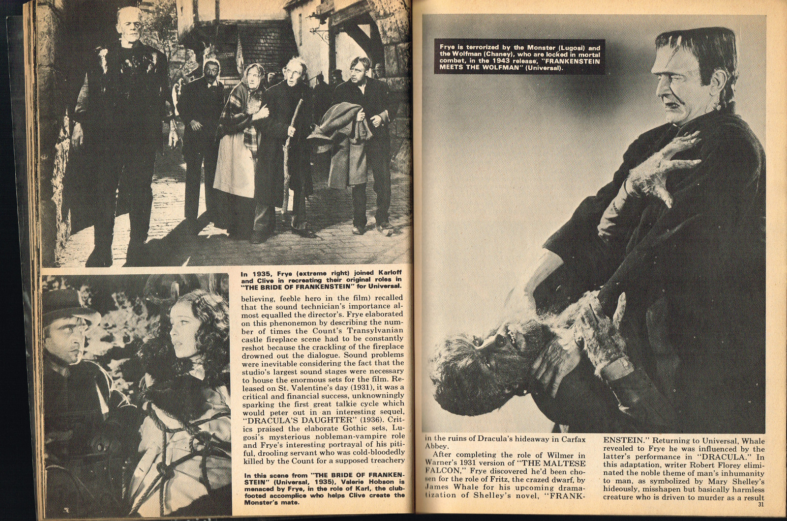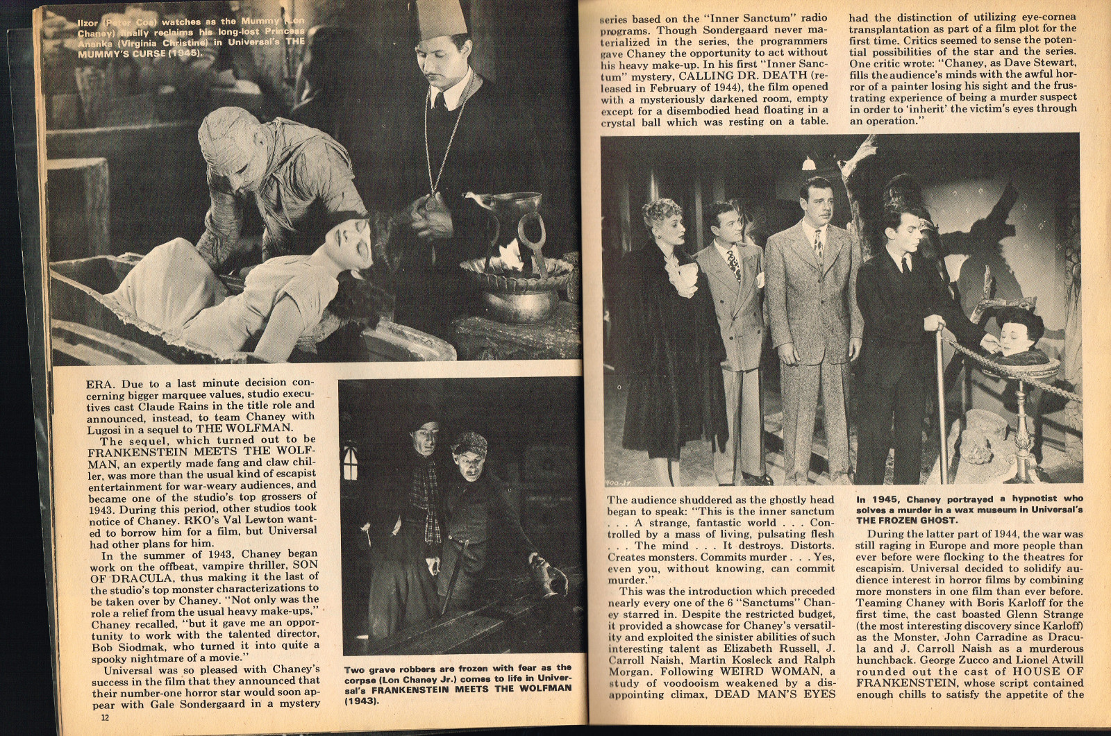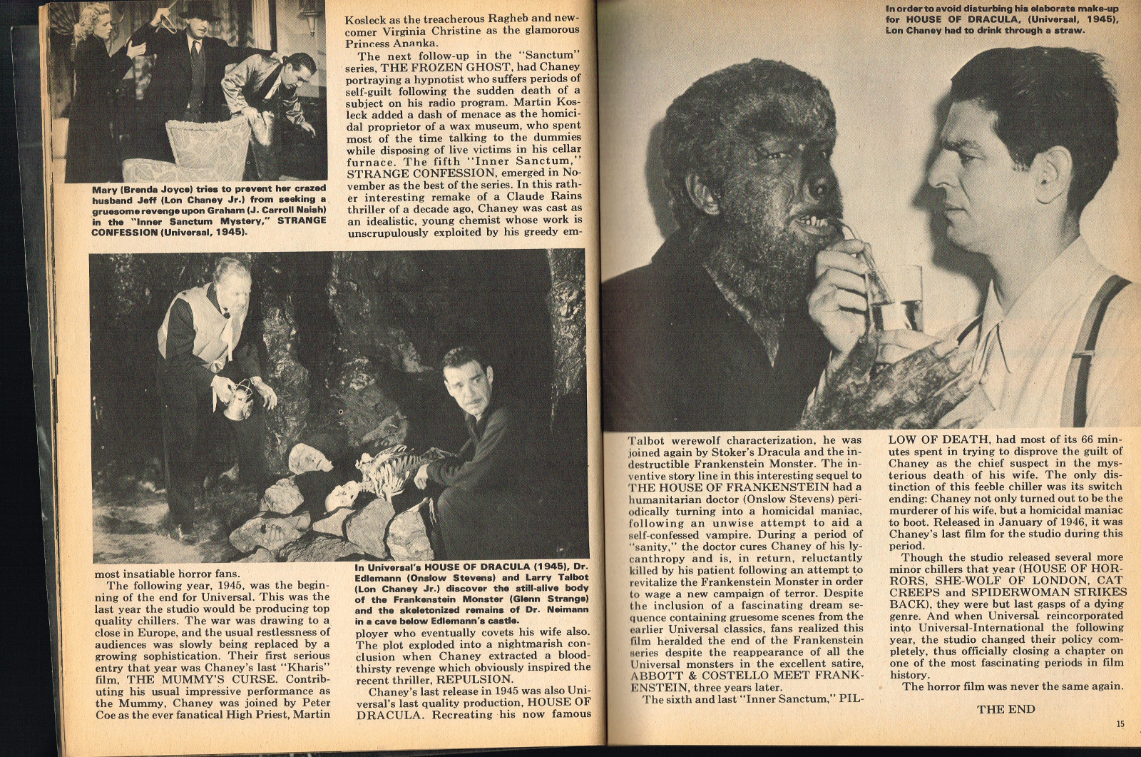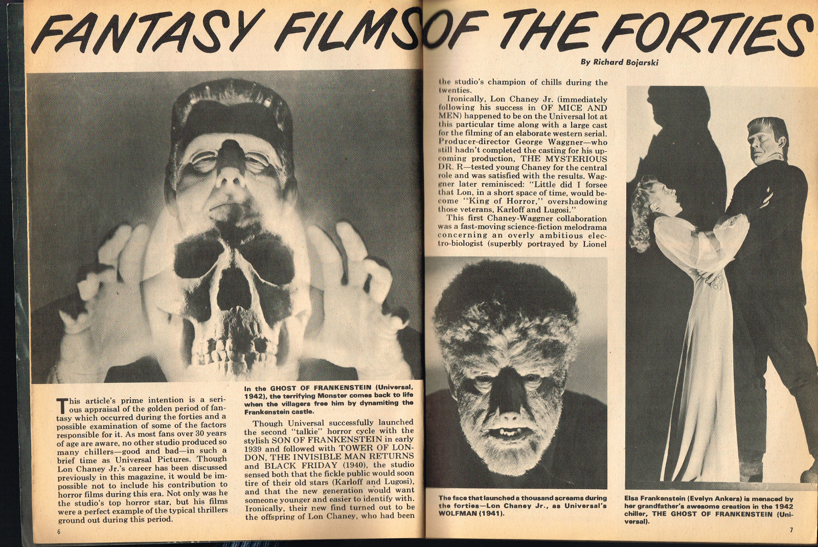 Sporting another stylish cover by John Severin, Cracked’s For Monsters Only issue 8 is chock full of great articles and a long, wonderfully ink-washed horror comic appearing after the requisite adverts. The usual photos with gag-captions abound. Richard Bojarski shines in this issue, writing two articles, Fantasy Films of the Forties (with a focus on Lon Chaney Jr) and Dwight Frye, the Mighty Midget of Menace (although I think Bojarski stretched a tad for that catchy title).
