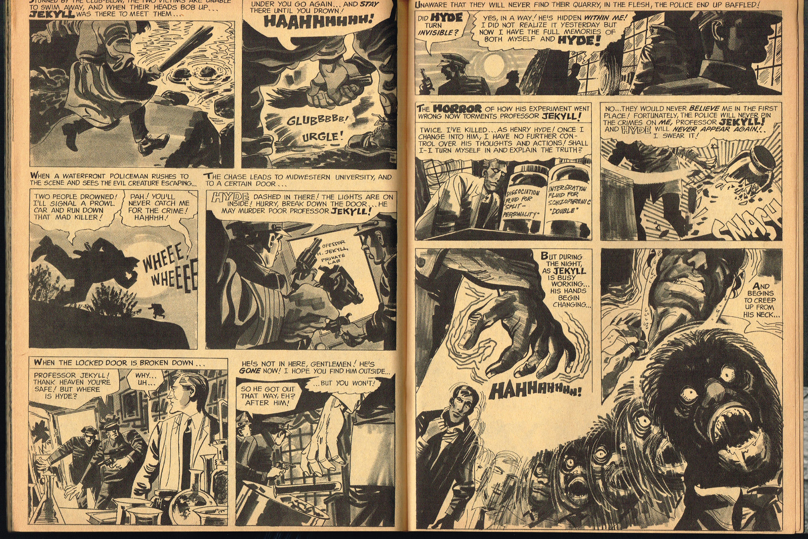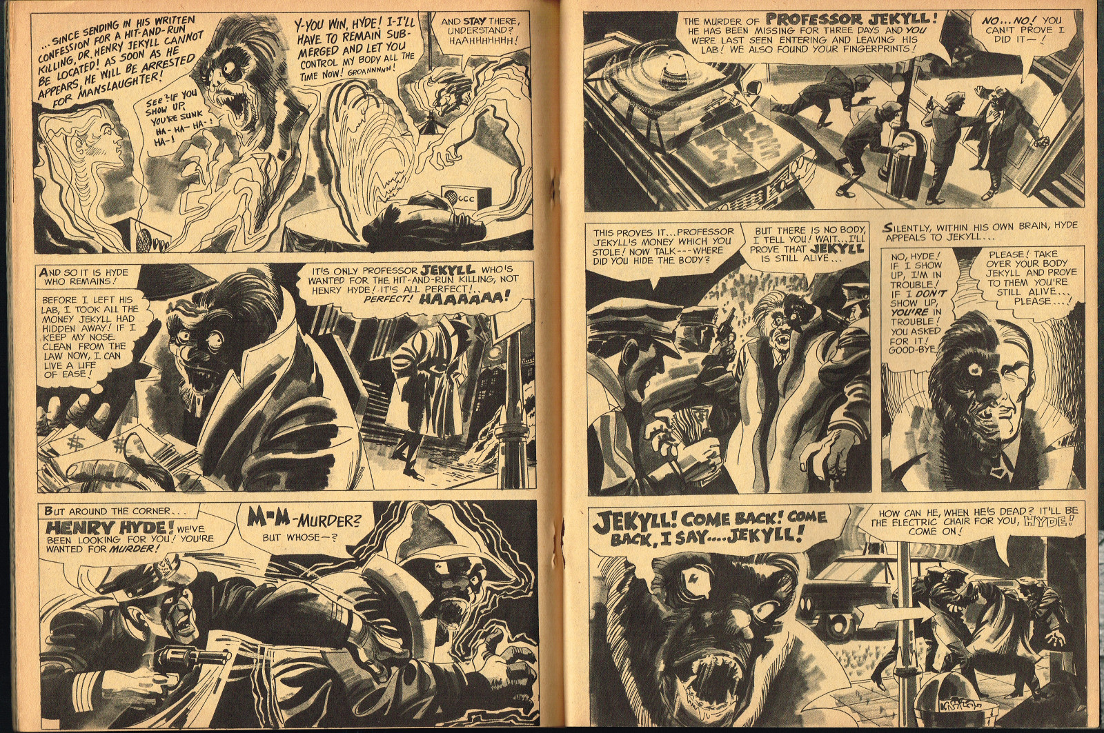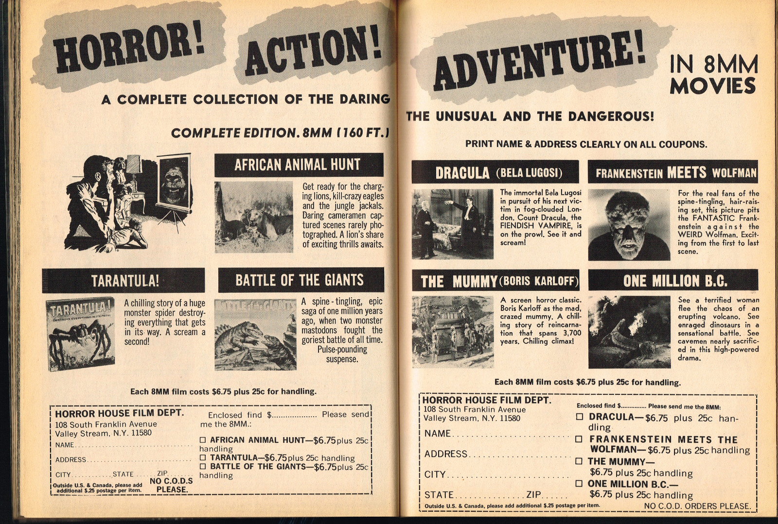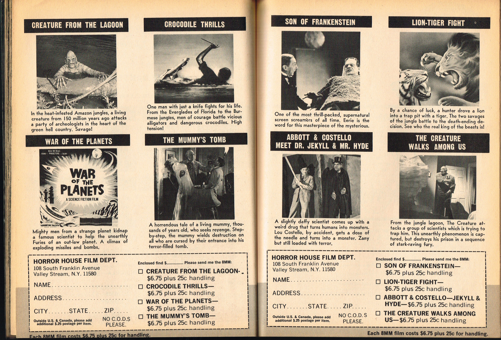Sporting another stylish cover by John Severin, Cracked’s For Monsters Only issue 8 is chock full of great articles and a long, wonderfully ink-washed horror comic appearing after the requisite adverts. The usual photos with gag-captions abound. Richard Bojarski shines in this issue, writing two articles, Fantasy Films of the Forties (with a focus on Lon Chaney Jr) and Dwight Frye, the Mighty Midget of Menace (although I think Bojarski stretched a tad for that catchy title).