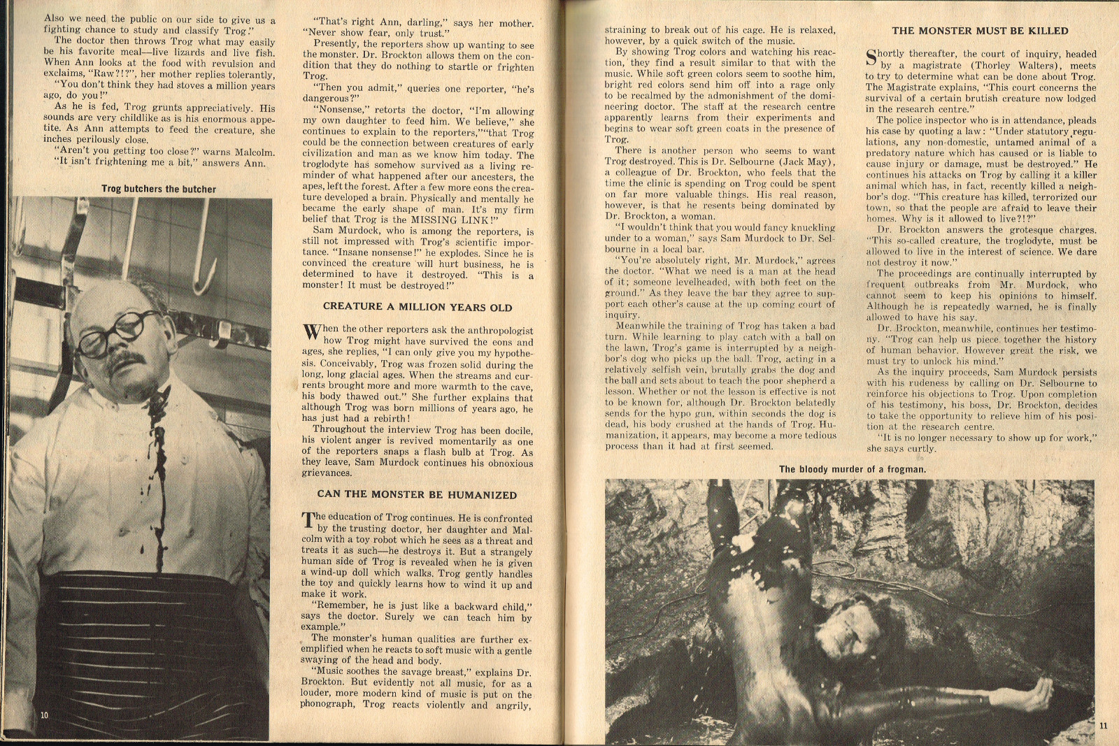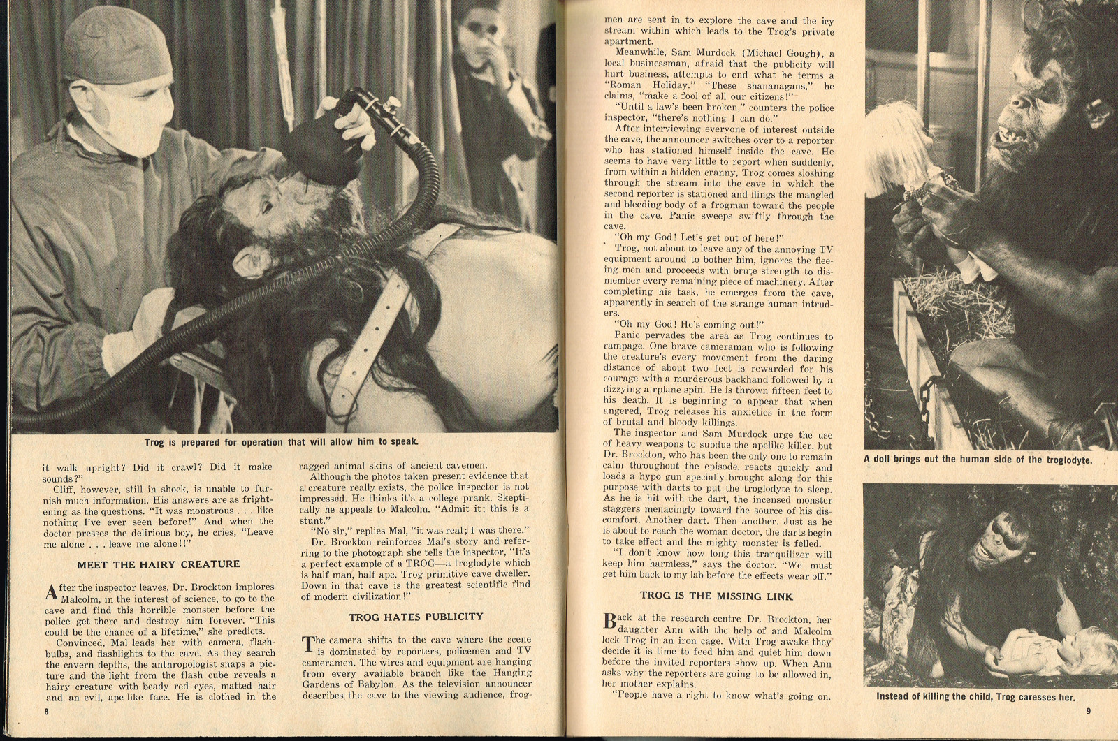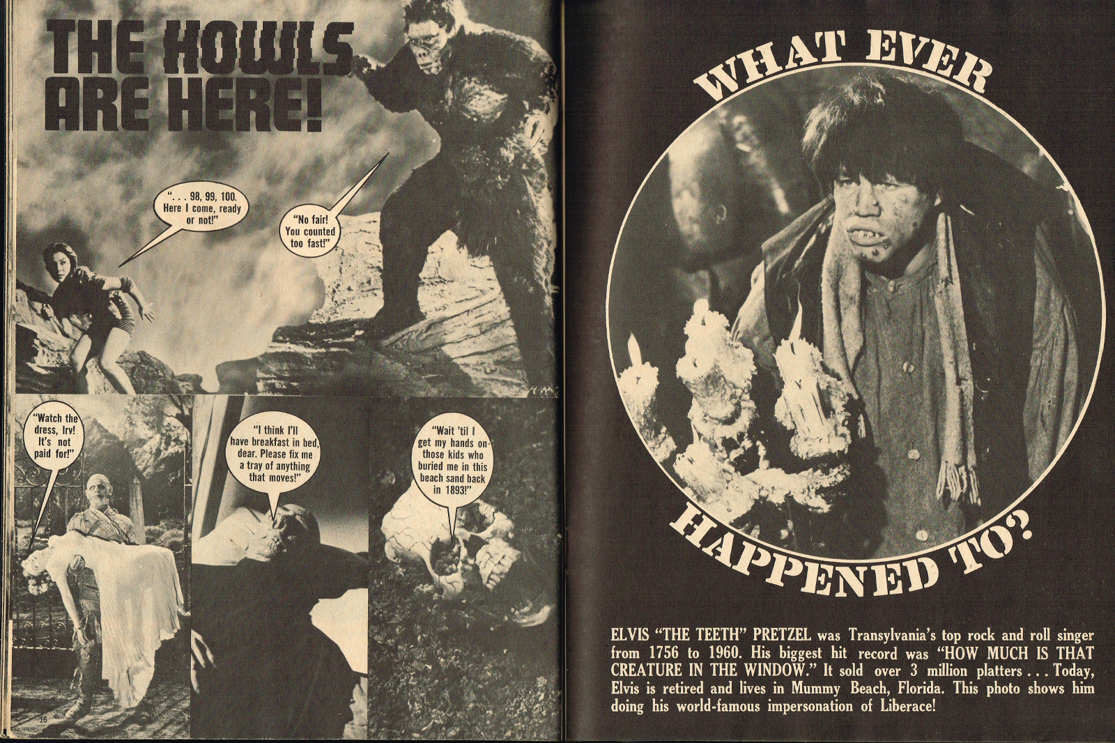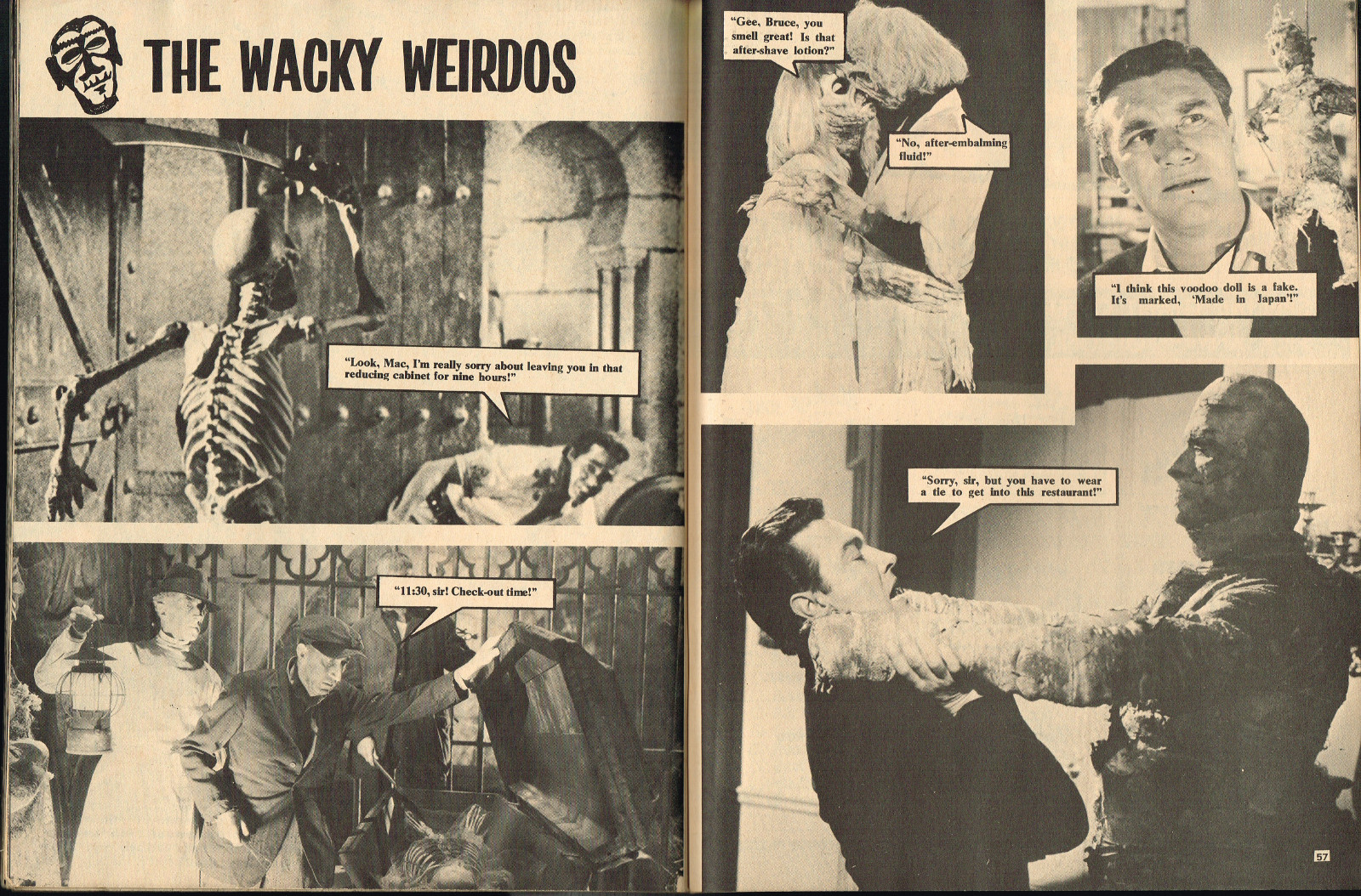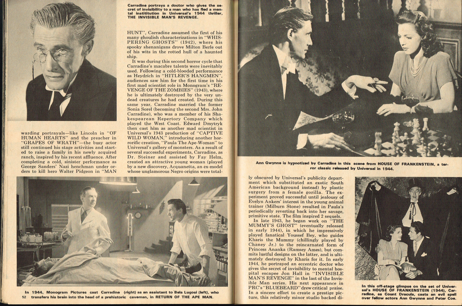 With the dropping of "Cracked's" in the title, and more movie articles than cartoons, this issue may still have the gag-captioned photos, but it does have more bite for serious horror fans. House of Dark Shadows, Taste the Blood of Dracula, a monster comic, and Richard Bojarski's John Carradine, The Master Villain, make this a fun read. Trog gets extensive coverage, too.