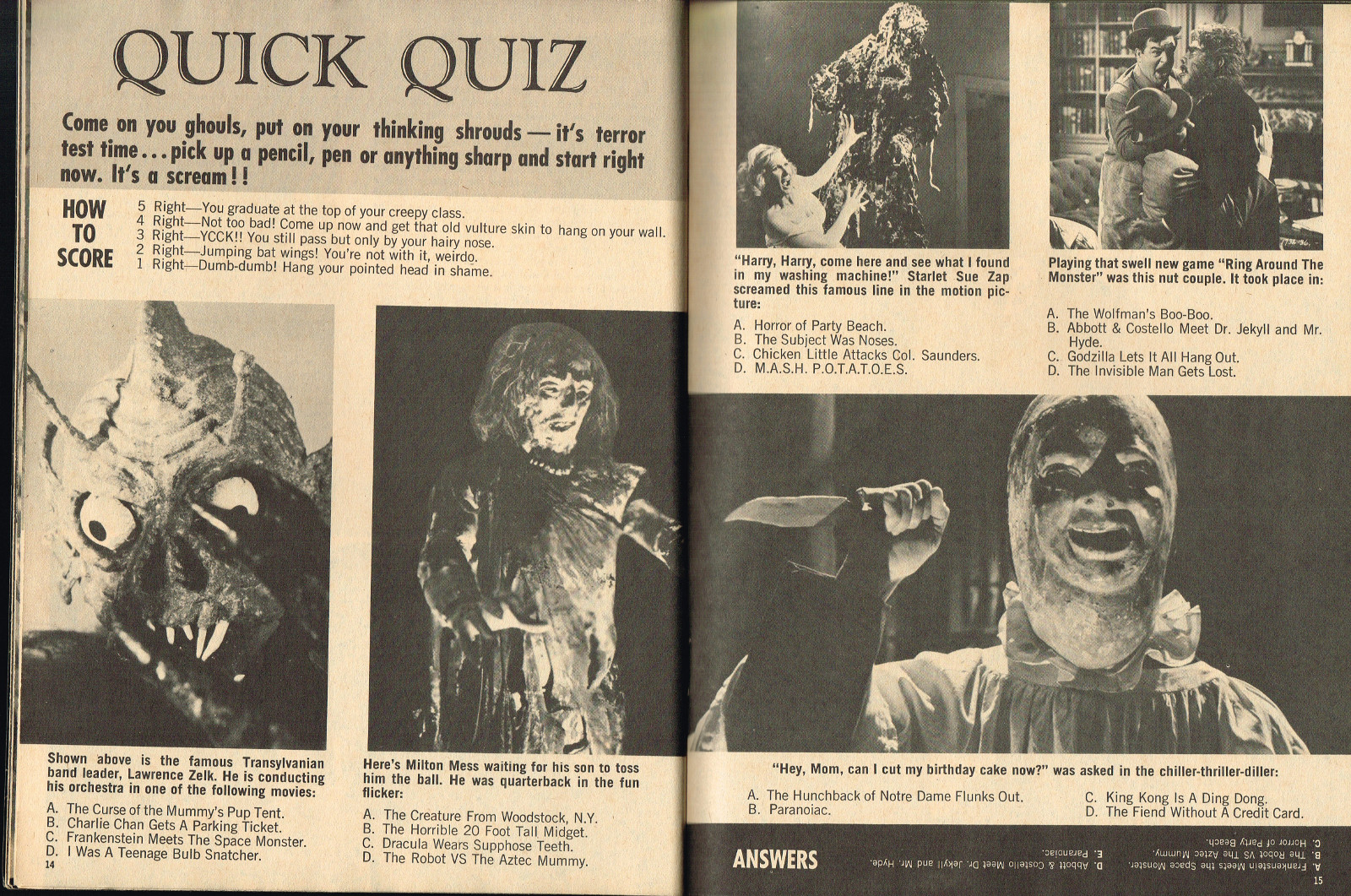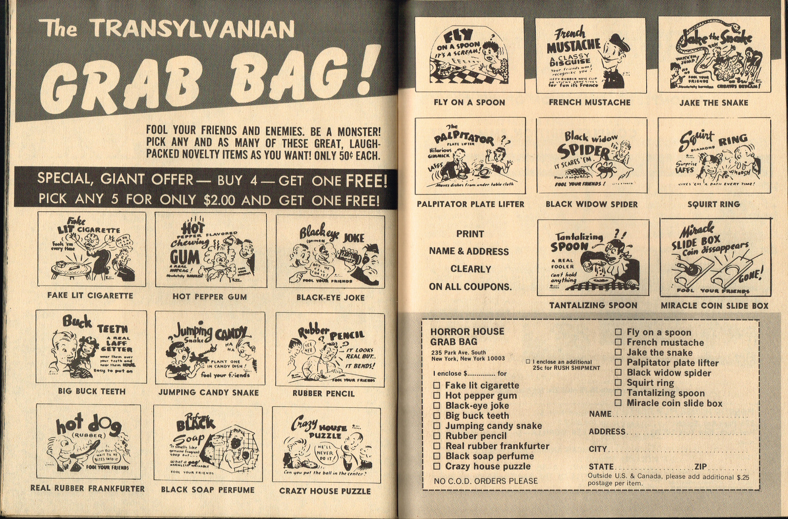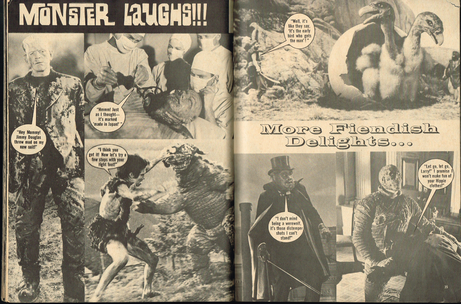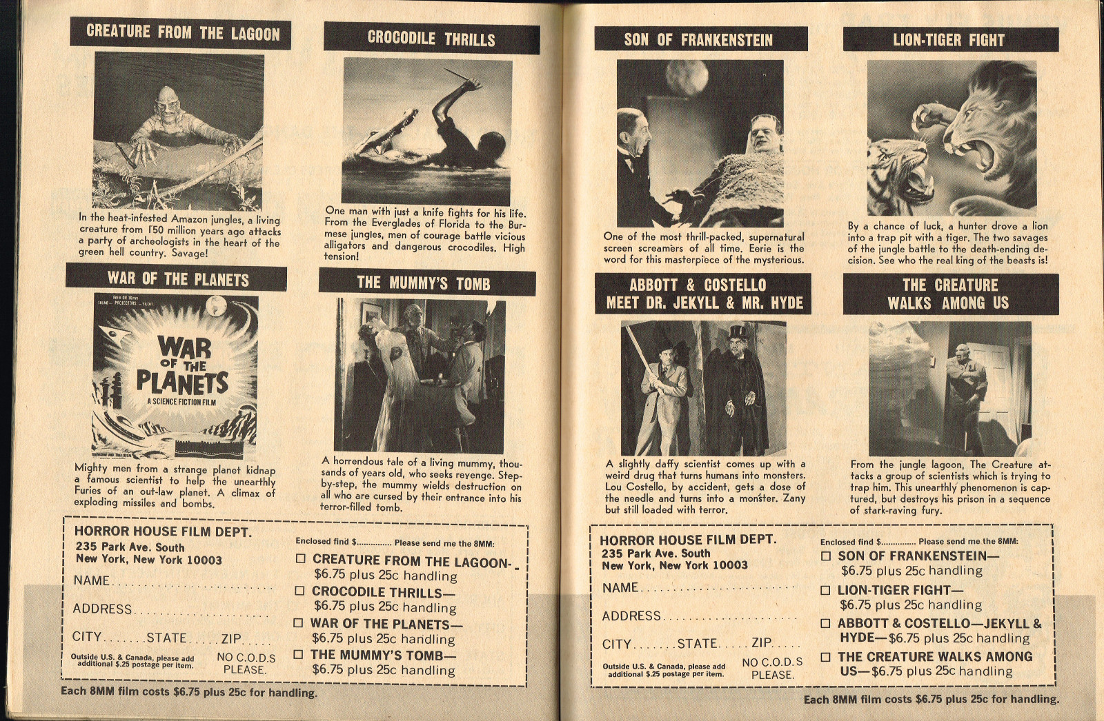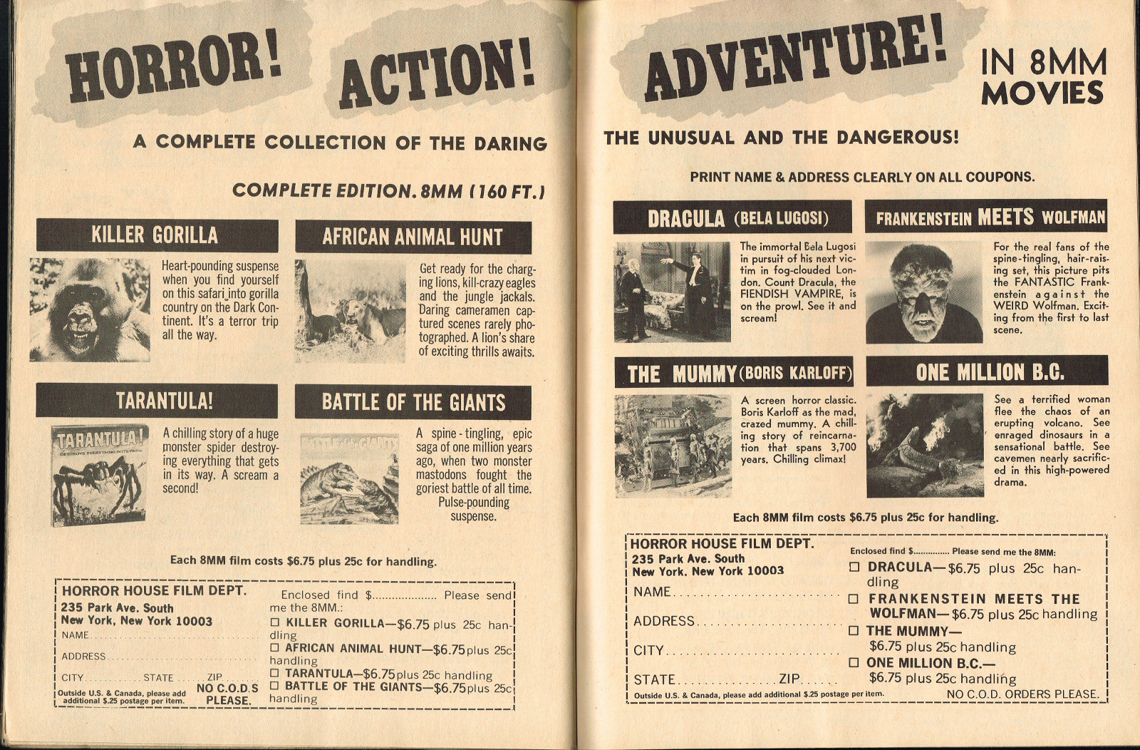 With the dropping of "Cracked's" in the title, and more movie articles than cartoons, this issue may still have the gag-captioned photos, but it does have more bite for serious horror fans. House of Dark Shadows, Taste the Blood of Dracula, a monster comic, and Richard Bojarski's John Carradine, The Master Villain, make this a fun read. Trog gets extensive coverage, too.
