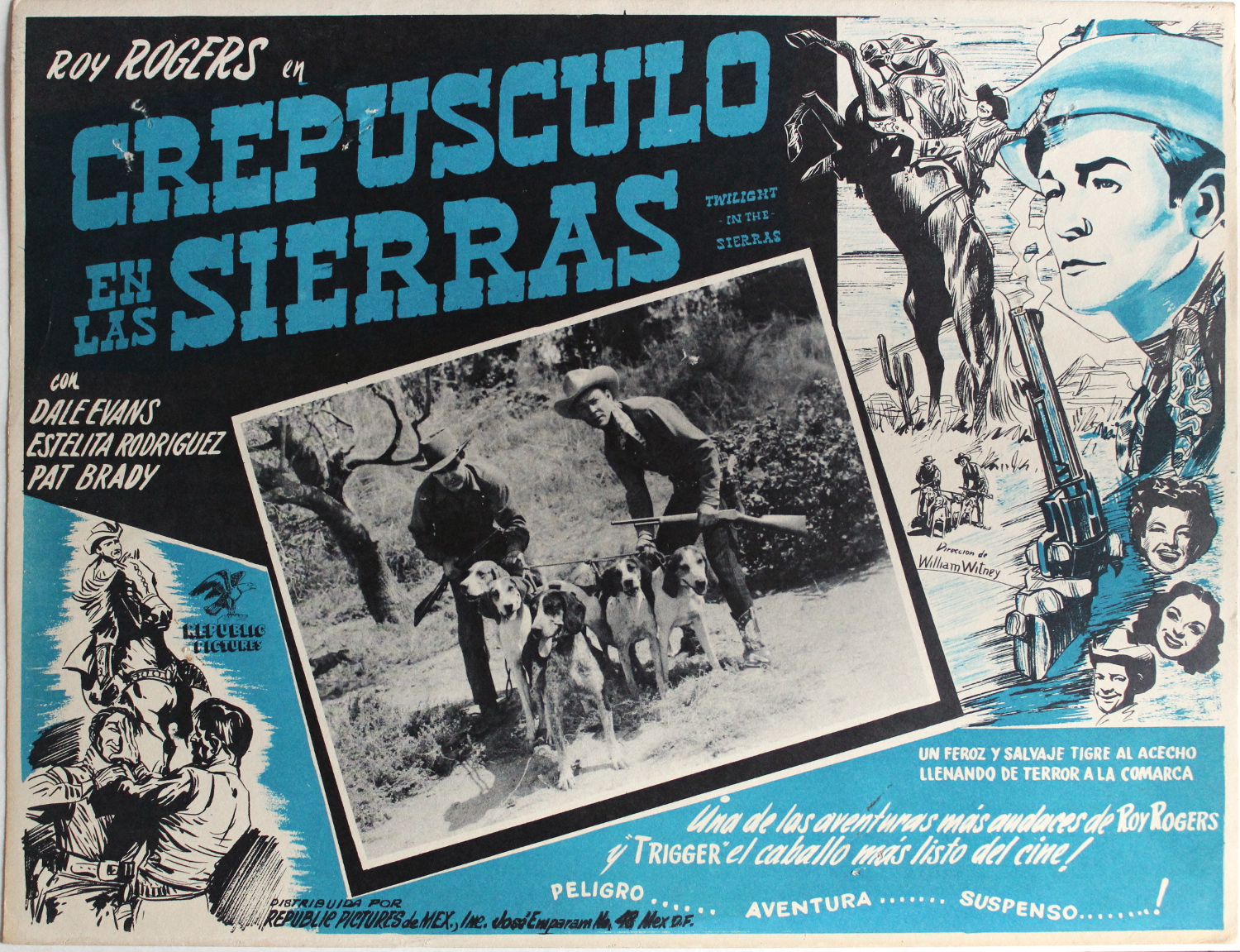 Mexican Lobby Card: Crepusculo En Las Sierras (1950) Leave a Comment / Azteca/Mexican Lobby Cards / By JM Cozzoli Here's the Mexican lobby card for Roy Rogers' Twilight in the Sierras (1950).Like this:Like Loading... Share this post Facebook Twitter Pinterest Linkedin