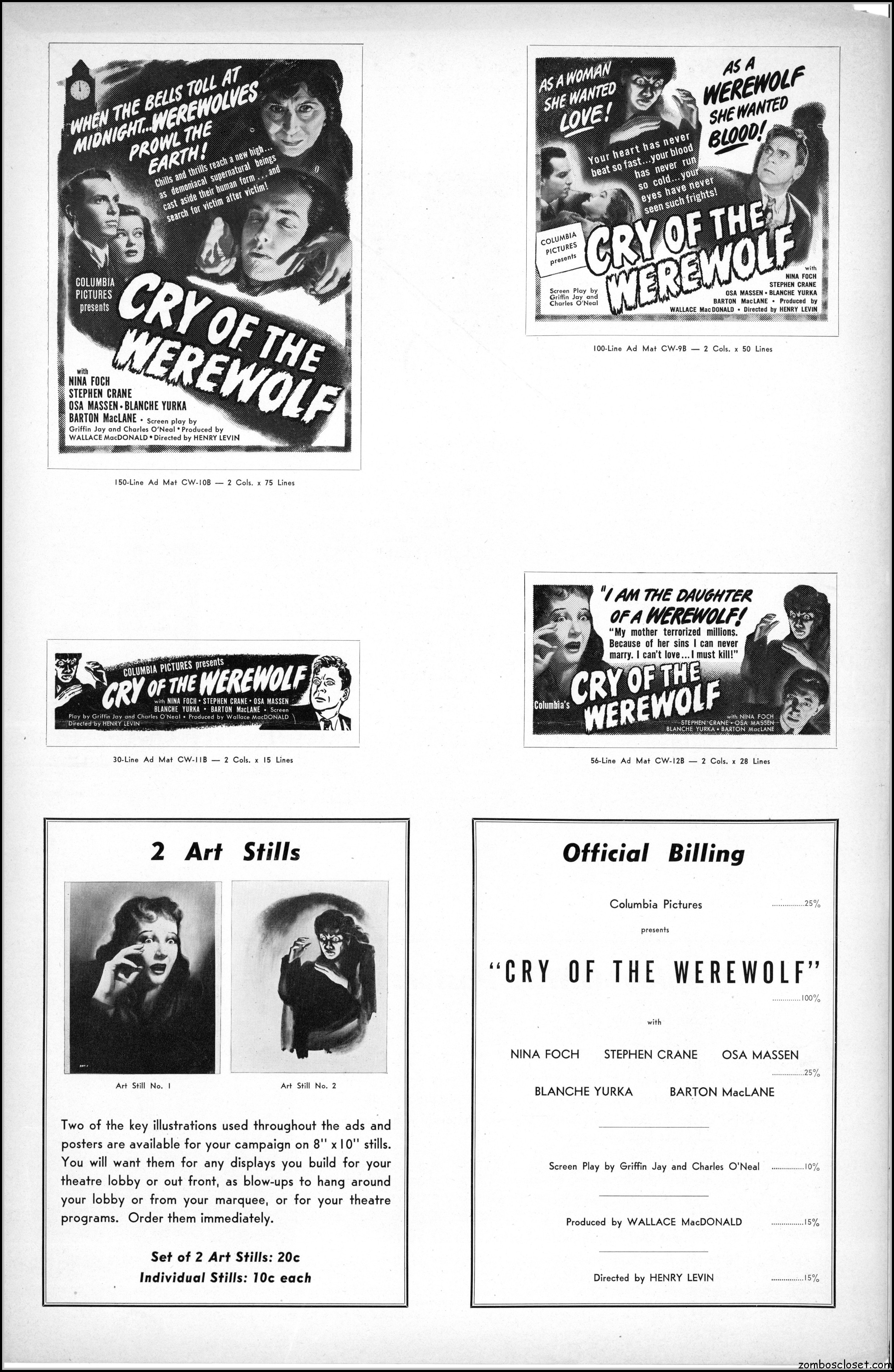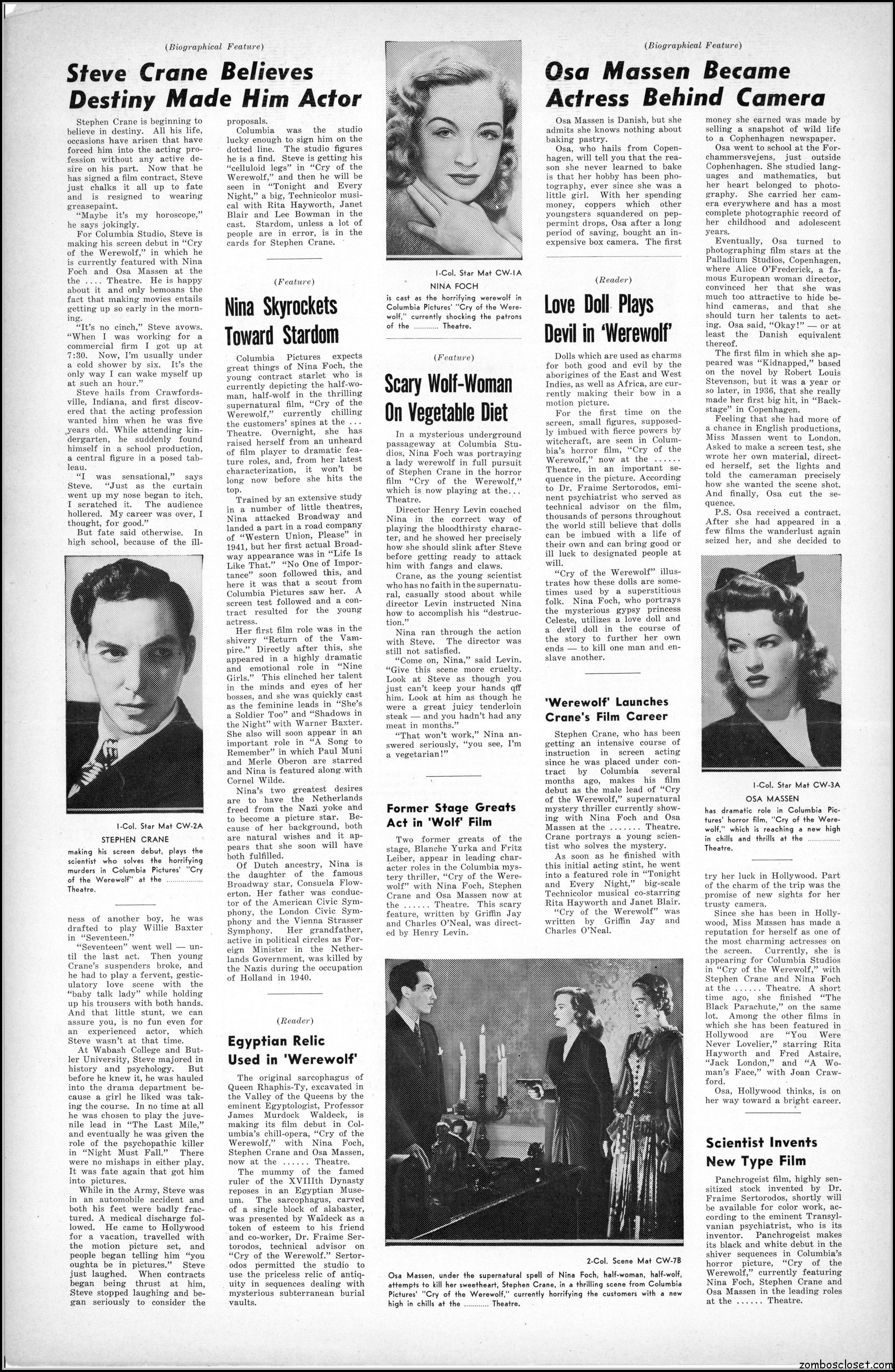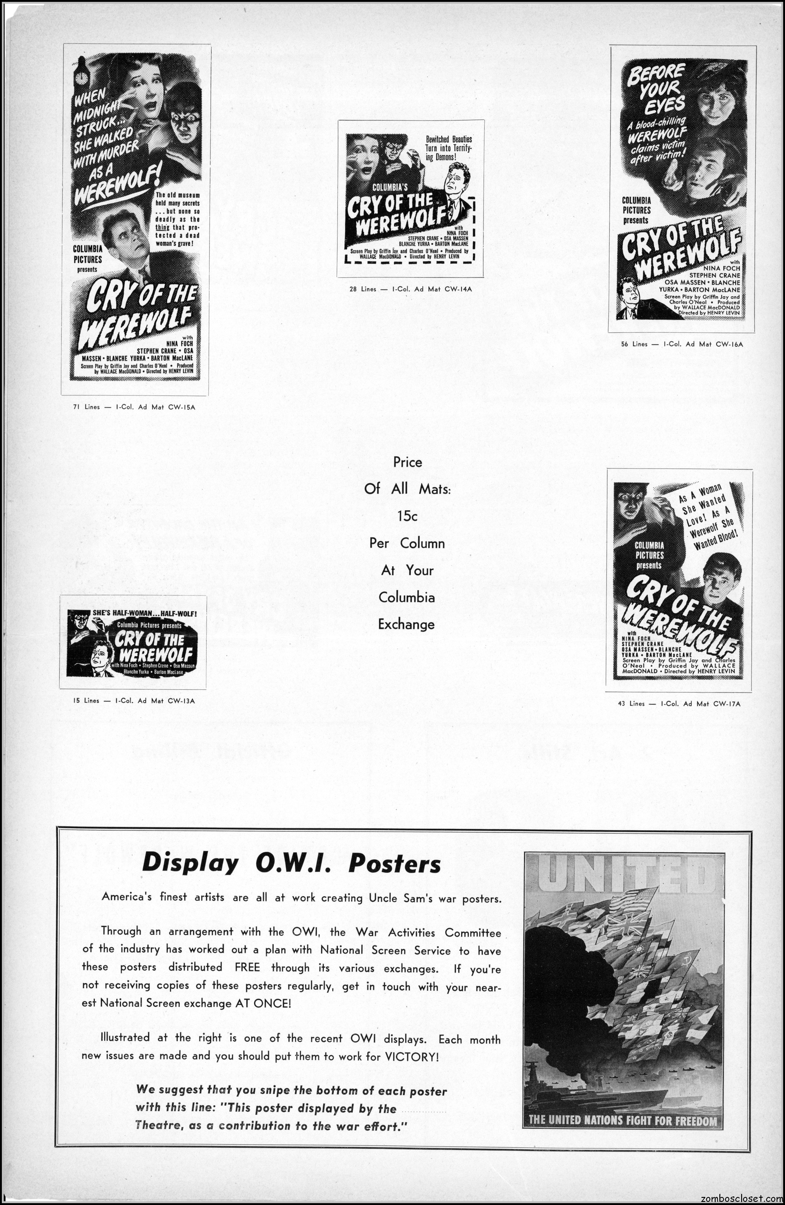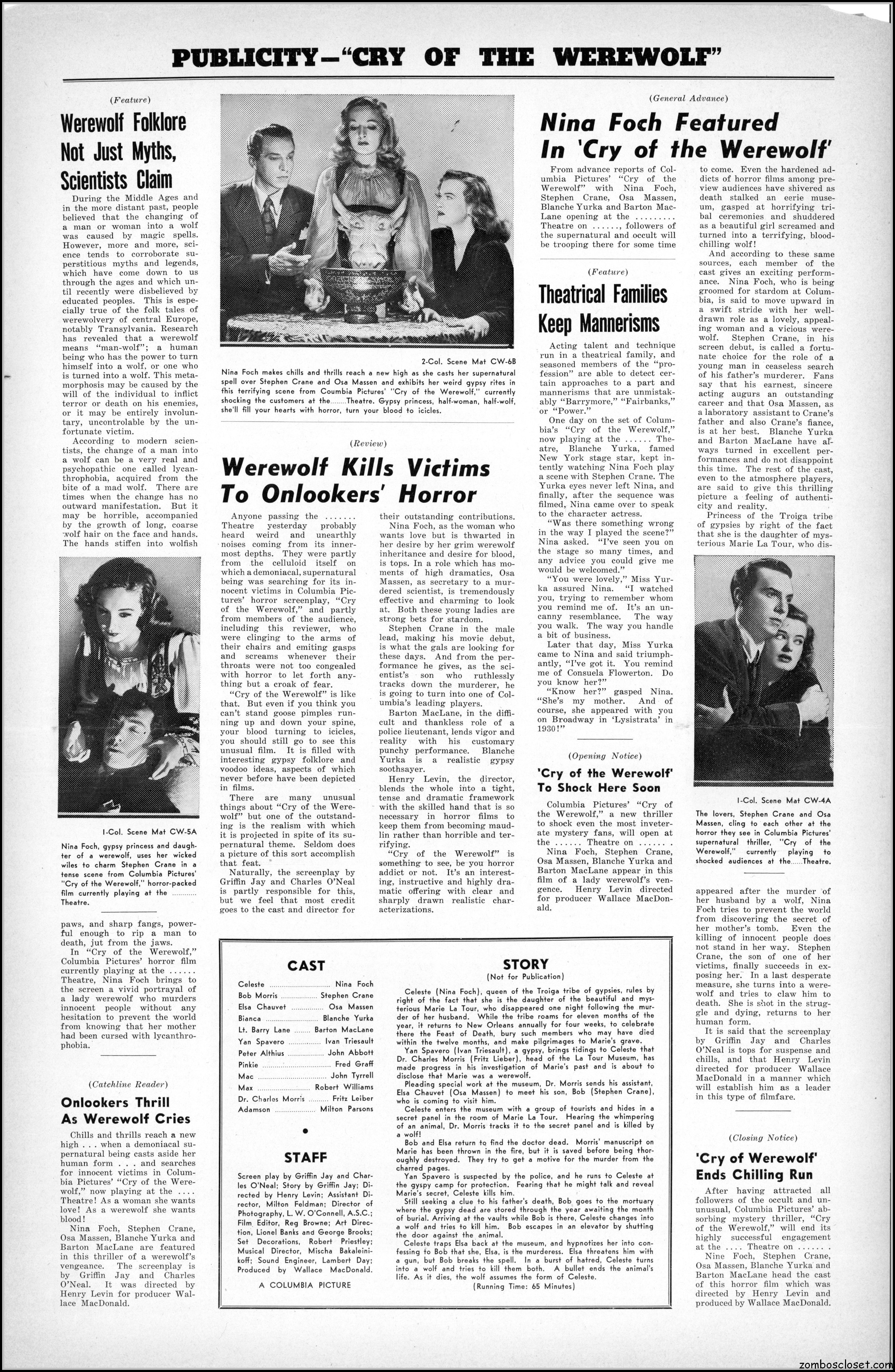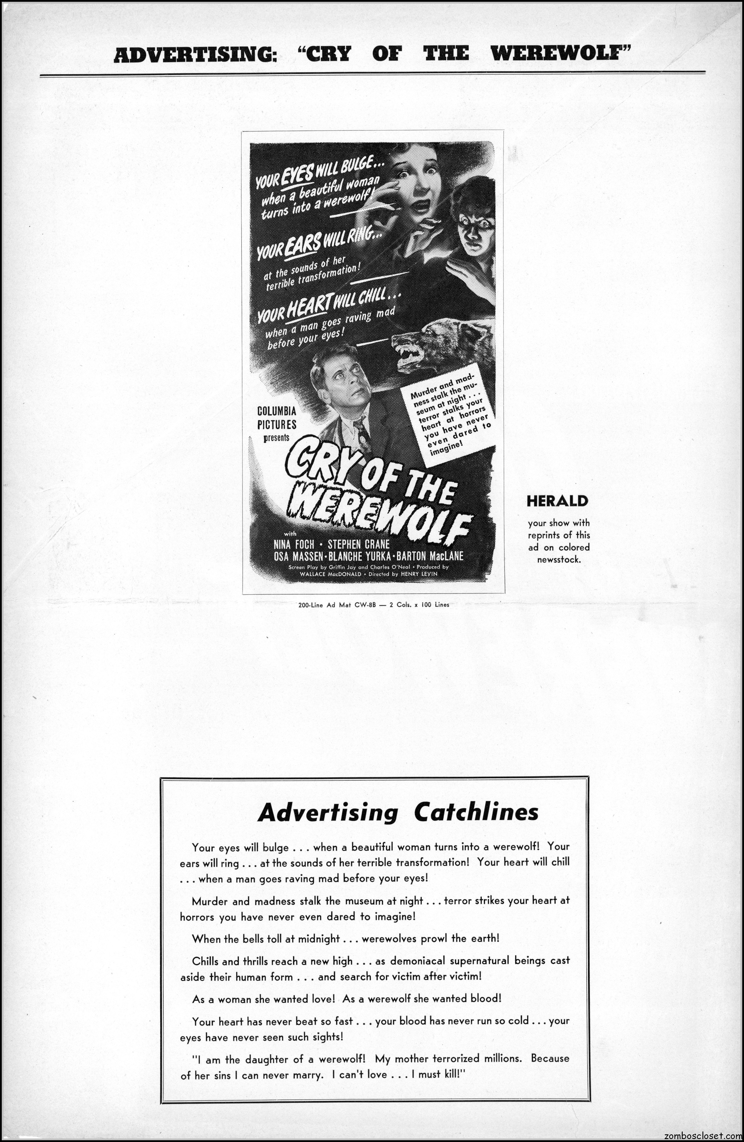 Cry of the Werewolf (1944) Pressbook
