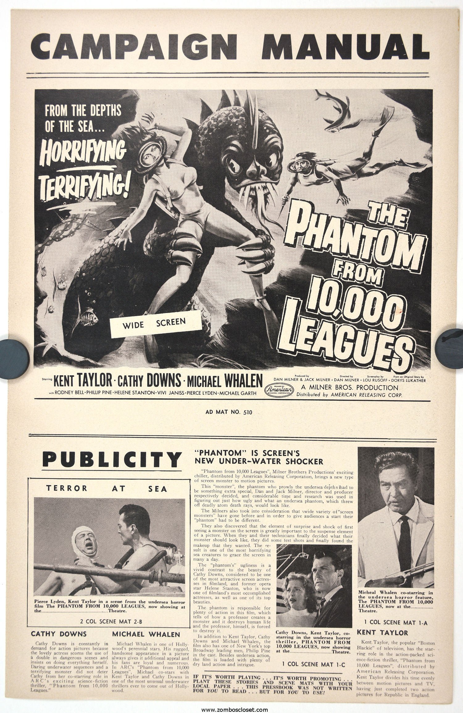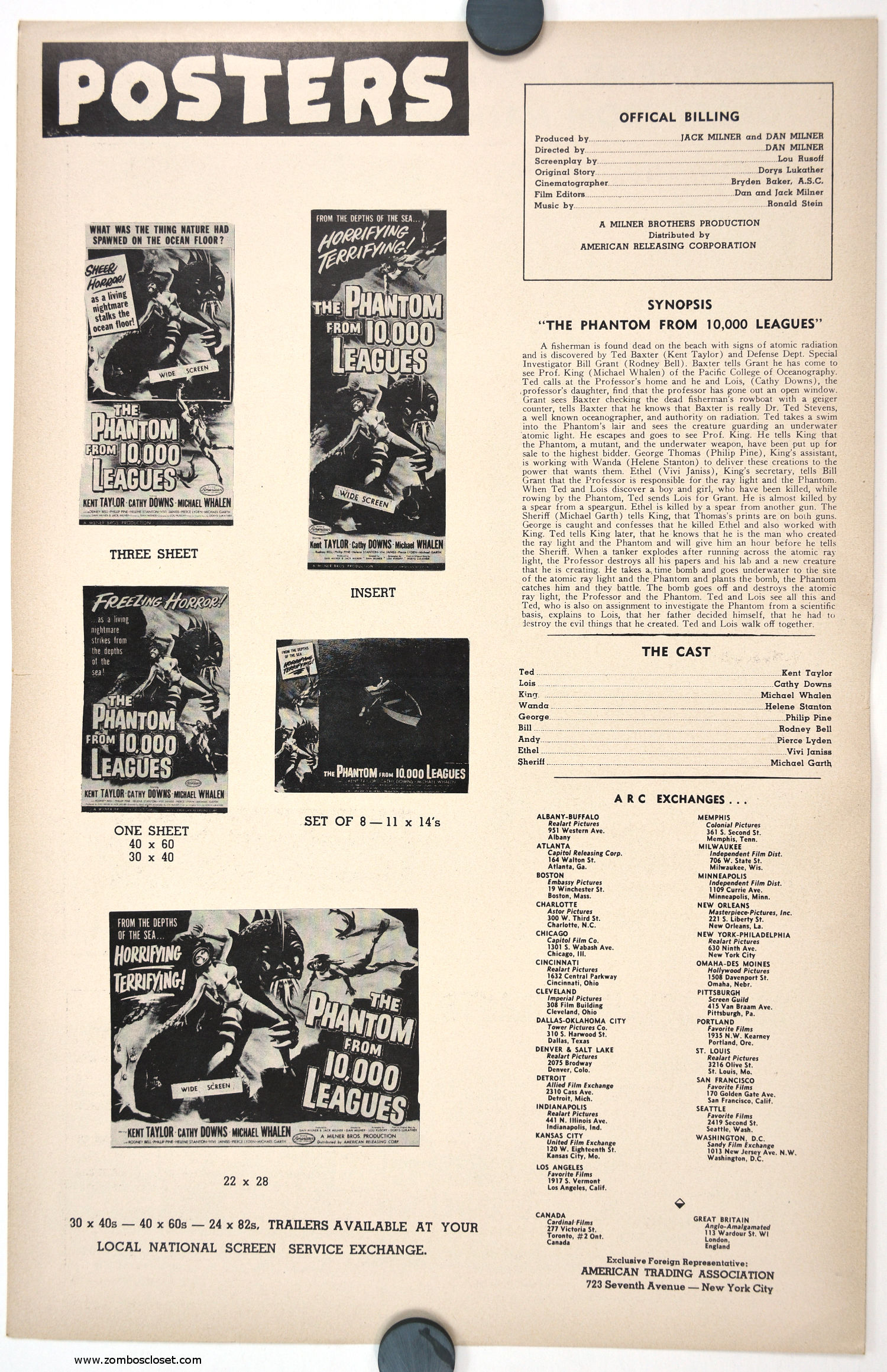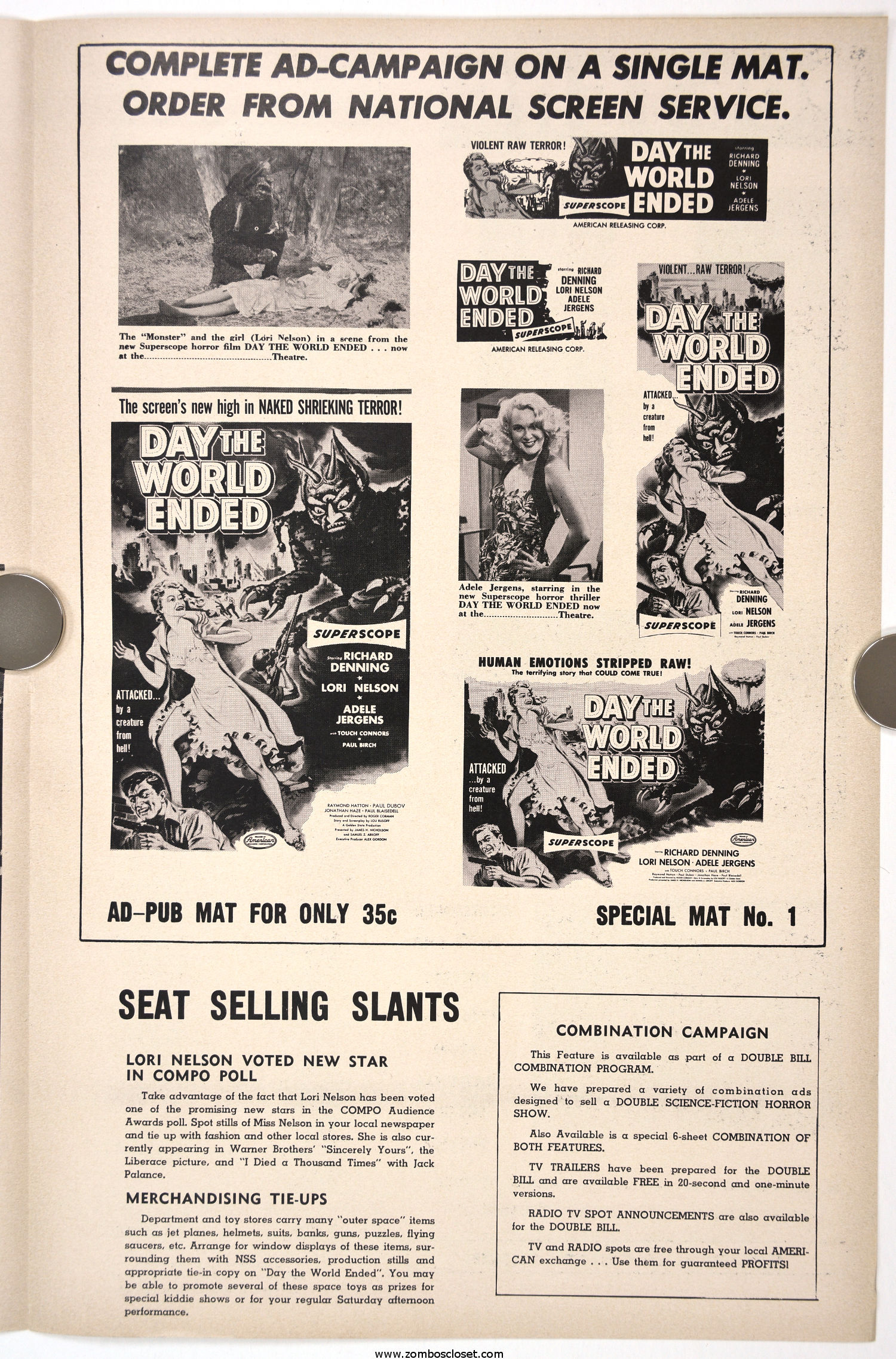 Roger Corman directed fourth movie, Day the World Ended, starred Richard Denning, Paul Birch, and Marty the Mutated Monster courtesy of Paul Blaisdell. Double billed with The Phantom From 10,000 Leagues, the pair made a tidy profit. It was the first double feature offering by American Releasing Corporation, later known by horror fans as American International Pictures. Day is the better of the two movies.