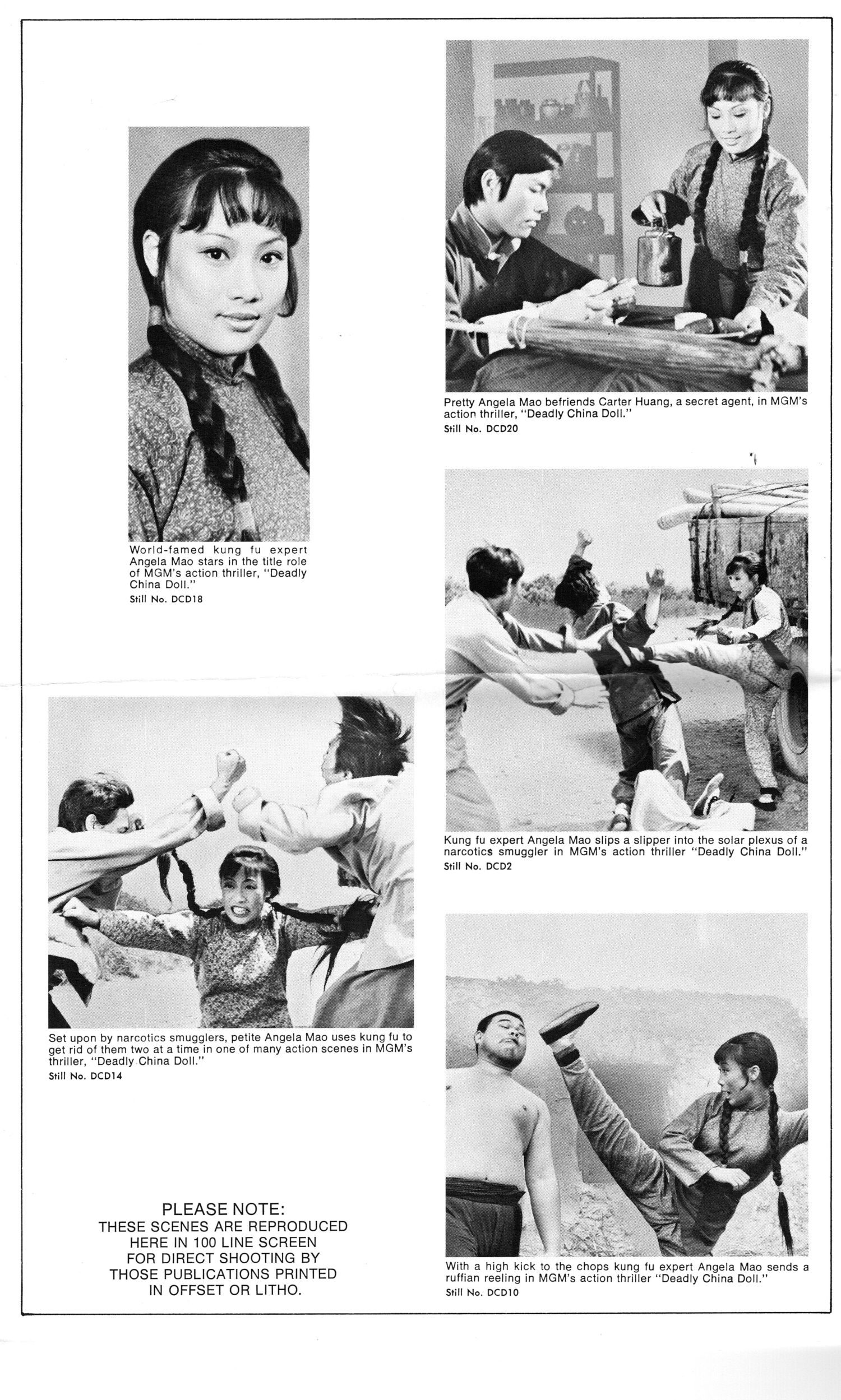 The Deadly China Doll pressbook is light on article information or promotional material, but it does use pictures and poster art to sell this action movie. You may remember Angela Mao from her brief appearance in Enter the Dragon. If you haven't seen her other movies, shame on you.