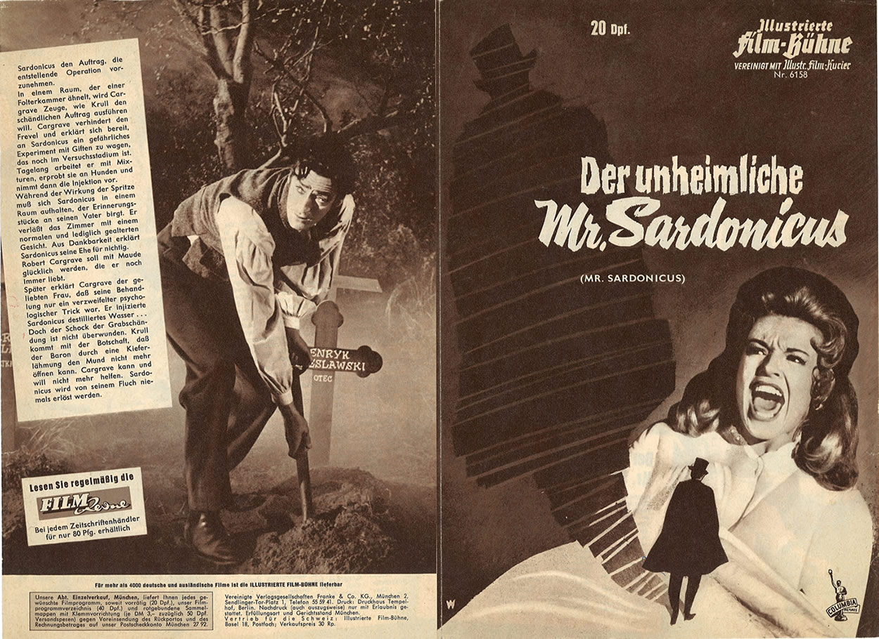 Der unheimliche Mr. Sardonicus Movie Pressbook 2 Comments / Pressbooks (Horror, Sci Fi, Fantasy) / By JM Cozzoli And more from Professor Kinema’s archives: this time it’s The Uncanny Mr. Sardonicus. I can’t read what else it says, but it looks rather cool, so here it is. Like this:Like Loading... Share this post Facebook Twitter Pinterest Linkedin