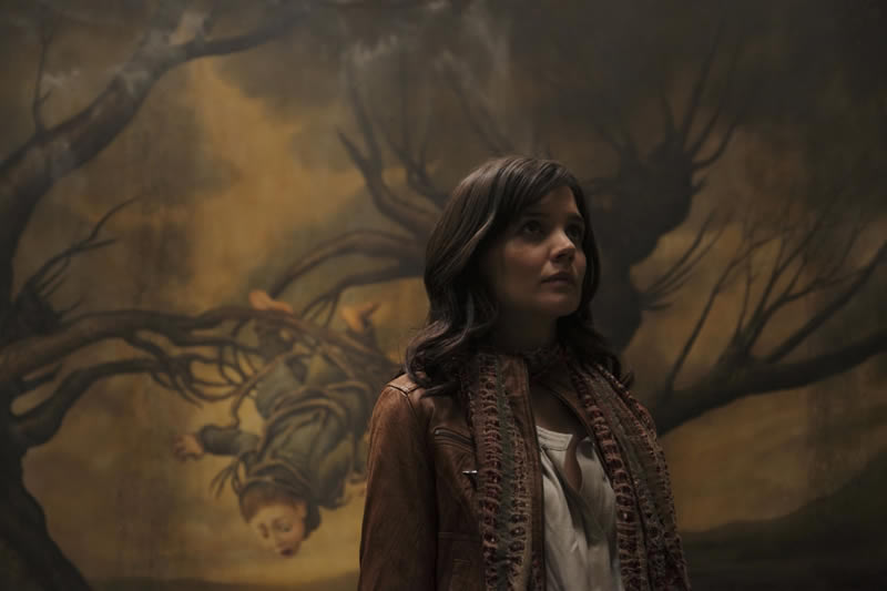I’ll lay some of the blame with director Troy Nixey. The opening shock-drop–what I call those brief, jarring scenes often used at the beginning of straight-to-DVD-movies–of Blackwood (Gary McDonald), the house’s first tenant desperately trying to get his missing son back, robs the suspense we needed as Sally (Bailee Madison) pays a forced visit to her architect dad (Guy Pierce) and his live-in, interior designer girlfriend (Katie Holmes). They’re renovating a brooding Gothic mansion surrounded by intimidating formal gardens and filled with dark hallways and subterranean pests. Shades of Arthur Machen’s forestry horrors and startling Pickman’s Model revelations are hinted, but del Toro gives them fan-boy nods instead of plumbing deeper while Nixey’s CGI animators and production designers direct the action out from under him. It all looks fantastic, but doesn’t play fantastic.