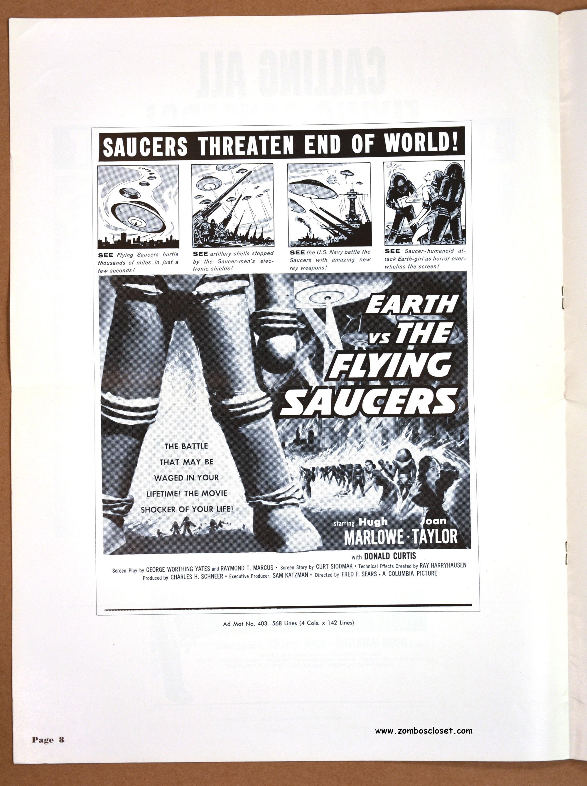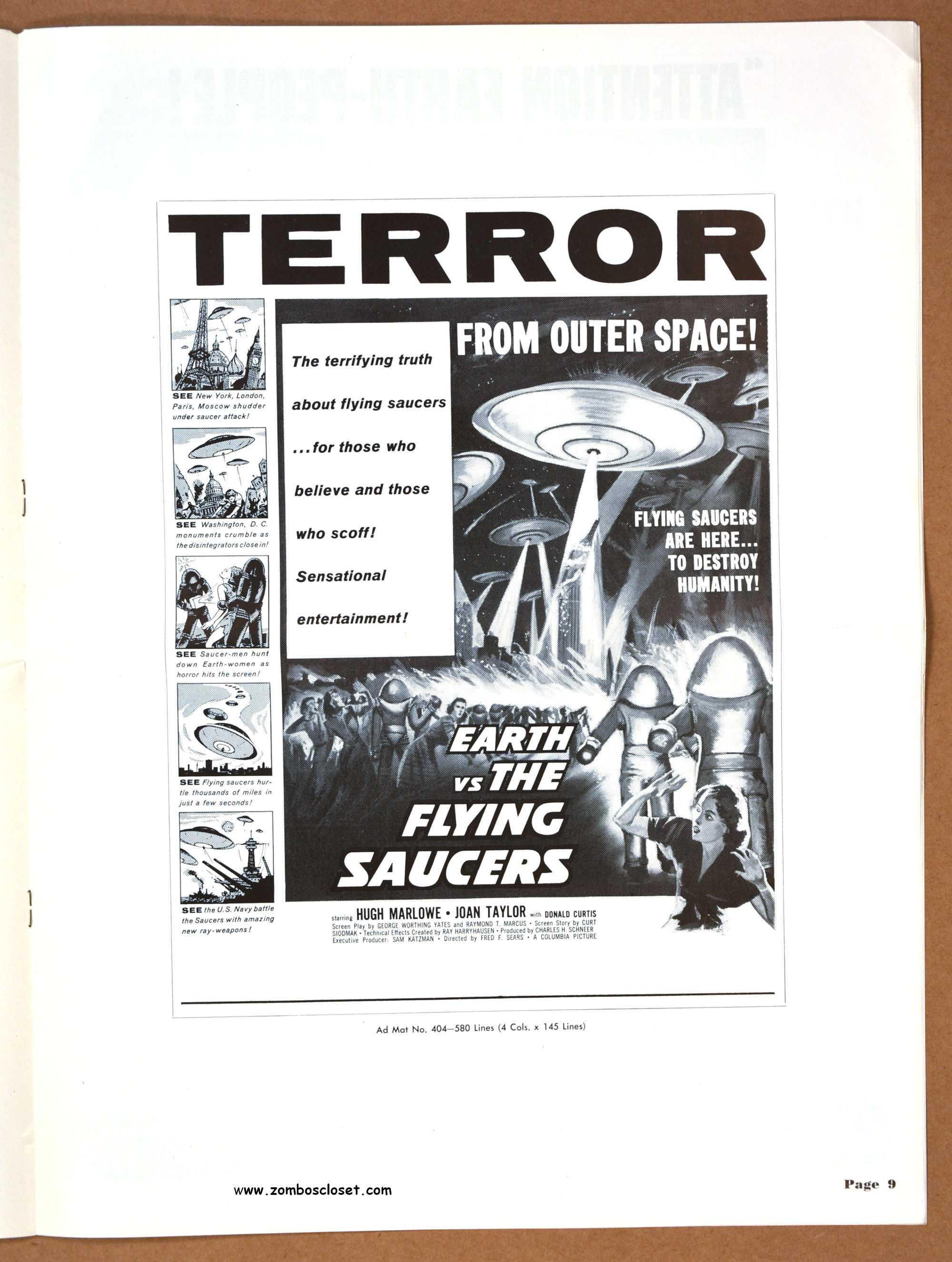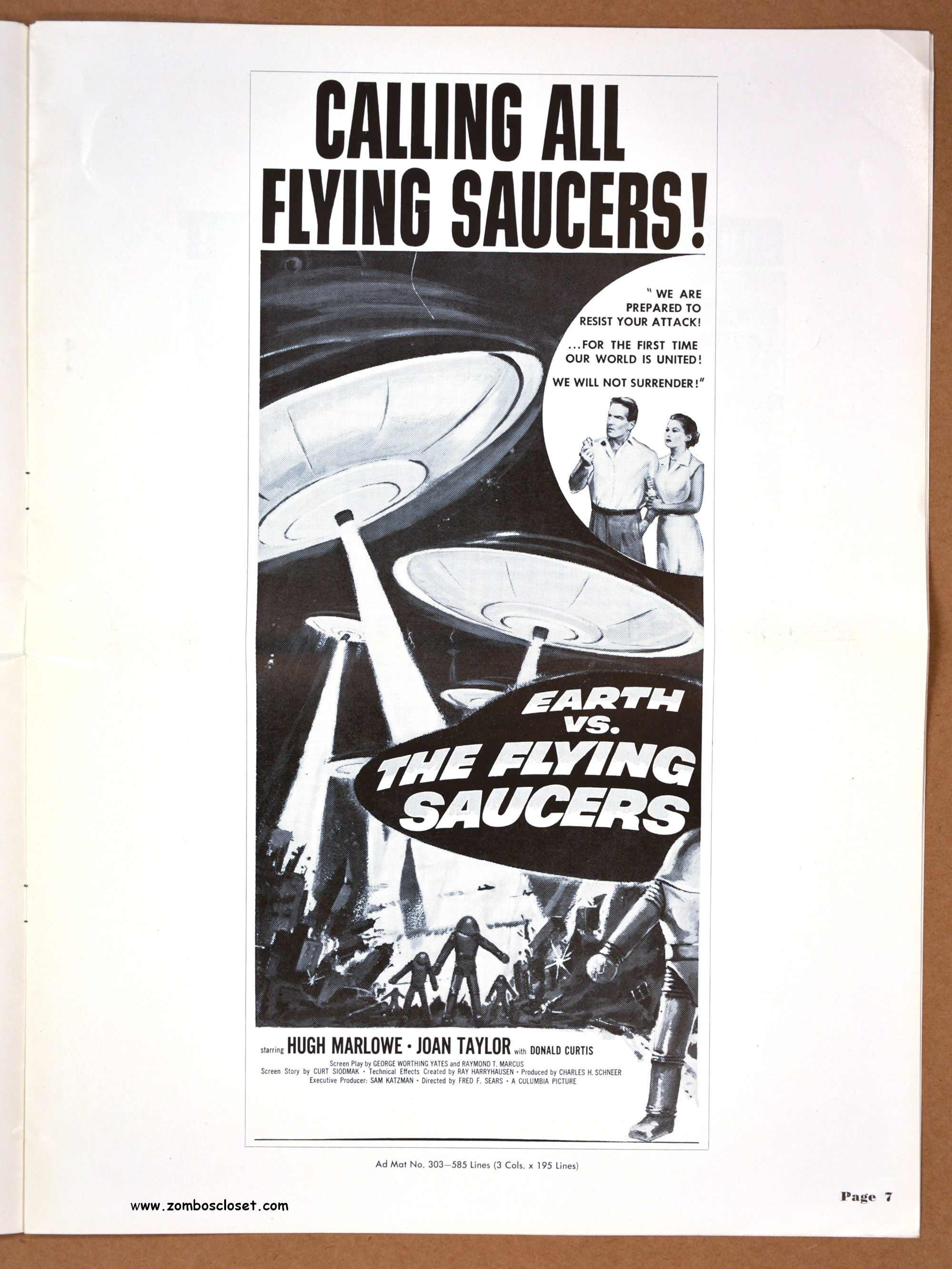 Ray Harryhausen's stop-motion animation is a real visual treat in Earth vs. the Flying Saucers, but the alien design is stellar also. This still remains one of those science fiction movies you should watch at a drive-in or on a big screen, with popcorn and a Coke. It's quintessential 1950s UFO paranoia smartly captured in a quickly moving story. Yes, it has stock footage; yes, it has that odd, semi-documentary approach that some 1950s movies belabored their stories with (The Mole People being the worst example of this), but it's still entertaining and it's still fun.