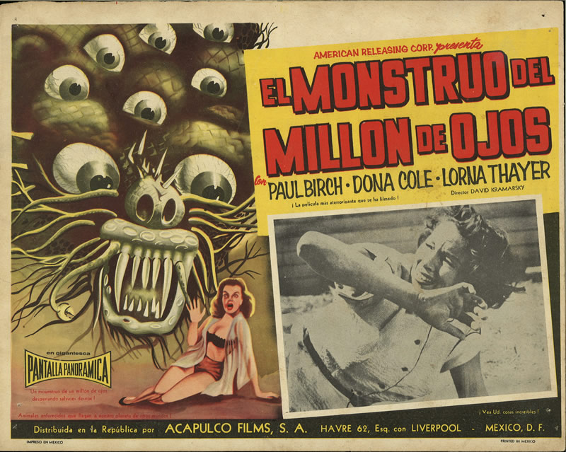 Scantily-clad, screaming women are a staple of bad horror movies. What's interesting here is the contrast between the fully-clothed screaming woman in the movie, and the imagined screaming woman in the illustration. Artistic liberty? Good, suggestive advertising? Cheap gimmick? You be the judge.