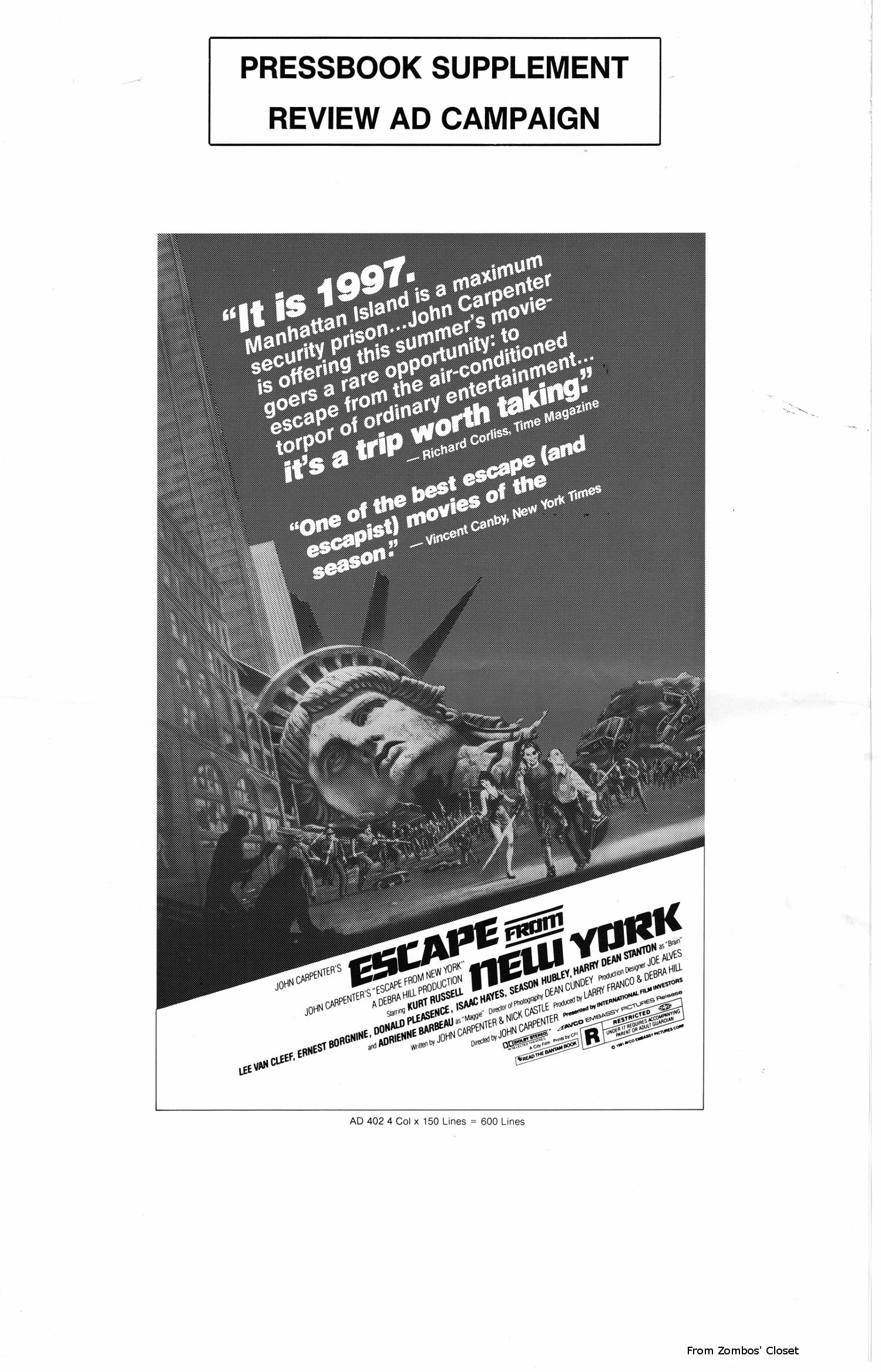 Comic reader version: Download Escape from New York Pressbook