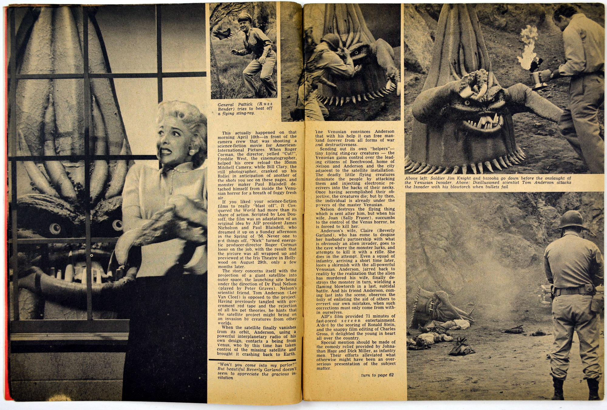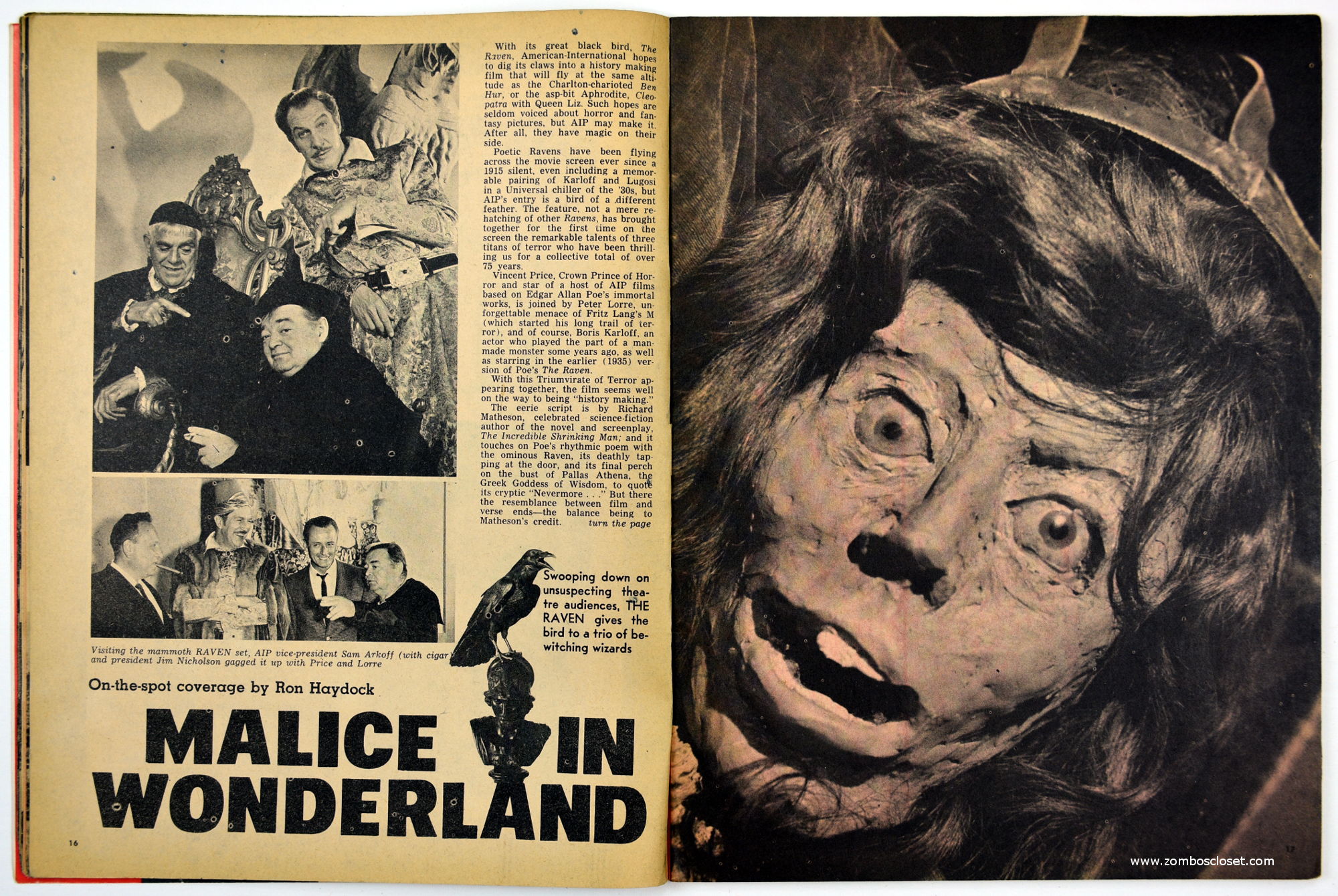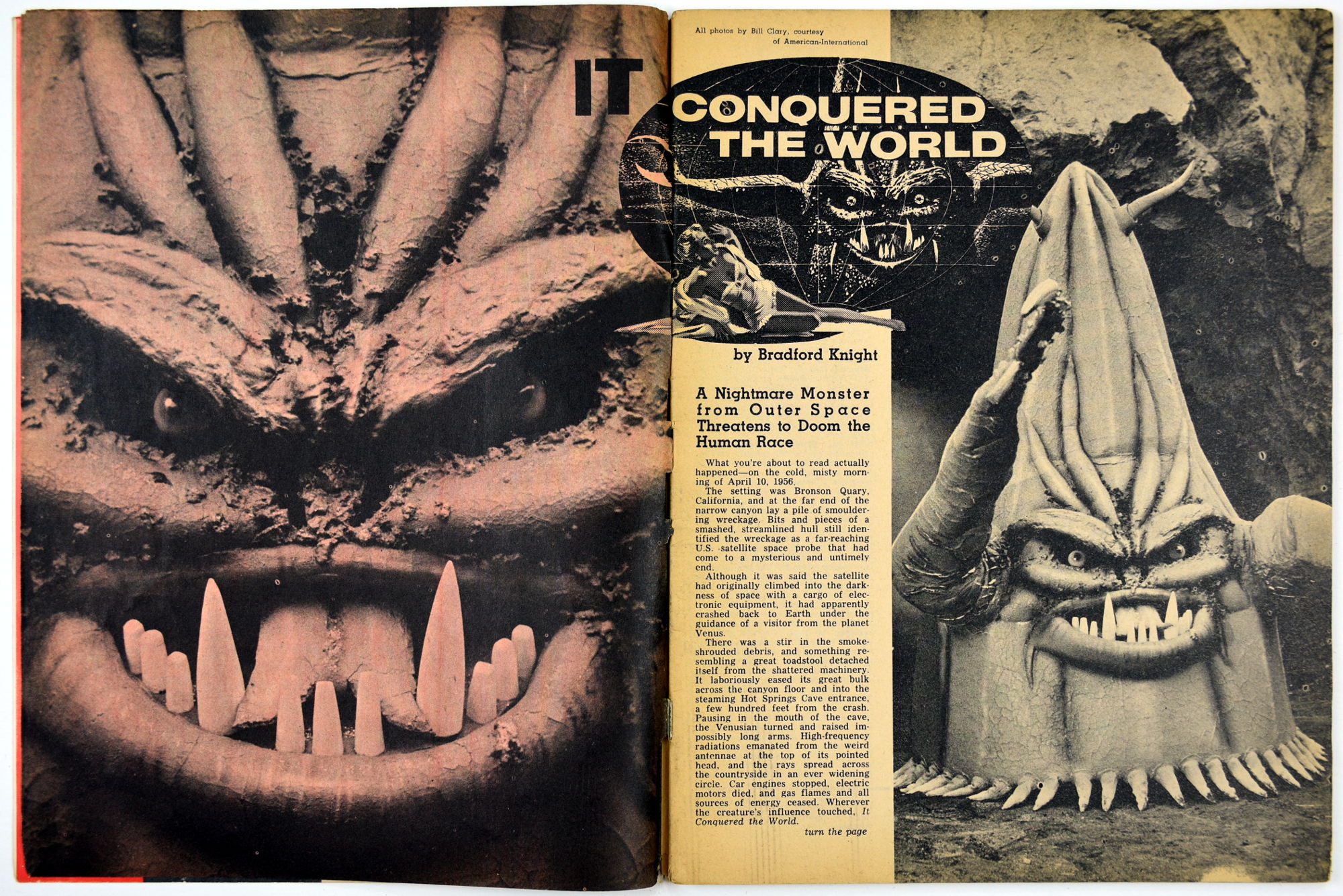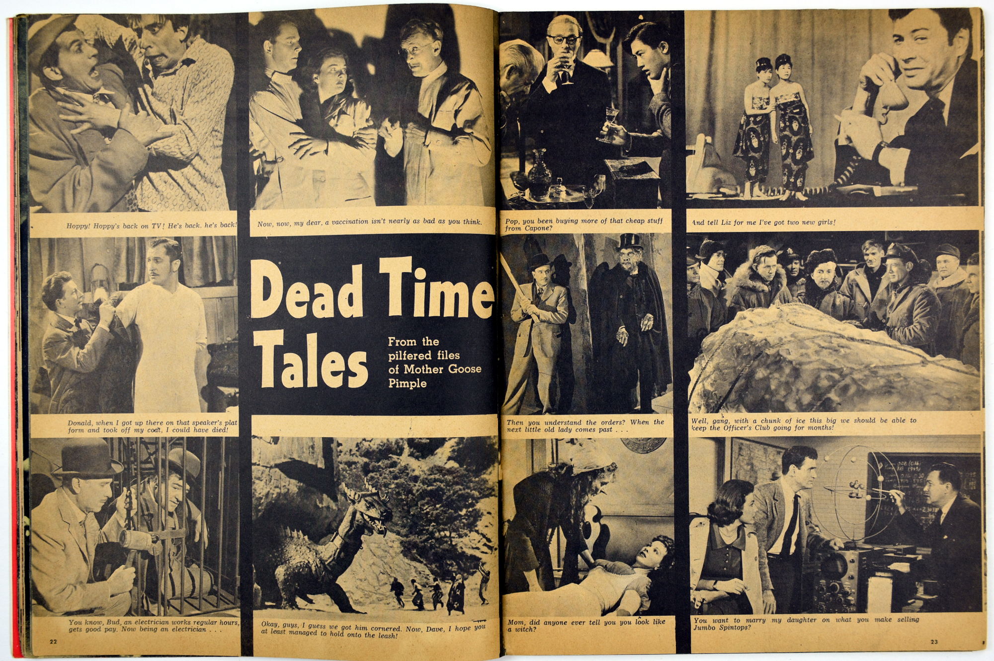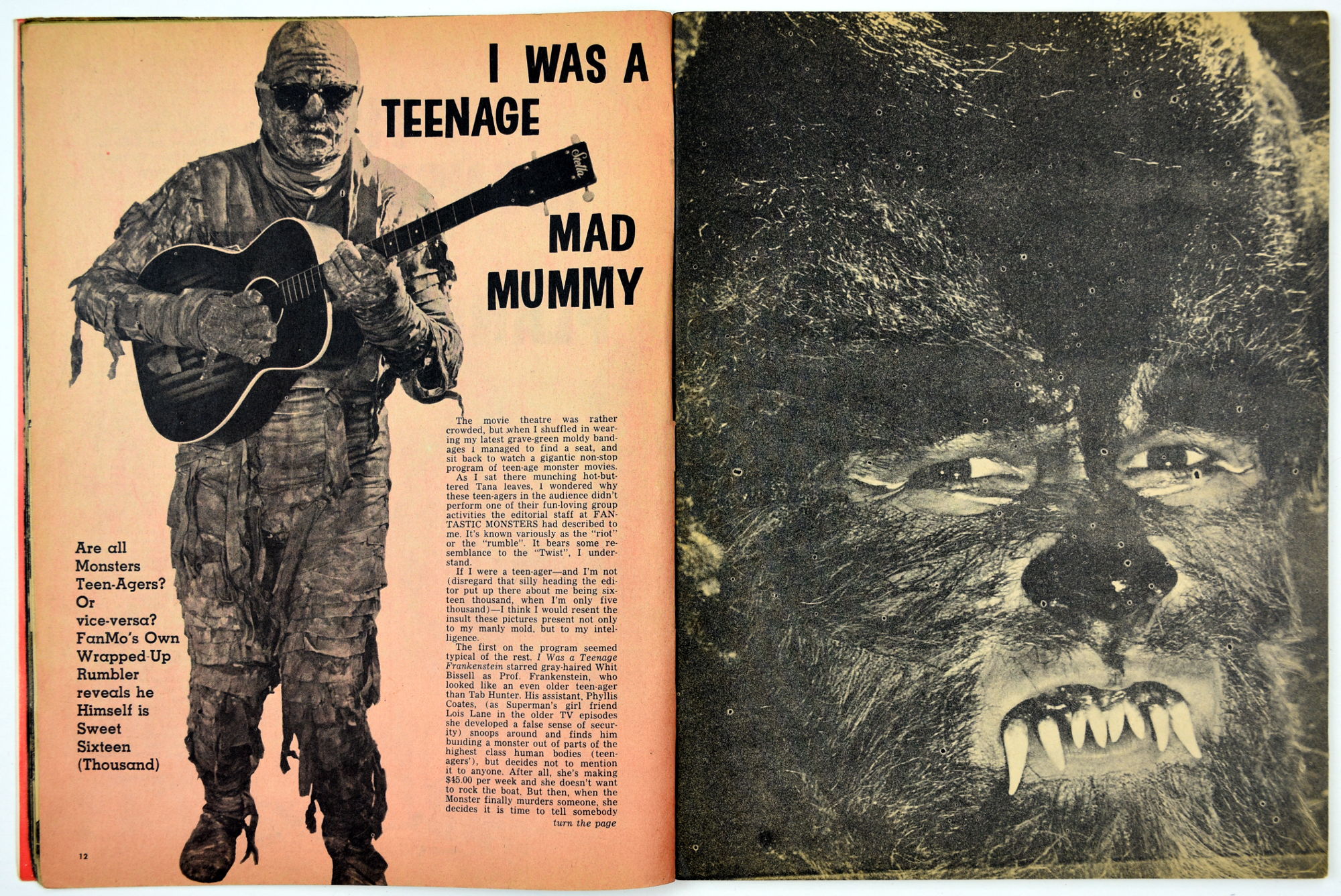 More horror movie coverage with lots of photos fills up Fantastic Monsters of the Films issue 4. The Raven from AIP gets nice coverage, James Bond's first outing with Dr. No gets a license to see, and George Pal is highlighted. A fantastic close-up of Lon Chaney Jr. as the Frankenstein Monster stands out among other great shots of him in various roles, and horror host Jeepers of Theatre 13 is spotlighted. A treat for Mexican horror fans is Thomas Bradley's article, Ship of Monsters. Another real treat is Vincent Price's In Defense of Horror Films. (This copy comes from Professor Kinema's archive.)