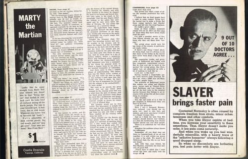 Here’s a treat courtesy of Professor Kinema (Jim Knüsch). We were discussing The Beast with a Million Eyes and he brought along Fantastic Monsters of the Films Issue 1, which has an article on the puppet creature (with only two eyes) Paul Blaisdell created for Roger Corman’s movie. Great use of color and with a lively layout, Fantastic Monsters magazine was a feast for the eyes of monsterkids everywhere. Here’s the comic reader version if you’re so inclined:  Download Fantastic Monsters of the Movies 1