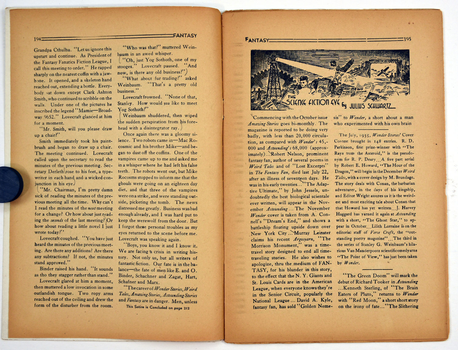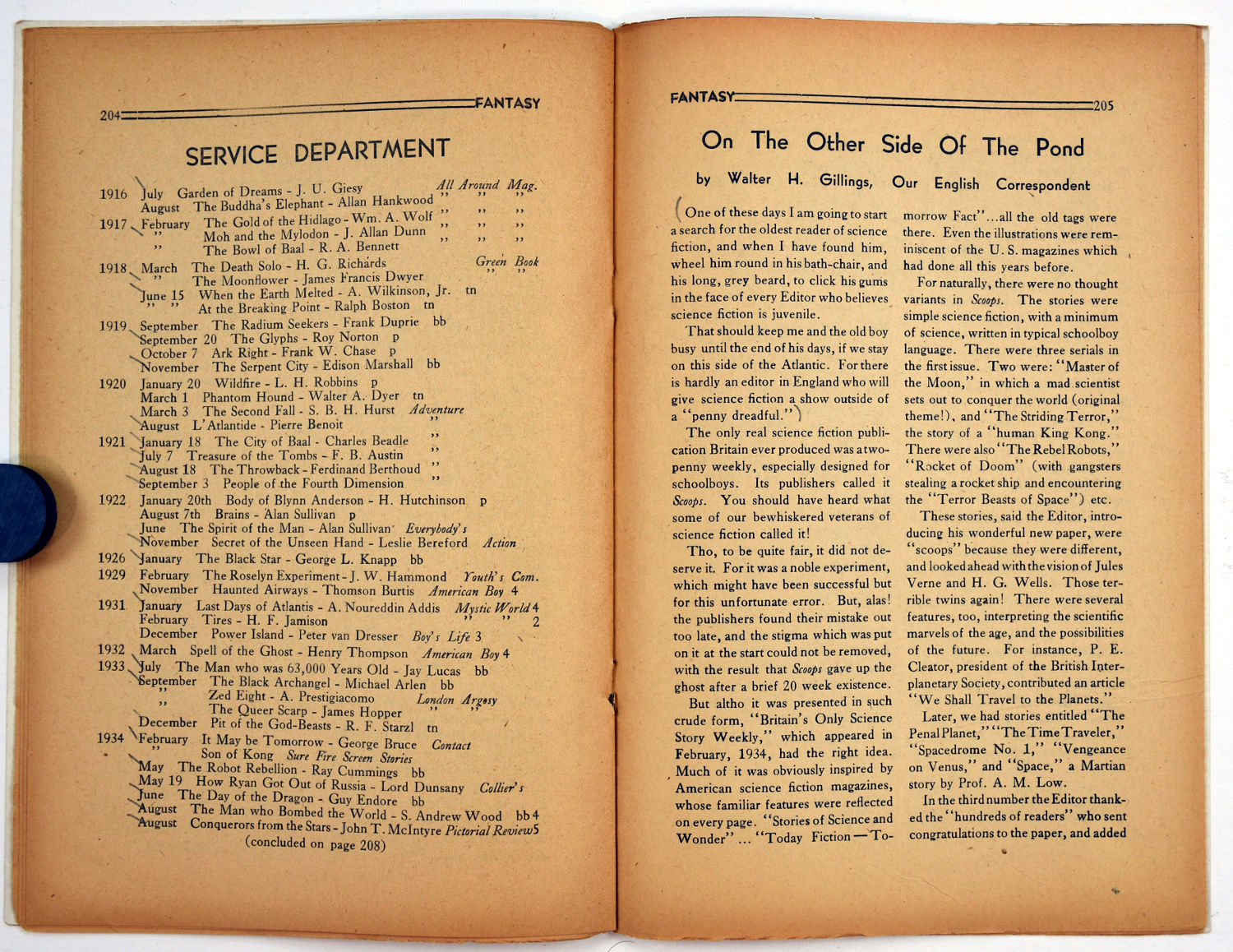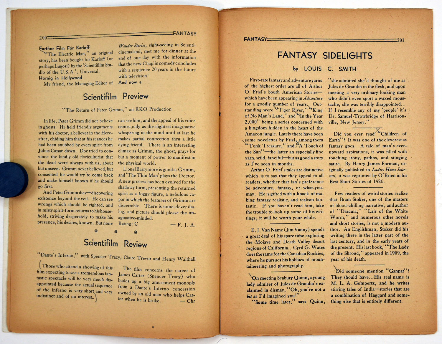 Courtesy of the Professor Kinema's Archives comes another issue of Fantasy Magazine, sent to the Professor by Forrest J. Ackerman some time ago. In this issue, Robert Block writes up a satire, FJA writes another Scientificinematorially Speaking, and Julius Schwartz puts things in focus with The Science Fiction Eye.