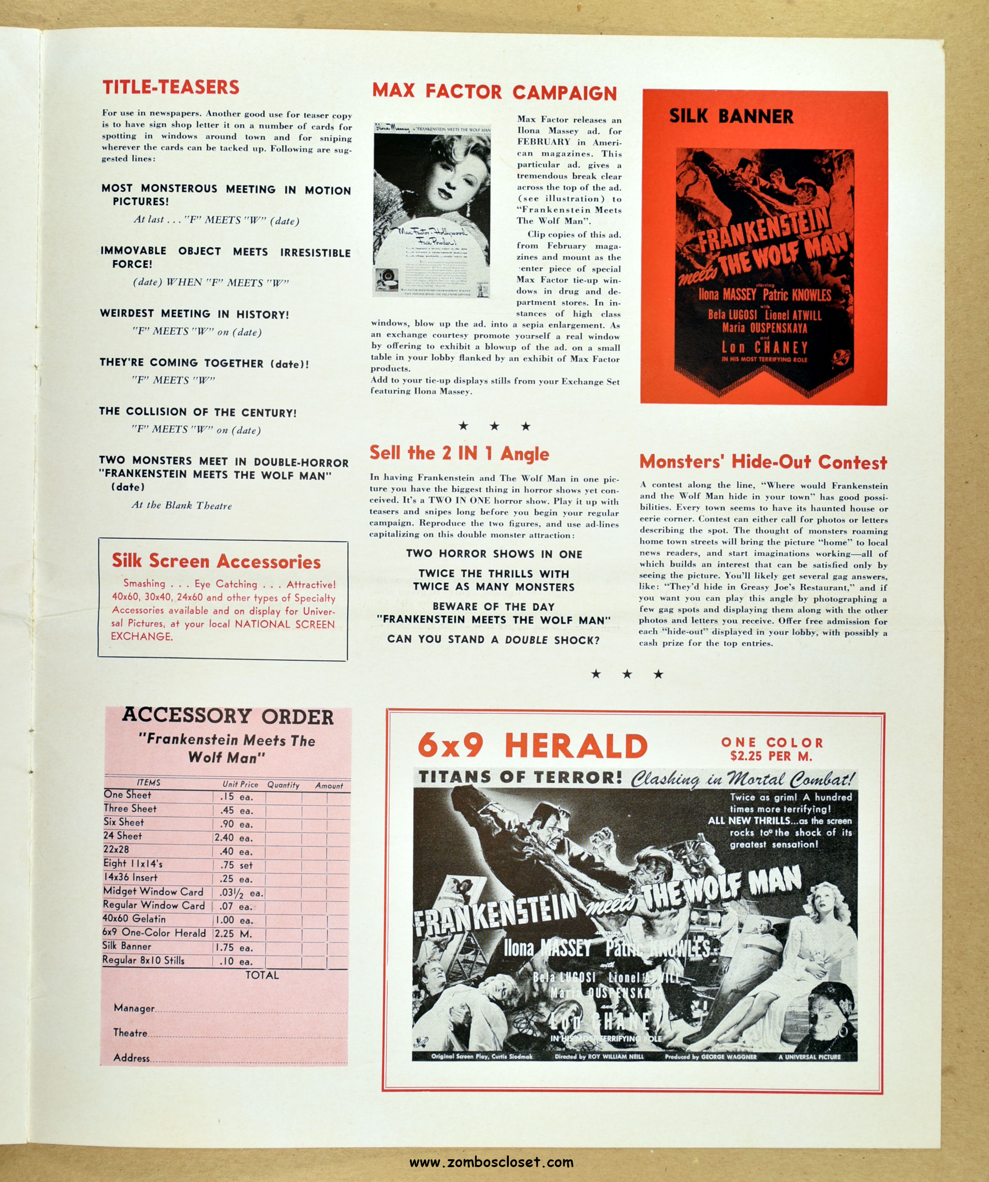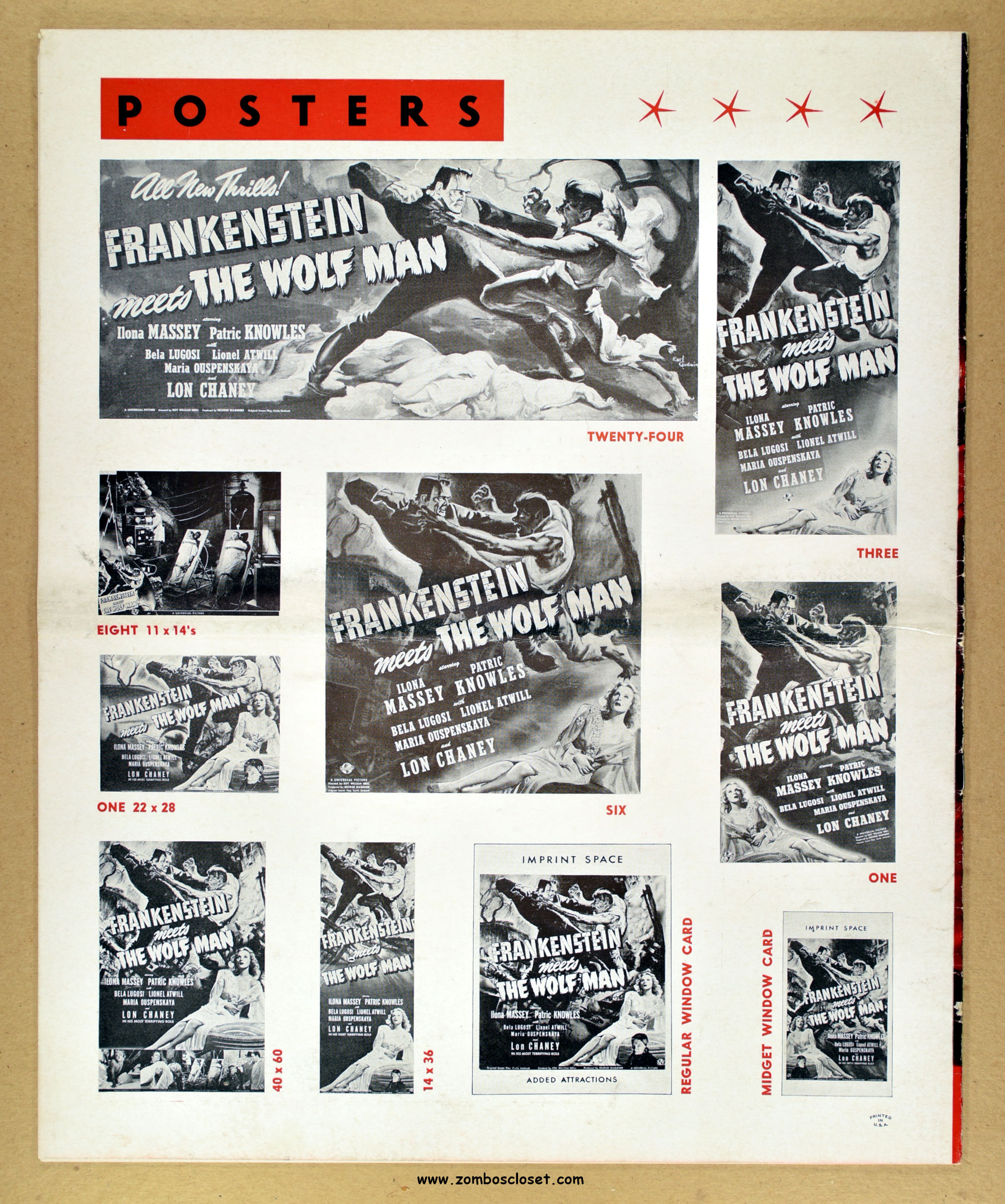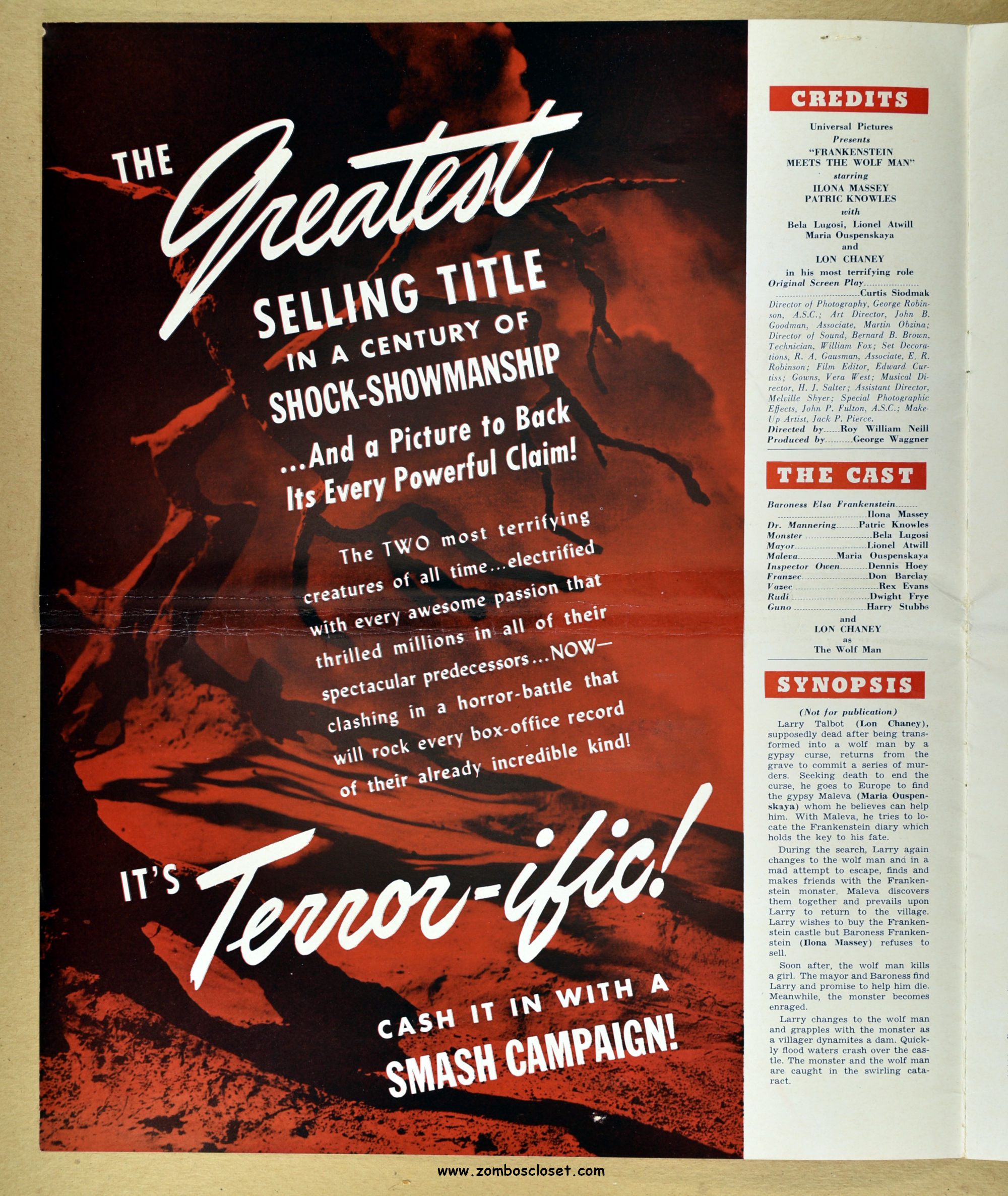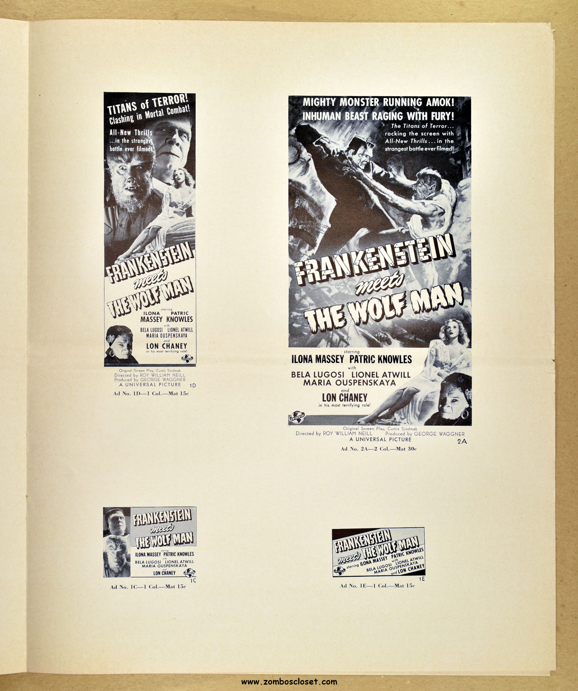 Comic reader version:  Download Frankenstein Meets the Wolf Man Pressbook