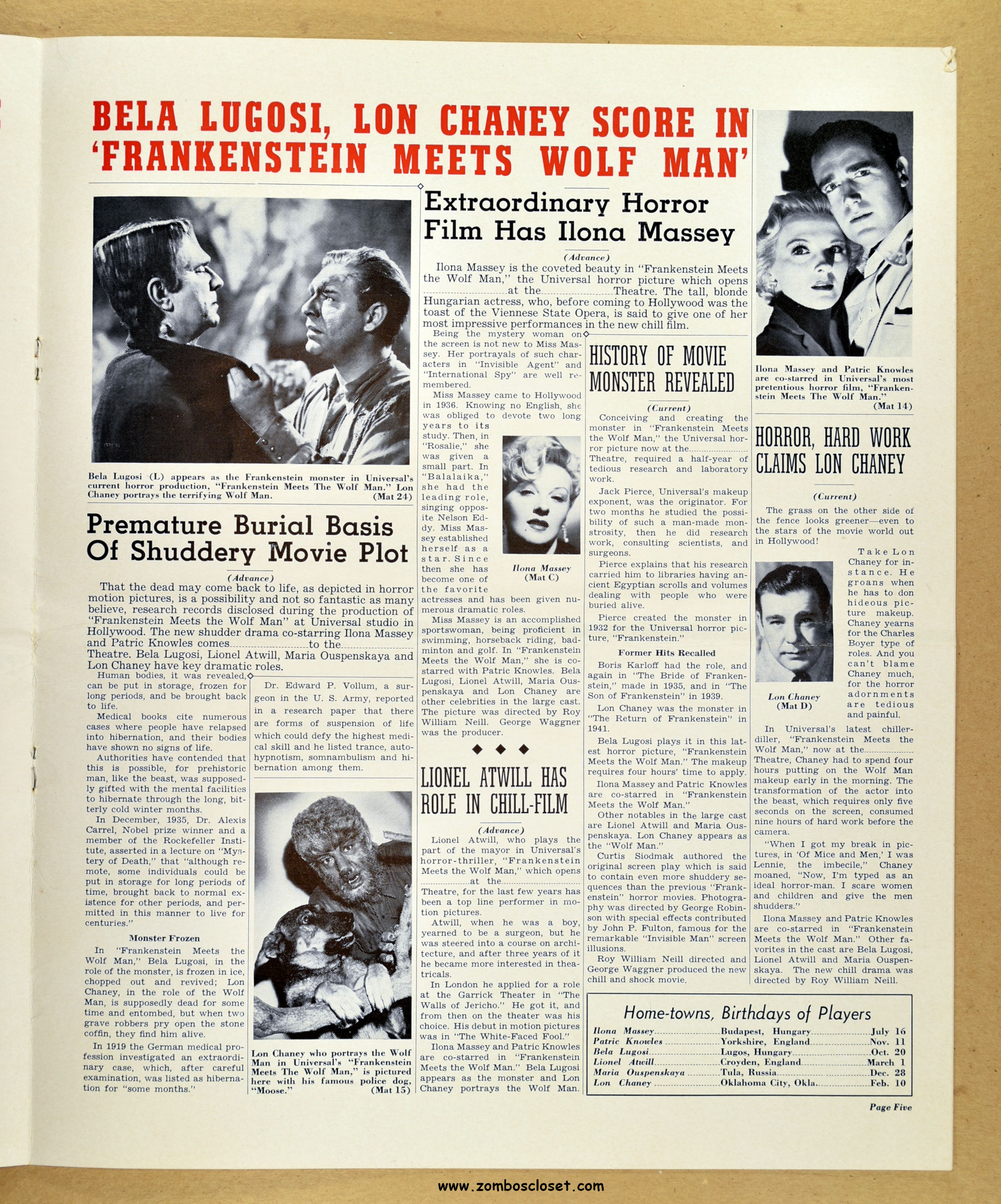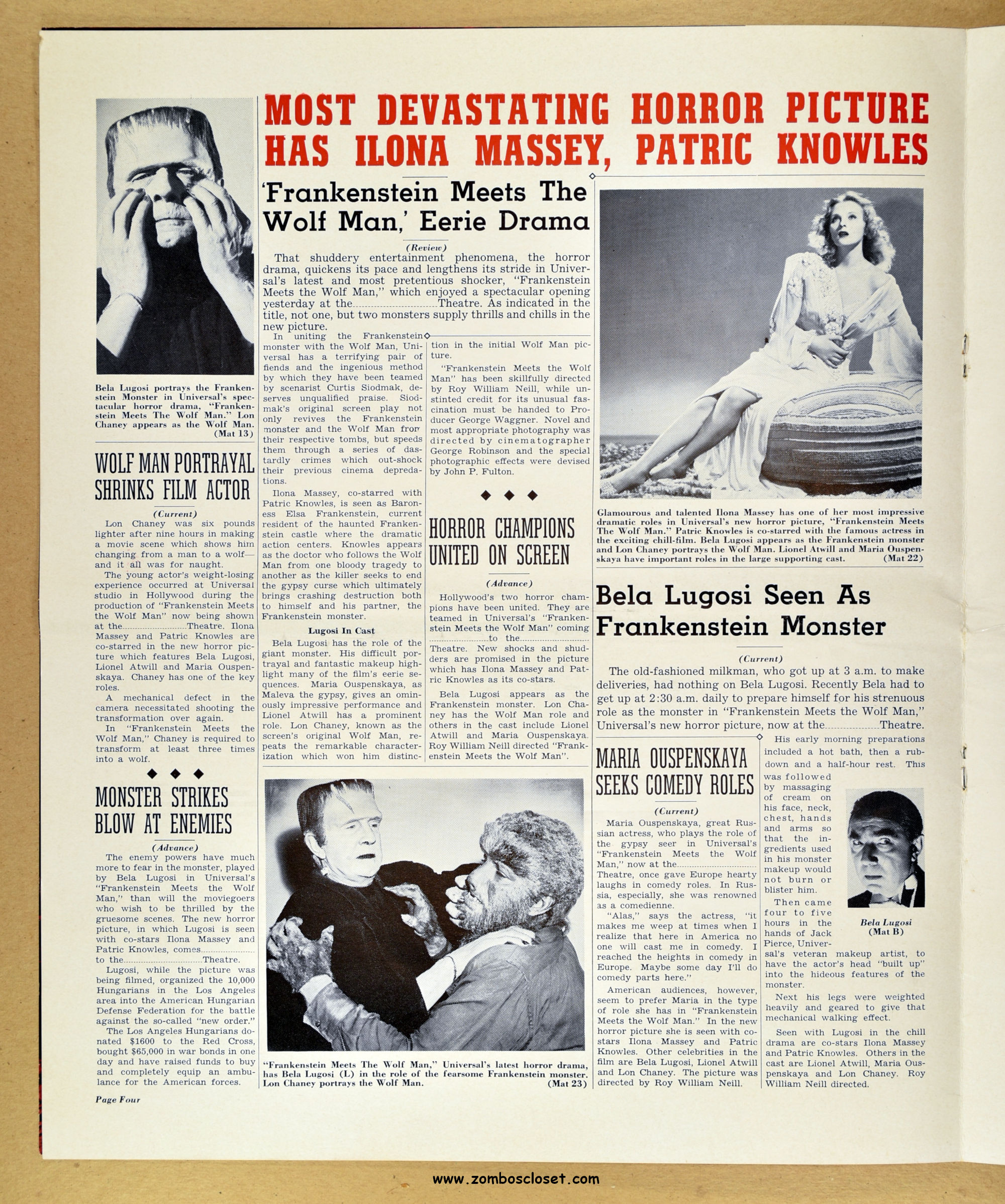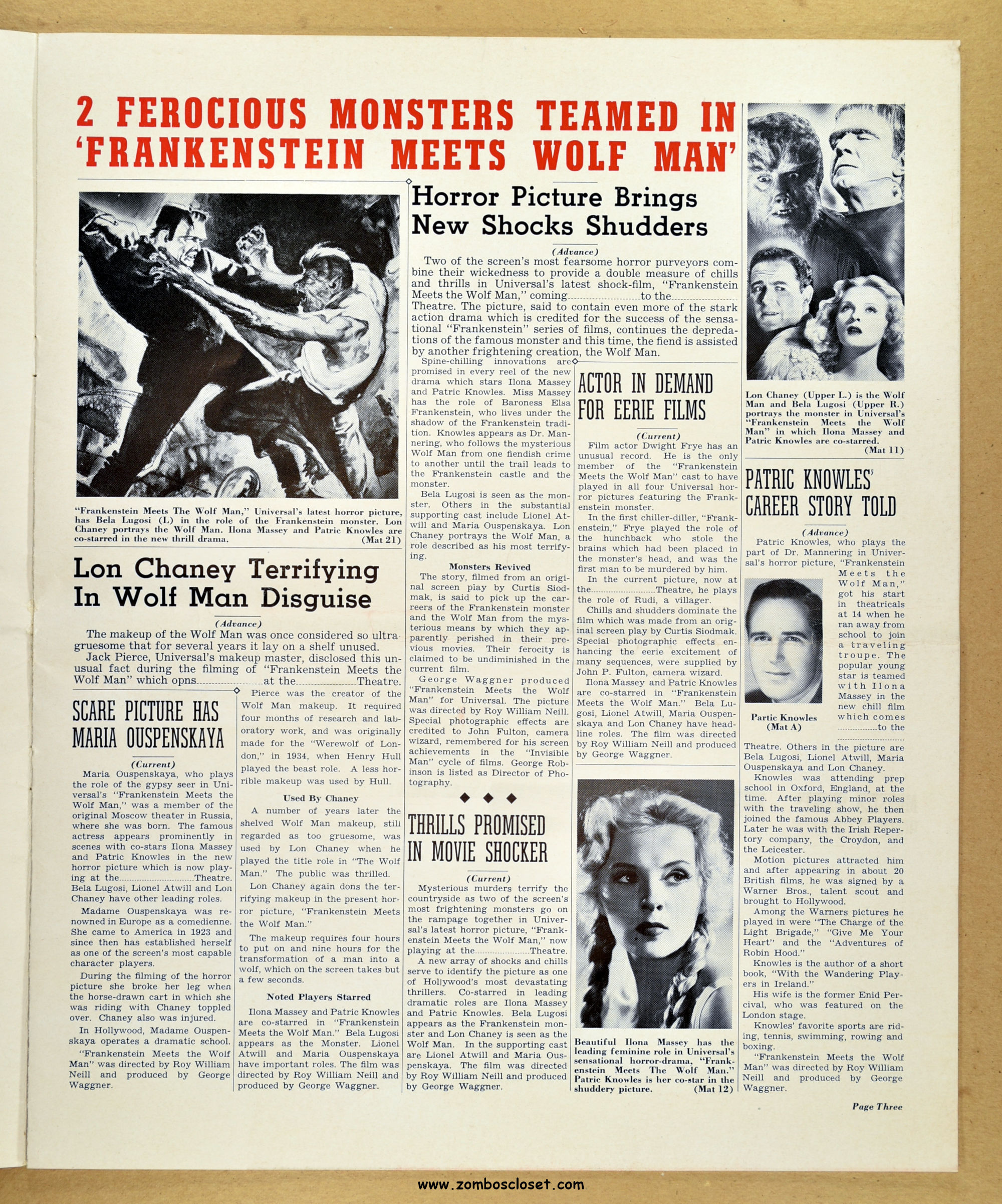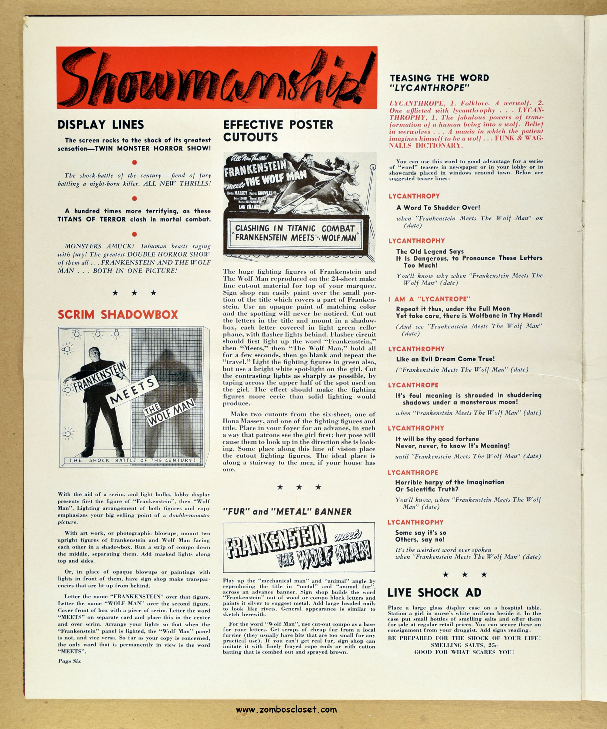 Comic reader version:  Download Frankenstein Meets the Wolf Man Pressbook