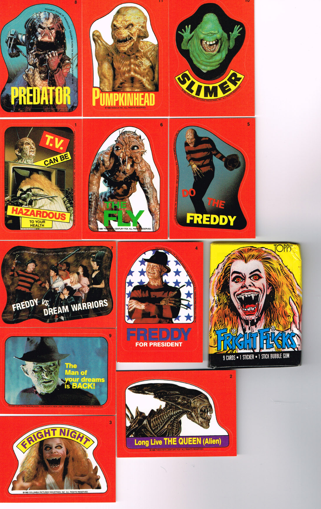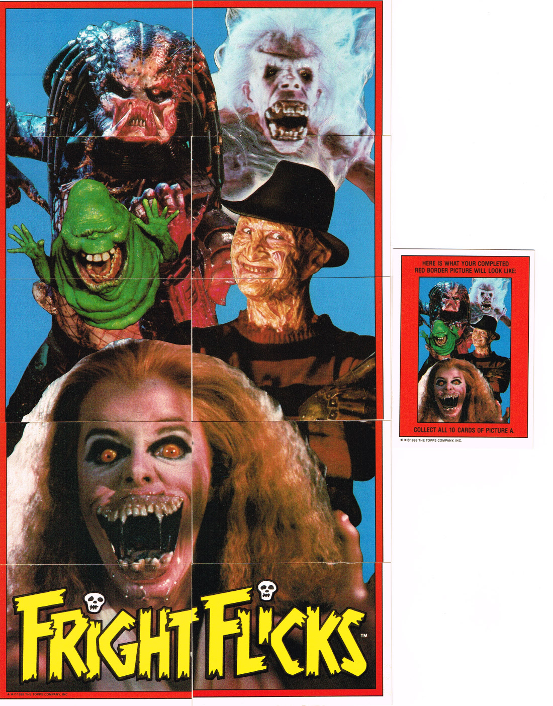 Fright Flicks Picture A Leave a Comment / Trading Cards / By JM Cozzoli This is the 10 card set for Picture A of Fright Flicks, 1988, from the Topps Company. Put together, the backs make a nifty nostalgic poster suitable for framing. Practical effects were the bomb in the 1980s. Like this:Like Loading... Share this post Facebook Twitter Pinterest Linkedin