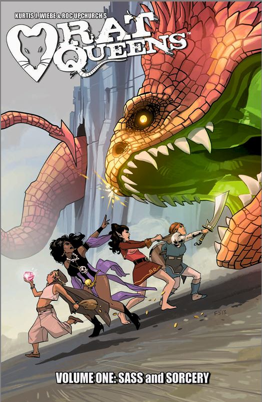 Normally I wouldn't be caught dead reading a title like Rat Queens (well, maybe if you forcefully stuffed the issues, or the graphic book, into my lifeless hands). It has that fanboy cheek and geek glossing of the usual curse words, the go to, get loose, comic-book-inhabiting female characters, and the appropriately imaginative cosplay trappings hinting at time-periods and imagined realms, where everyone is young and fun-loving, and older people stay indoors or live in some other place similar to Florida. A running joke about Old Lady Bernadette pokes fun at this old age (or is it age-old?) conundrum of comic book lit.