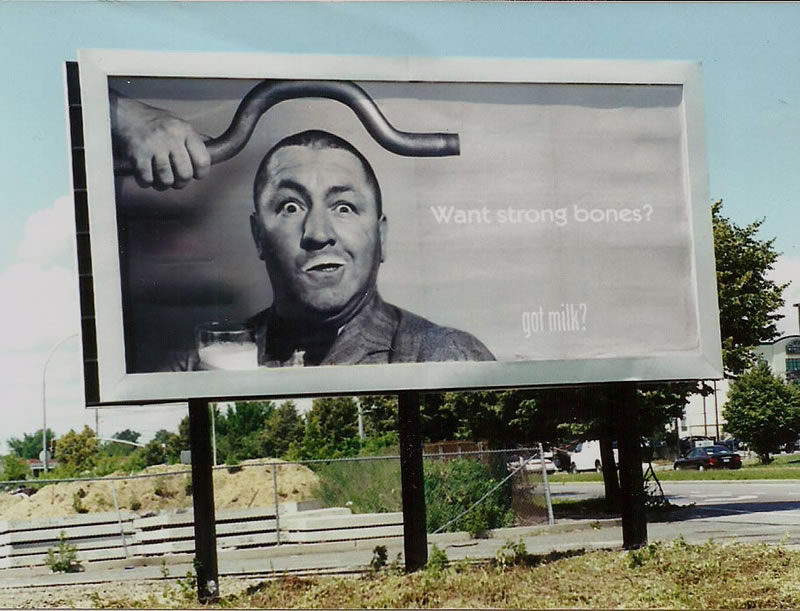 While visiting a friend in Brooklyn in the 1990s, he led me to a certain nearby billboard. Milk will always remain an excellent source of calcium for stronger bone density, which was especially needed for what Moe always referred to as Curly's 'cast iron skull.'