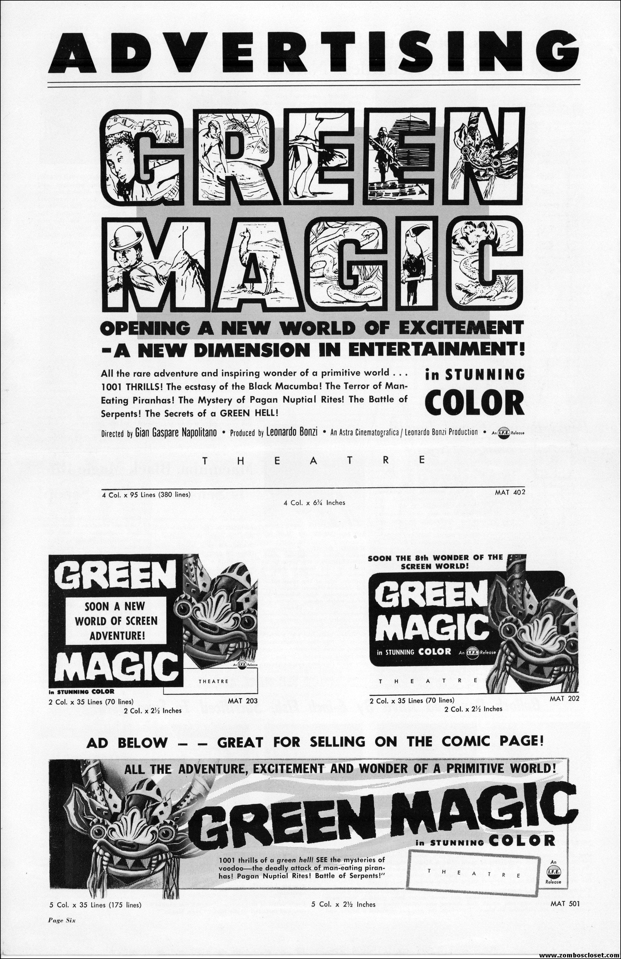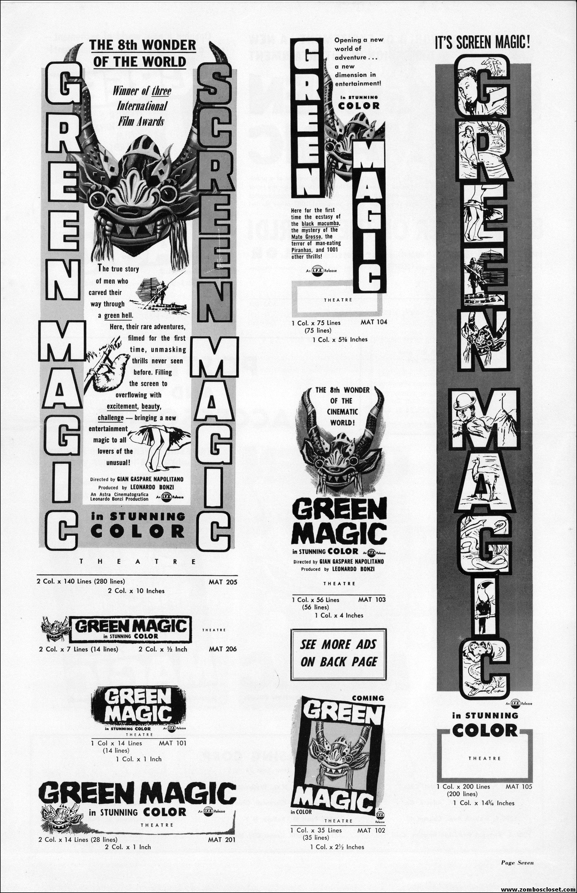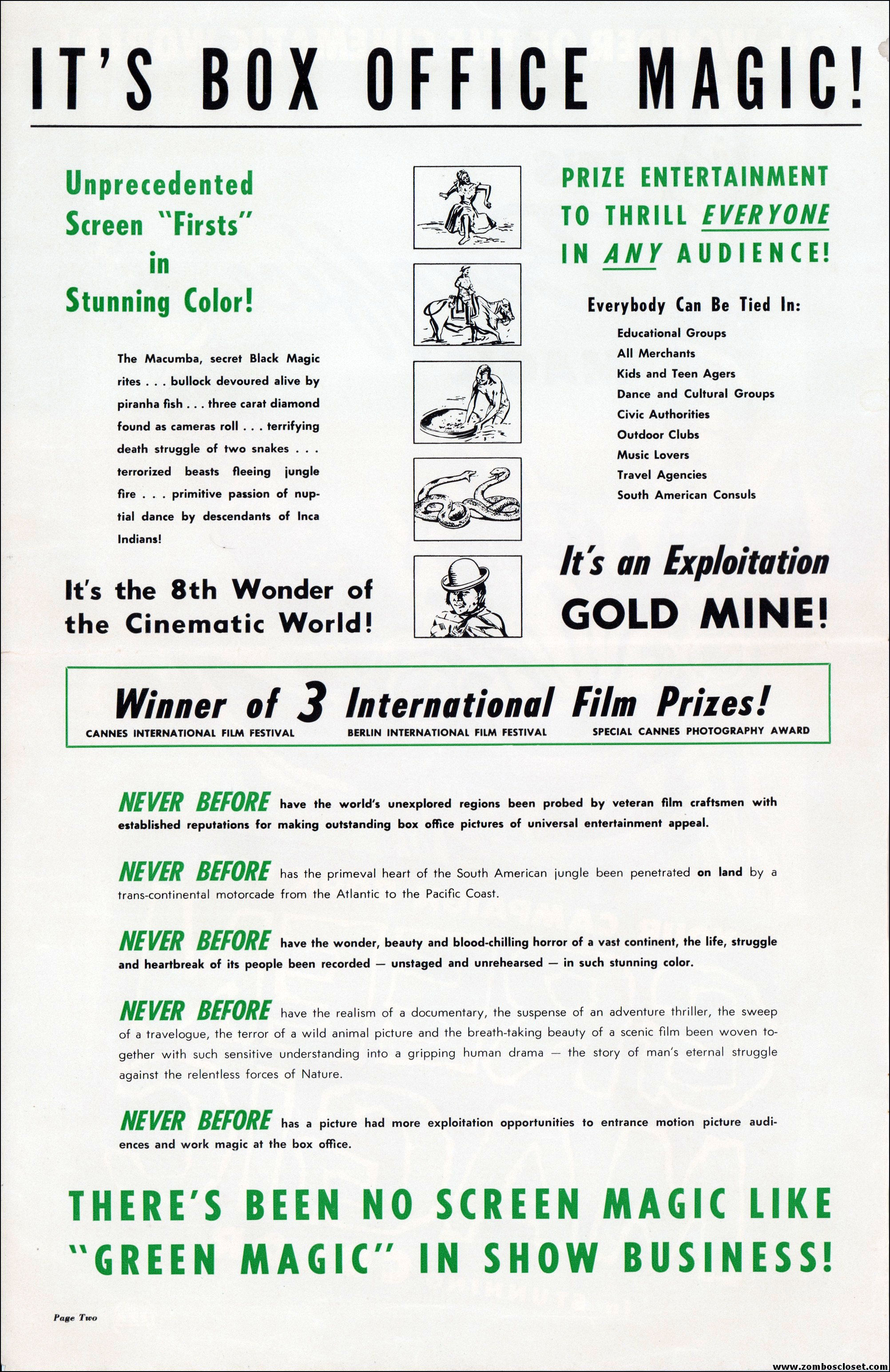 An Italian documentary capturing yet another excursion into the jungle, which seemed very big (think travelogue with exploitation tossed in) up until the 1960s. Now with the Internet and cable channel shows, the big screen isn’t needed anymore to show us the wild and exotic. Of course, there’s straight to DVD for that now, too. I’d love to have one of those kid mask giveaways. That’s another thing about today’s movies, no fun giveaways to promote a showing at the local theater. Bummer.