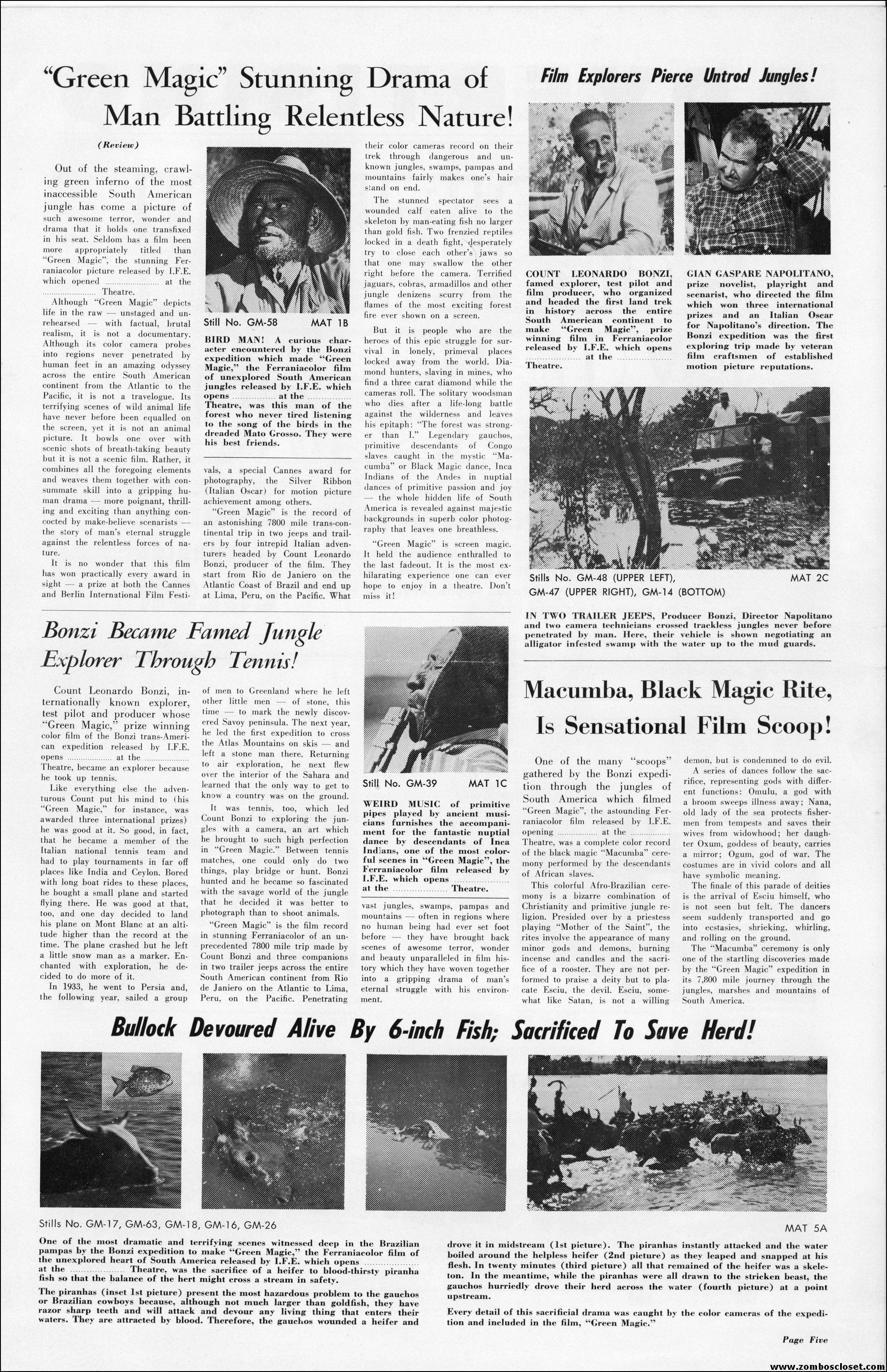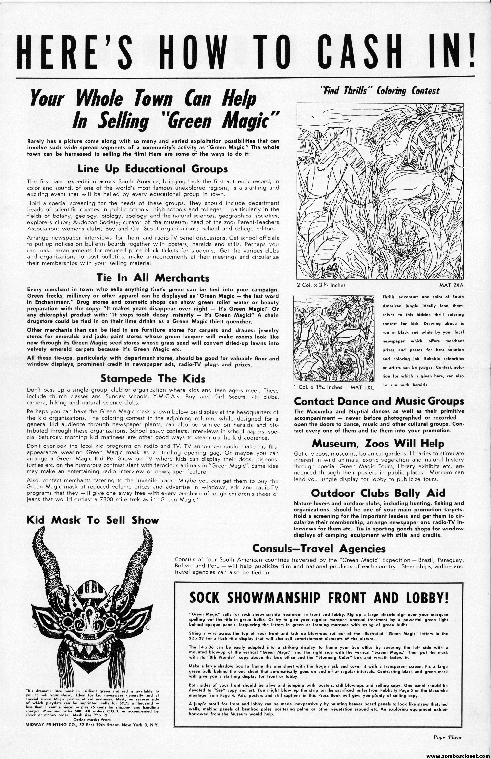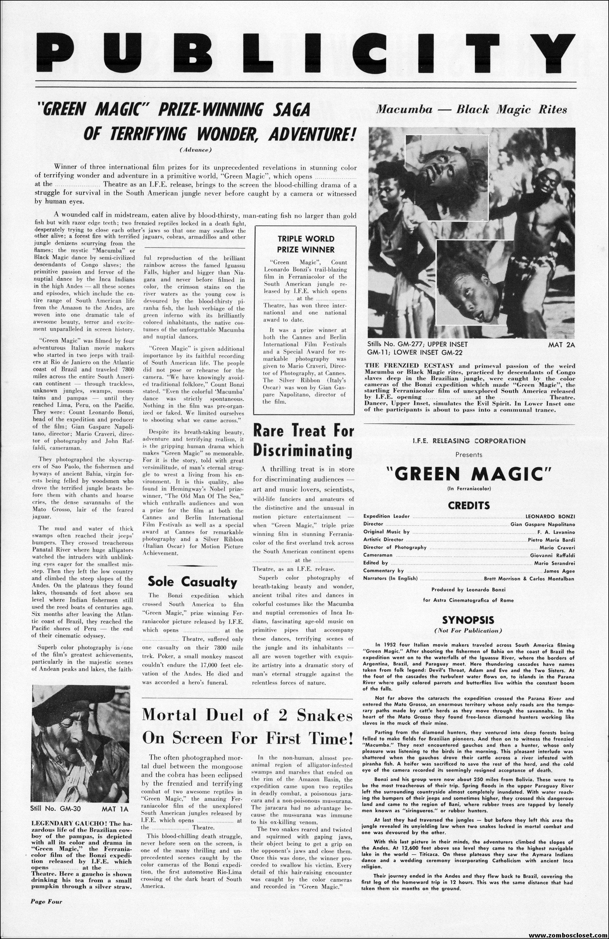 An Italian documentary capturing yet another excursion into the jungle, which seemed very big (think travelogue with exploitation tossed in) up until the 1960s. Now with the Internet and cable channel shows, the big screen isn’t needed anymore to show us the wild and exotic. Of course, there’s straight to DVD for that now, too. I’d love to have one of those kid mask giveaways. That’s another thing about today’s movies, no fun giveaways to promote a showing at the local theater. Bummer.