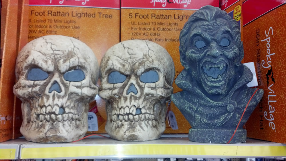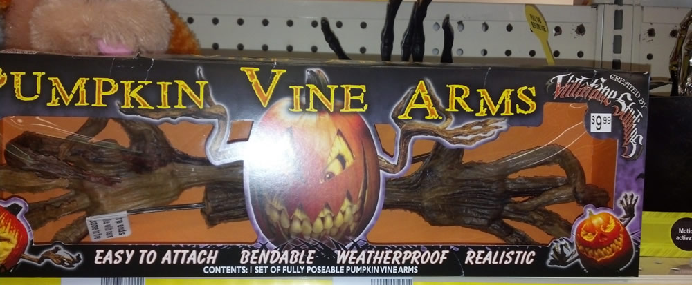 Making the usual rounds, CVS keeps impressing me with their taste in Halloween decorations each year. Ever since the GREAT RECESSION, I’ve not seen as much Halloween merchandise in the stores; and what’s showing up is usually not at the quality level I’ve seen years back. But visiting CVS stores and other local haunts each year is never disappointing, I’ll say that. I especially love the pumpkin vine arms!
