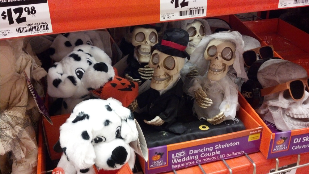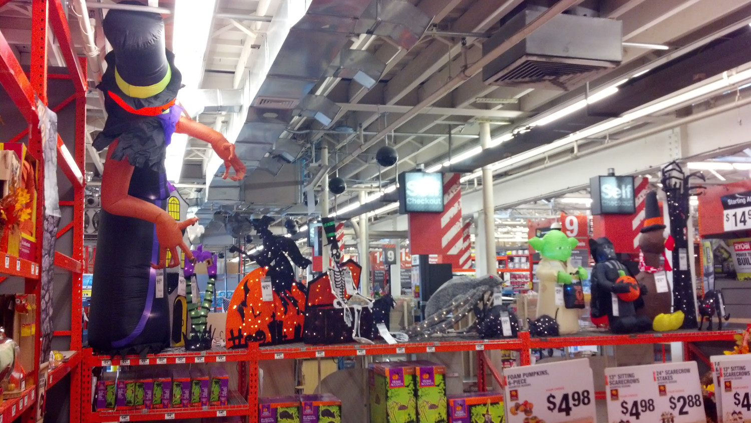 If you want to piss your pants with excitement, I suggest you go into Home Depot. I went there this morning to buy a few sprinkler heads (yeah, an exciting life is mine, right?). And lo and behold, I had to swallow my heart back into my chest after seeing their Halloween display. And there's no better indication our economy is back on track–in spite of all the dyspepsia from the China Syndrome–than a well stocked Halloween display. And Home Depot keeps outdoing itself each year.