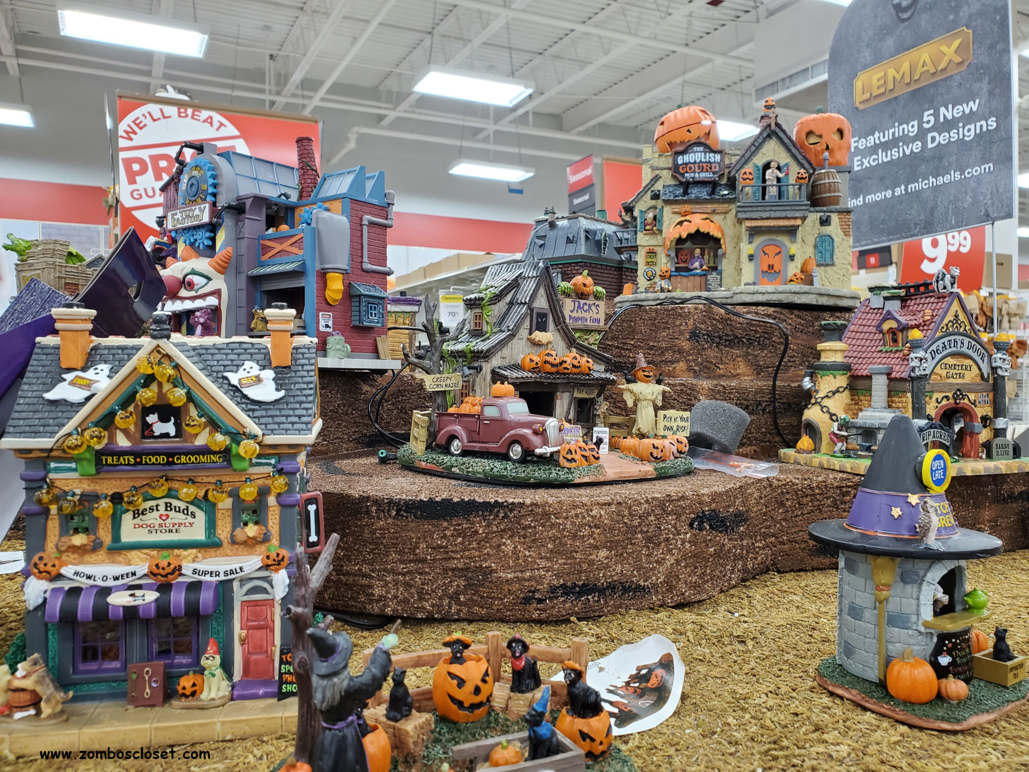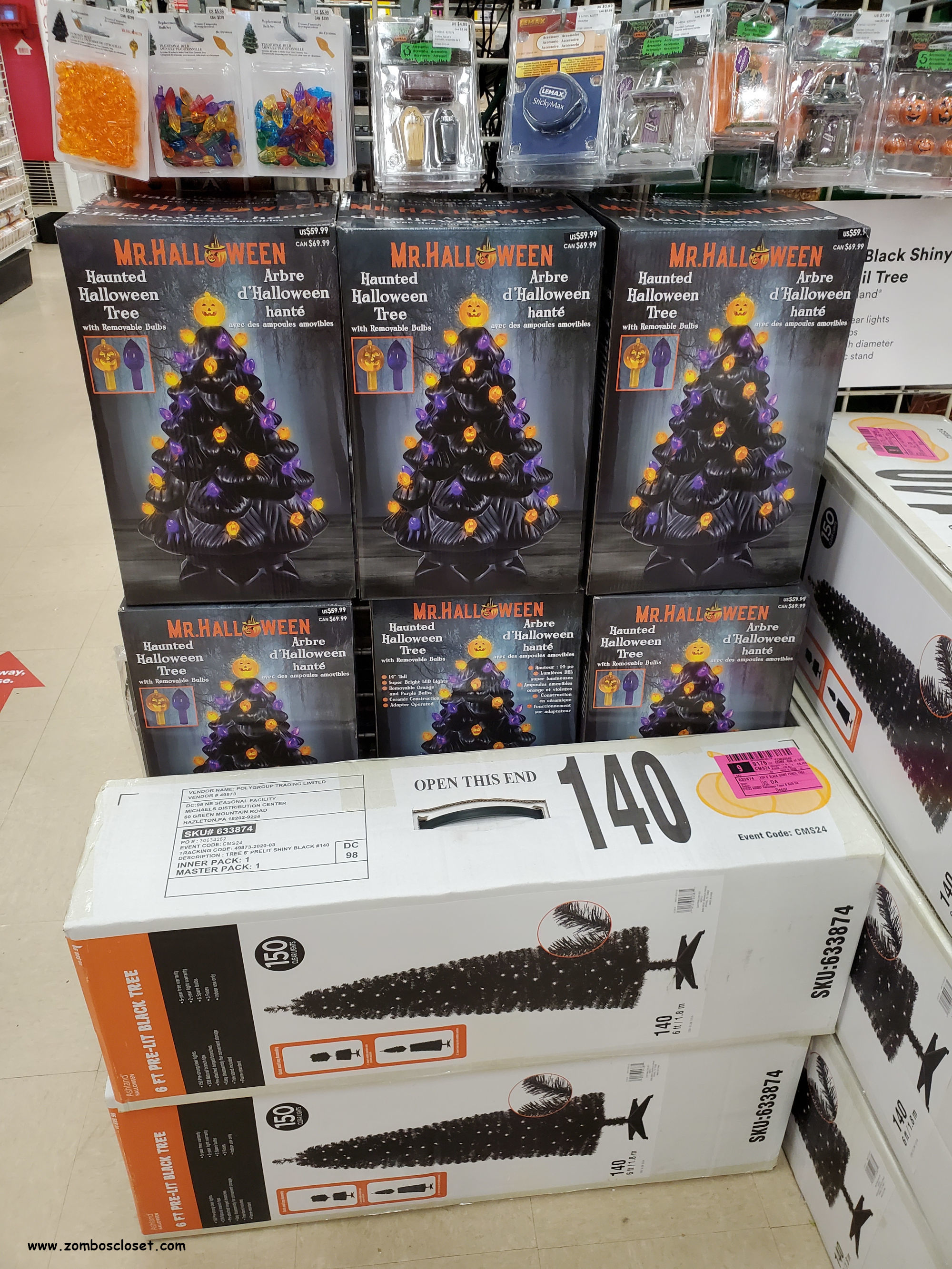Michaels did have Lemax Spooky Town starting to take shape! So here's a look at some of the newer creations for 2020. And there were Halloween trees! I don't recall seeing these before, but for the true fan of Halloween like me–if my wife would let me, but she wouldn't–there are spooky trees you can put up and decorate rather gloomily and doomsily and ghostly. If your wife or significant other would let you, of course.