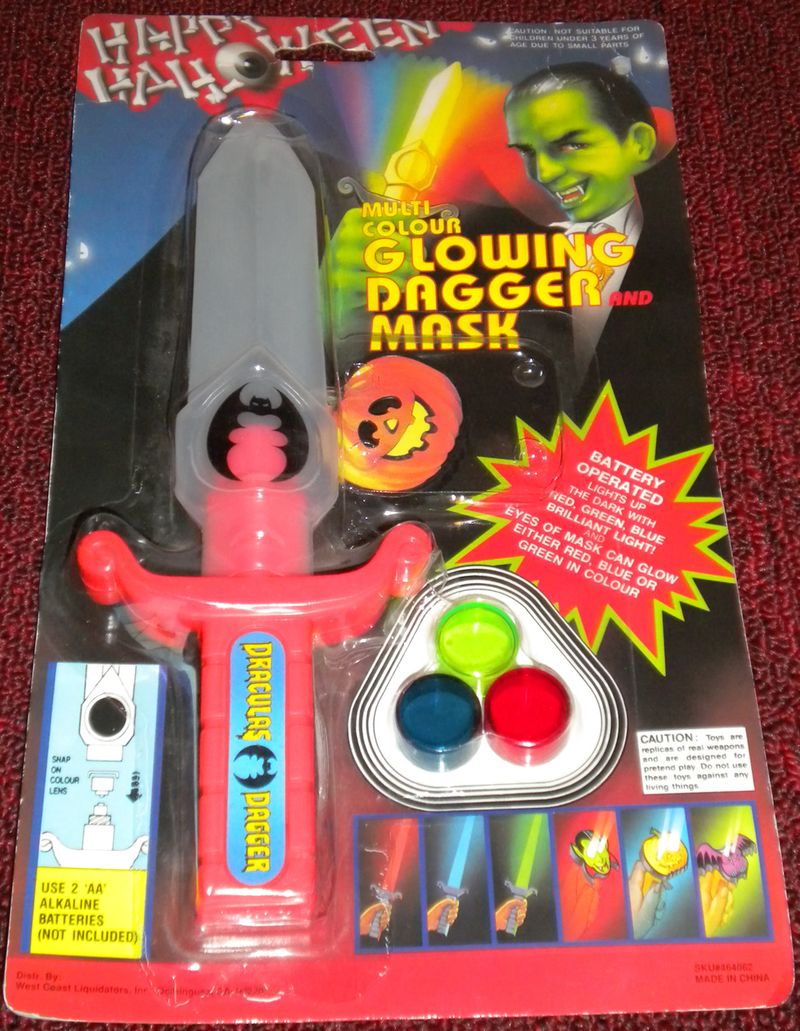 You won’t see Halloween toys like this anymore. Kids might trip and fall onto the nasty-looking point of this wicked plastic weapon of doom and go crying to their lawyer. Or maybe pop some other kid’s eye out with it.