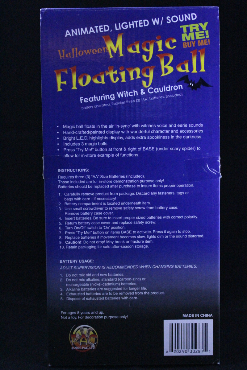Halloween Magic Floating Ball Featuring Witch and Cauldron Leave a Comment / Halloween Novelty / By JM Cozzoli I found this enchanting Halloween novelty in an Eckerd store in 2003. My, where does the time go, right? I couldn’t resist. Had it lying in a box ever since then, but now’s the time to enjoy it. Like this:Like Loading... Share this post Facebook Twitter Pinterest Linkedin