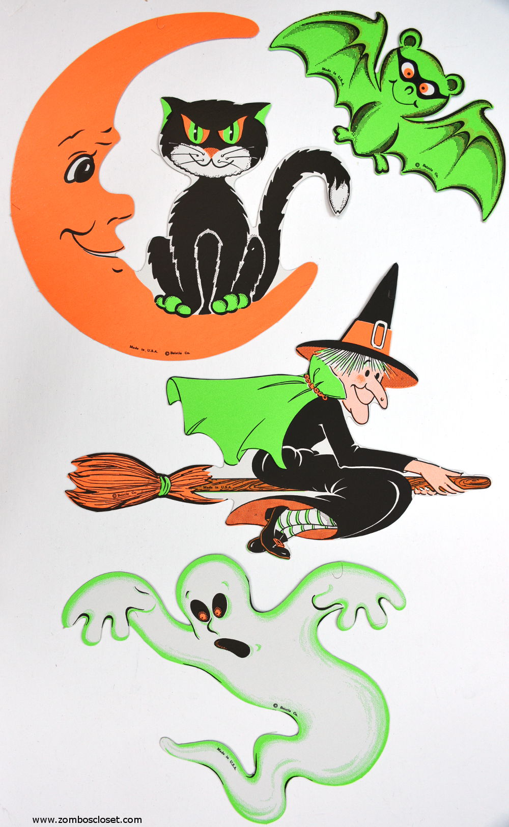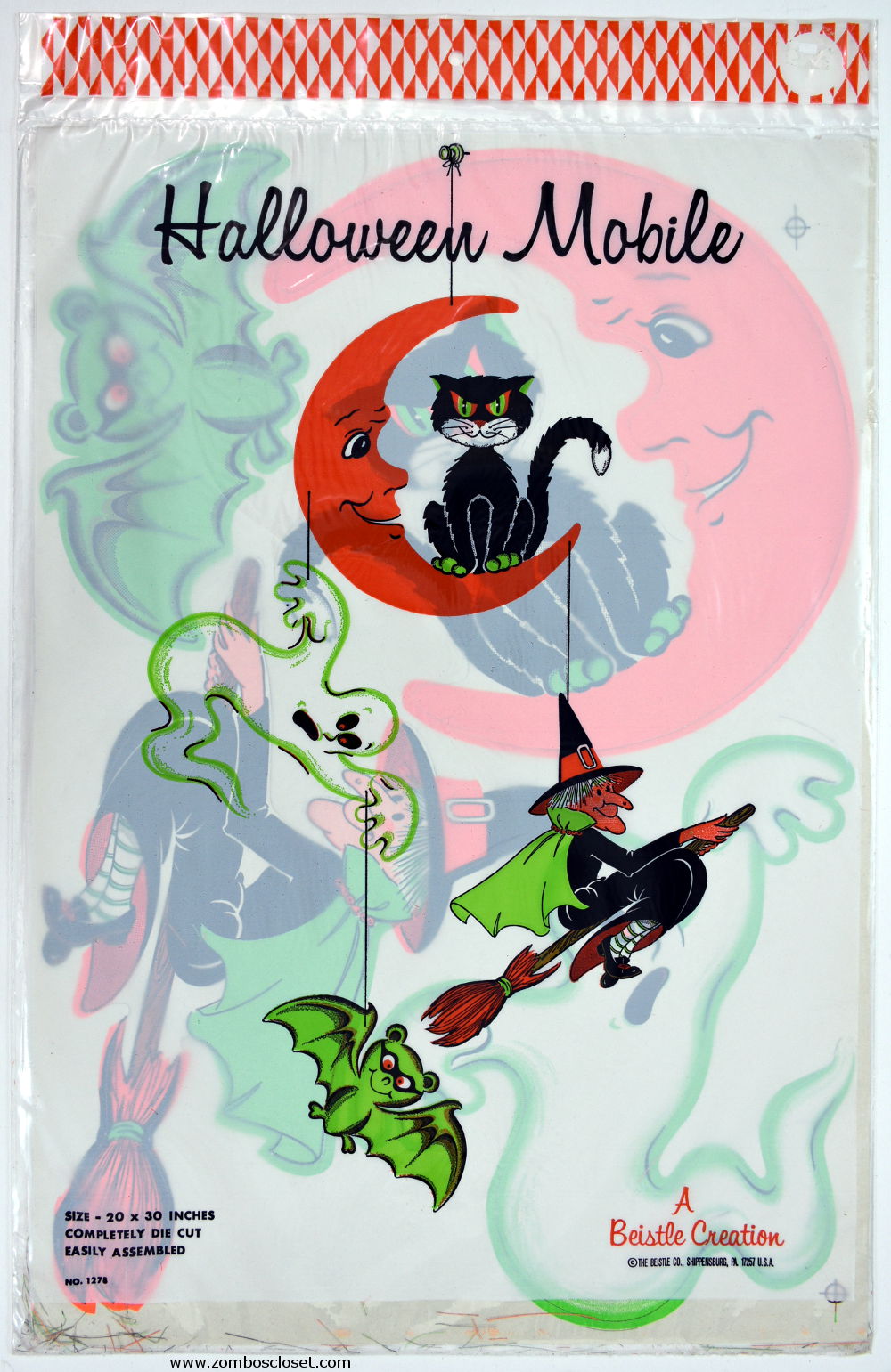 I'm a pushover for Halloween paper decorations. Not overly fond of "cute" stuff, but I had this Beistle mobile in my closet for ages, and I like the colors and cartoon whimsy. So now it's hanging from the ceiling this Halloween, and for many more to come.