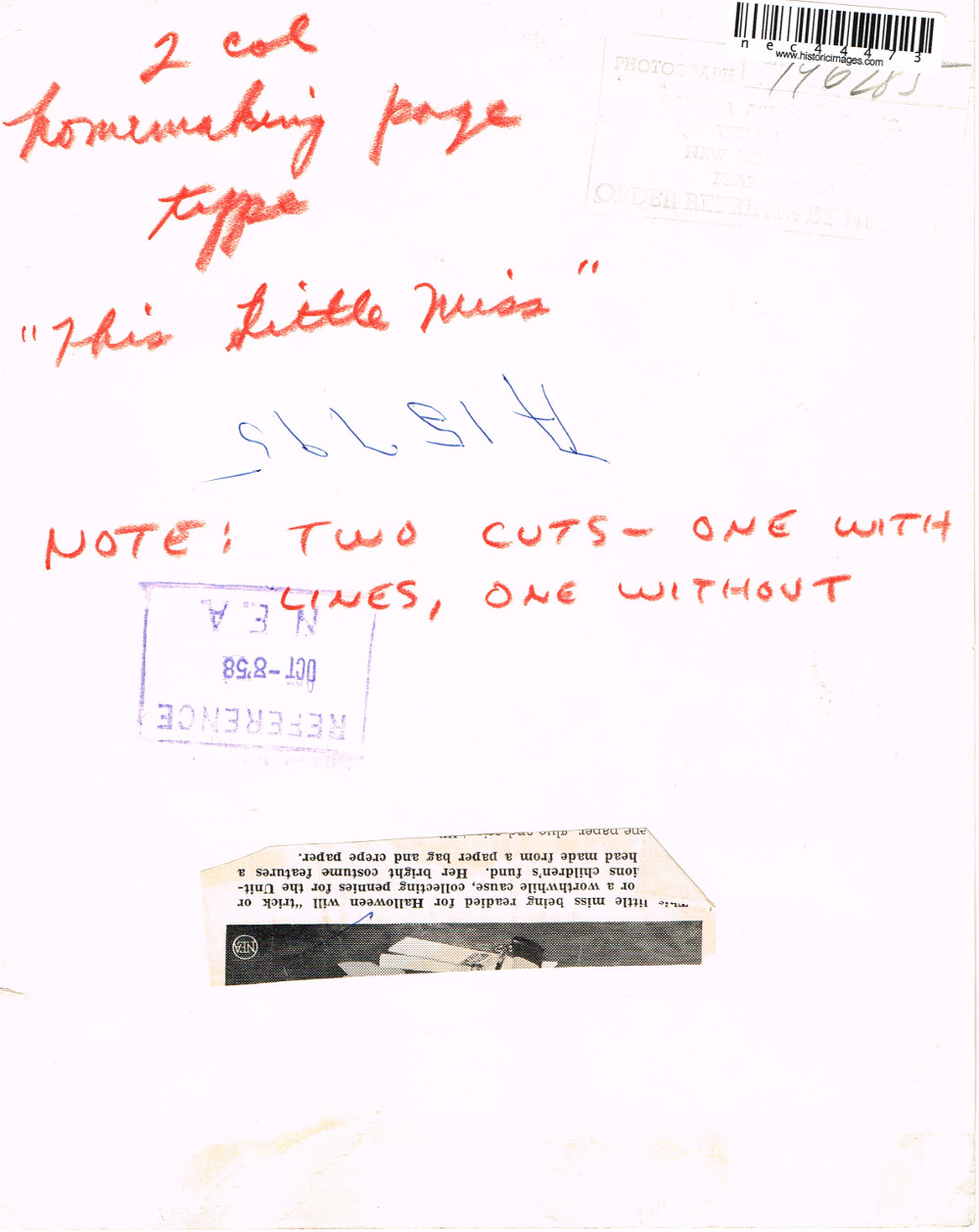 This little miss being readied for Halloween with "trick or treat" for a worthwhile cause, collecting pennies for the United Nations children's fund. Her bright costume features a lamb's head made from a paper bag and crepe paper.