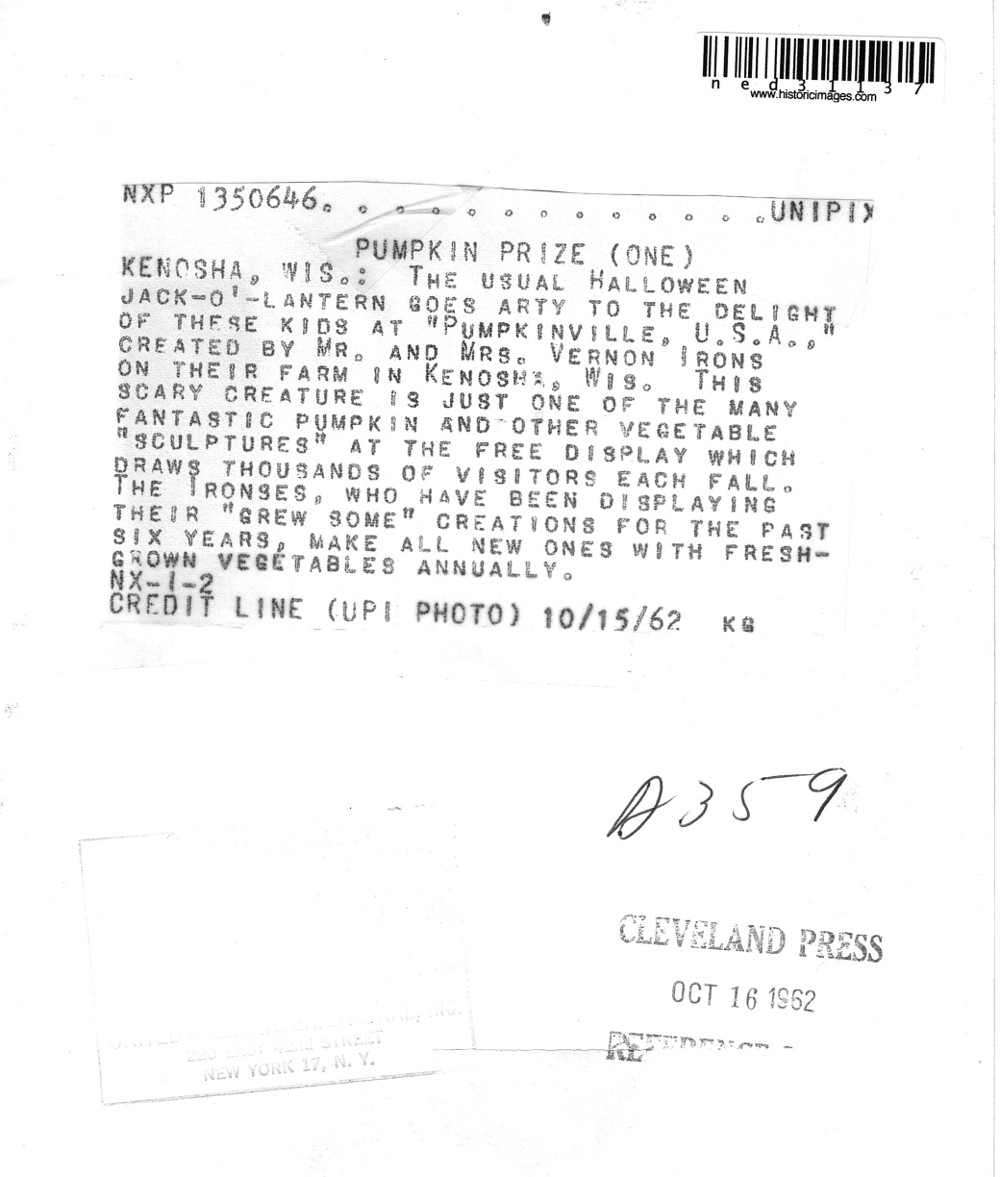 Halloween Press Photo: Pumpkin Prize 1962