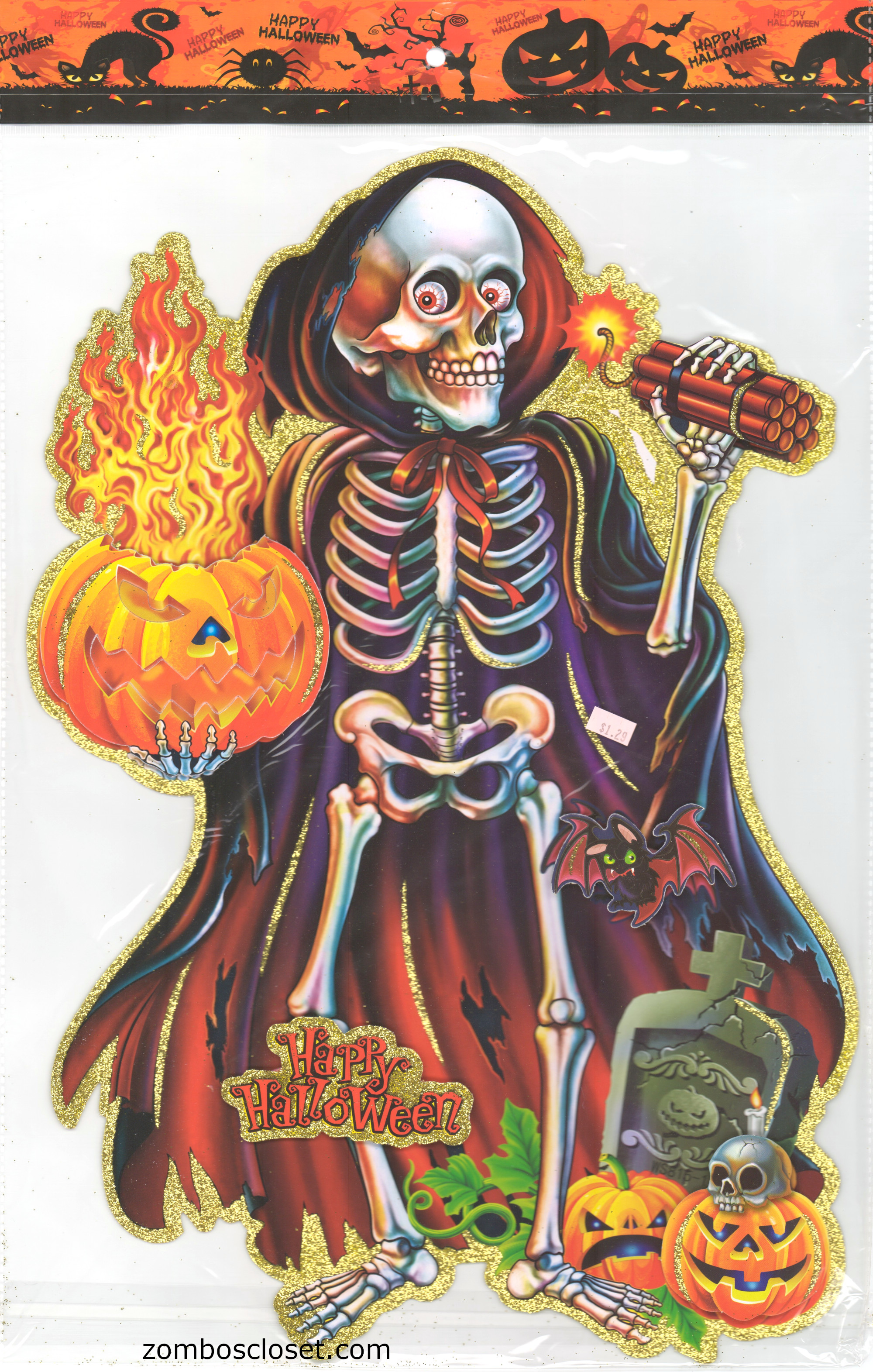 a skeleton with a bindle of dynamite i mean sure that is scary but seems a bit overkill to the point of bizzare