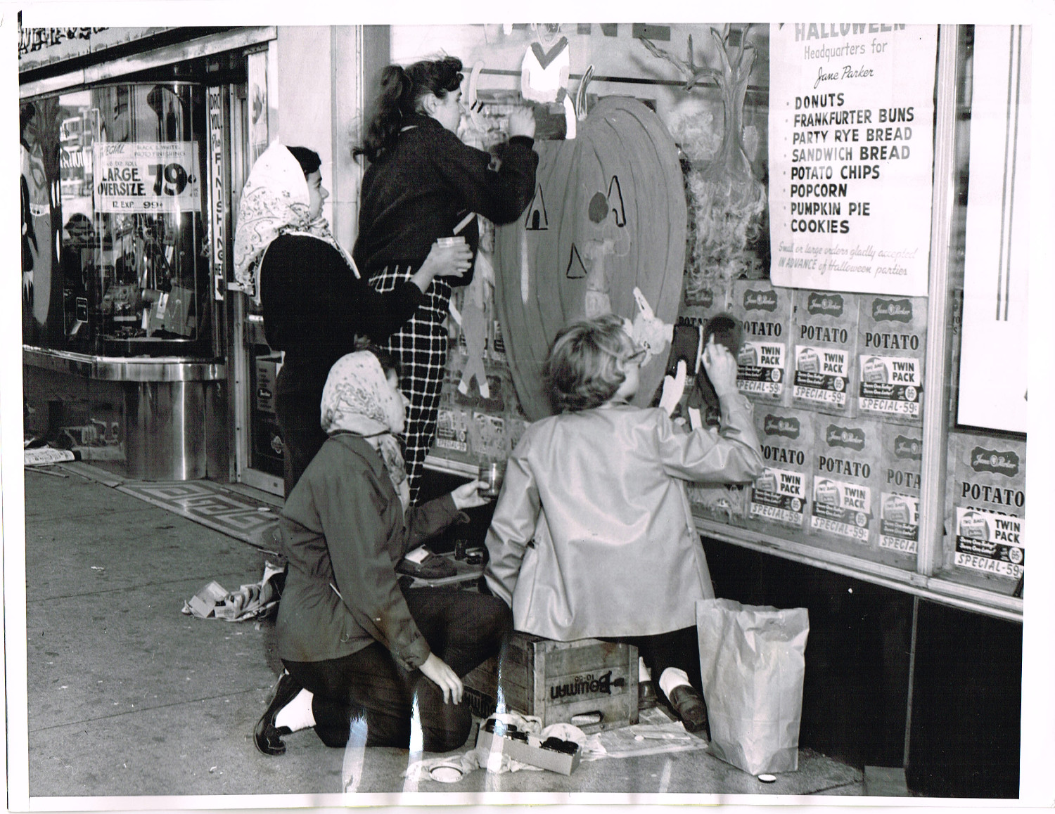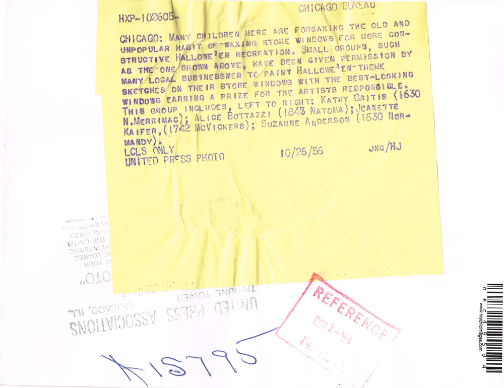 Here's a shot from 1956 showing store window painting for Halloween in Chicago. I remember seeing store windows painted up on Avenue U in Bensonhurst Brooklyn every October, when I was growing up. Funny the things you remember as a kid, but I noticed how the artistic talents on display grew worse over the years as students from the local high schools participated in the yearly contest. For the truly inspiring artwork, I always felt sad to see it washed away after the holiday.
