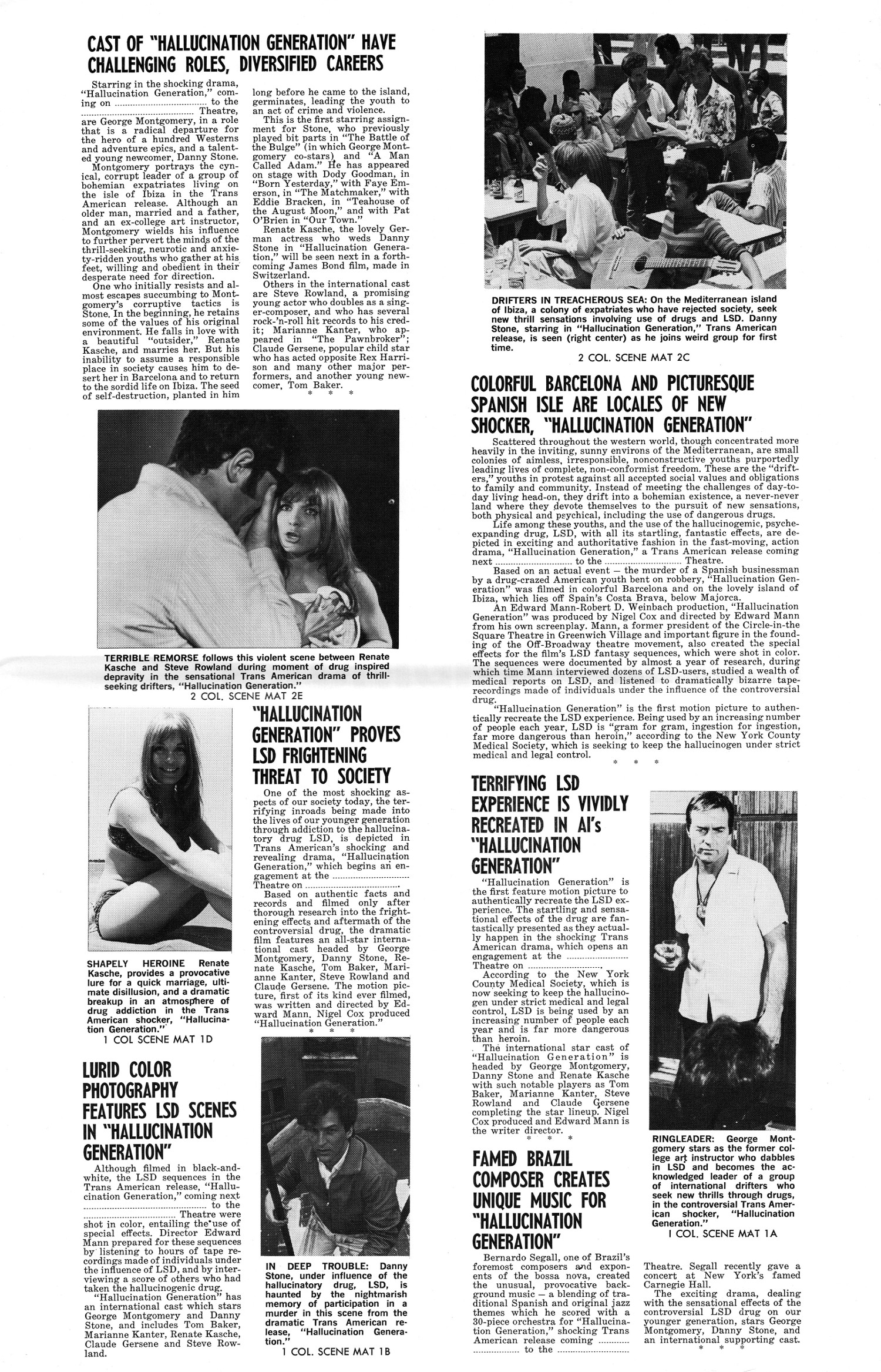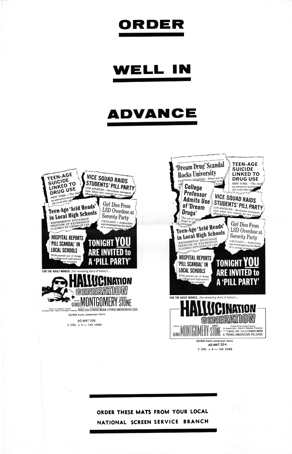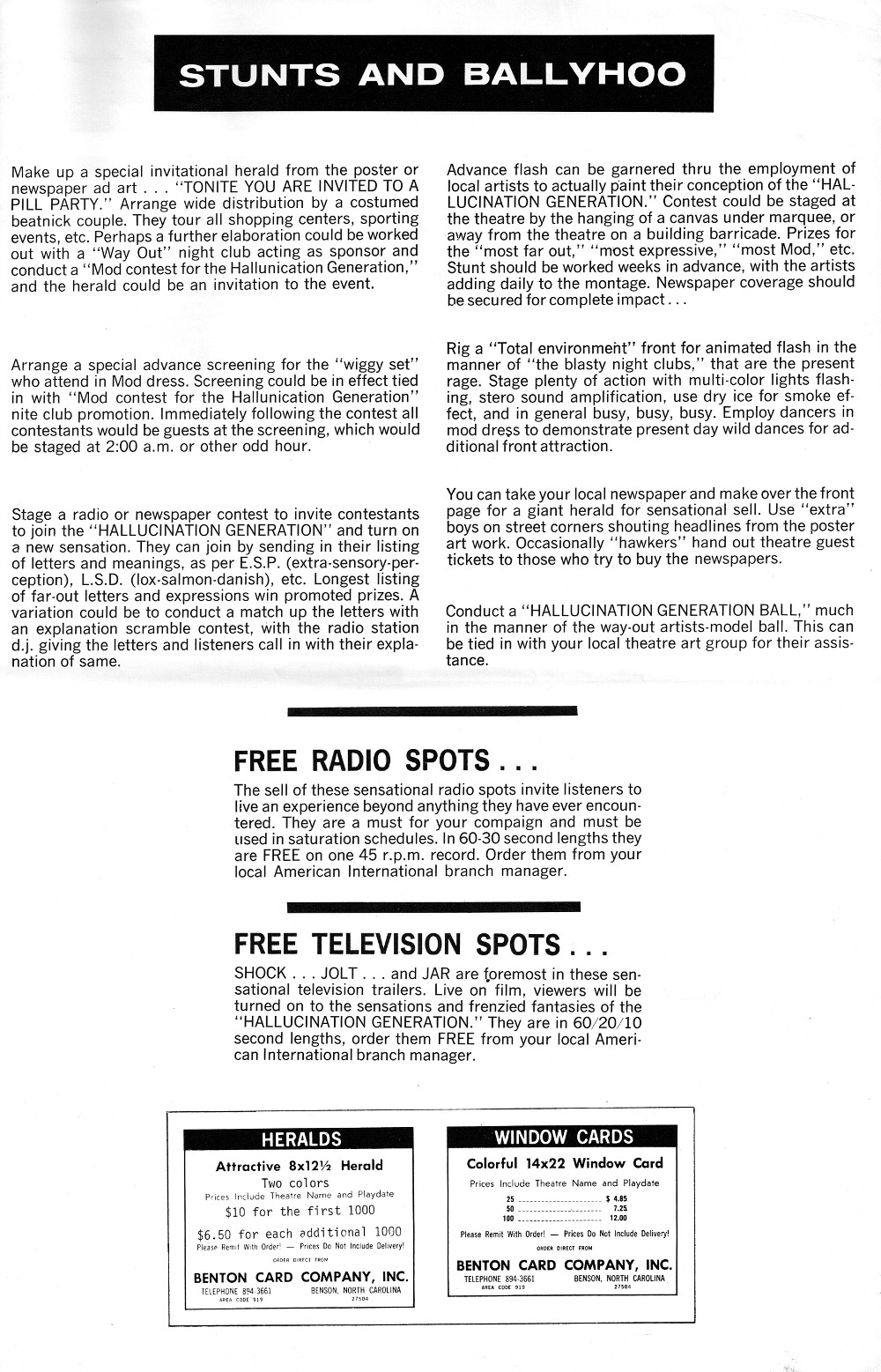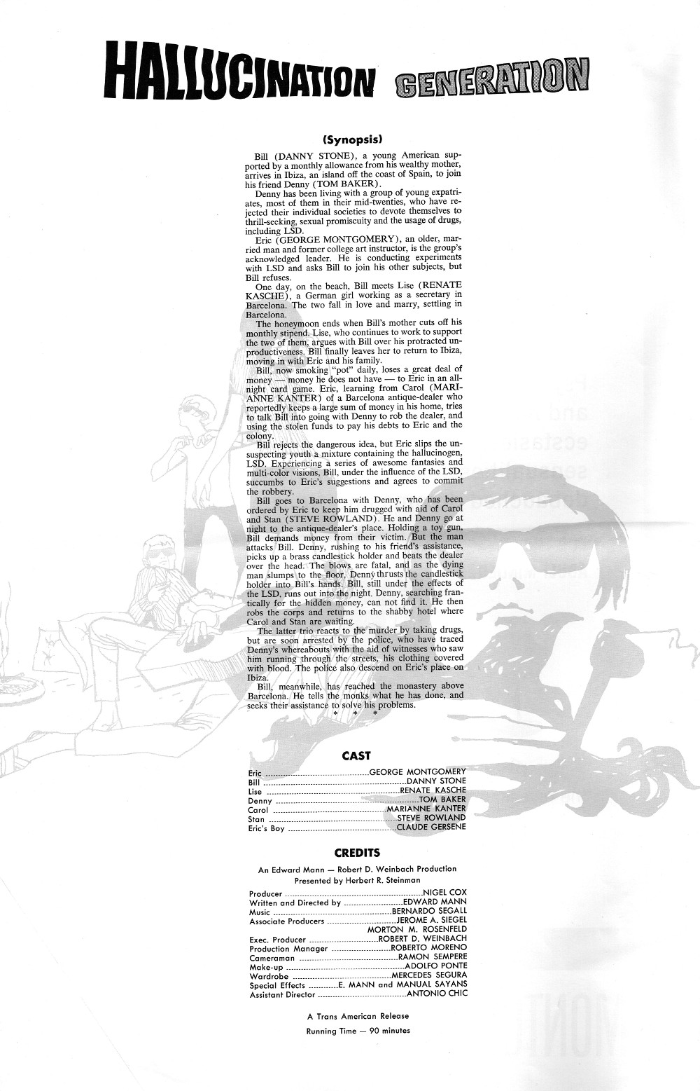 Need to see some exploitation cinema? Here you go, you counterculture Sicknik. LSD scenes are in color. Wow. (Comic reader version: Download Hallucination Generation Pressbook.)