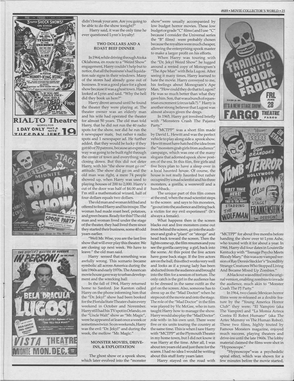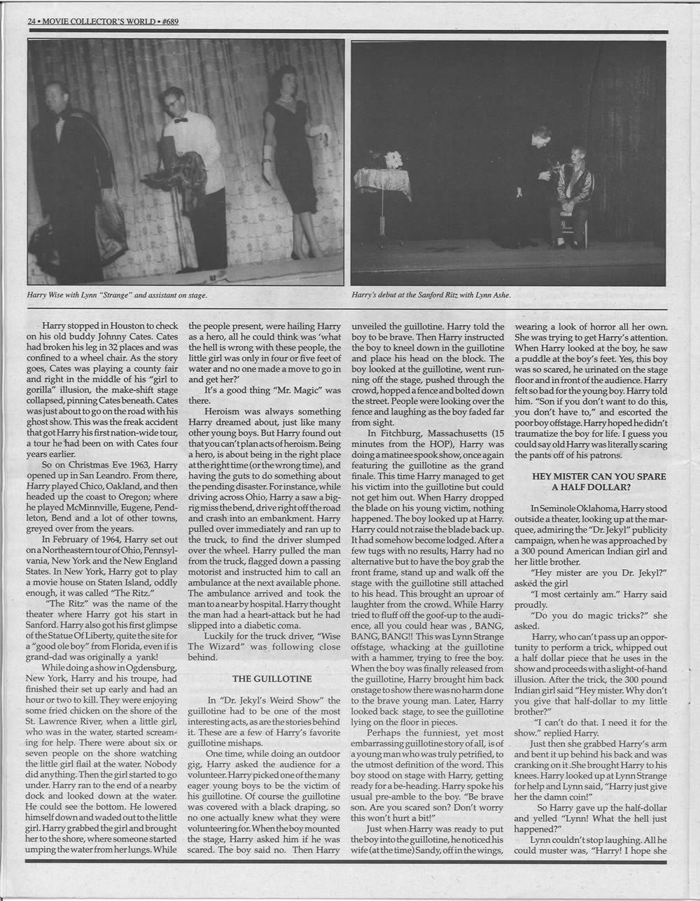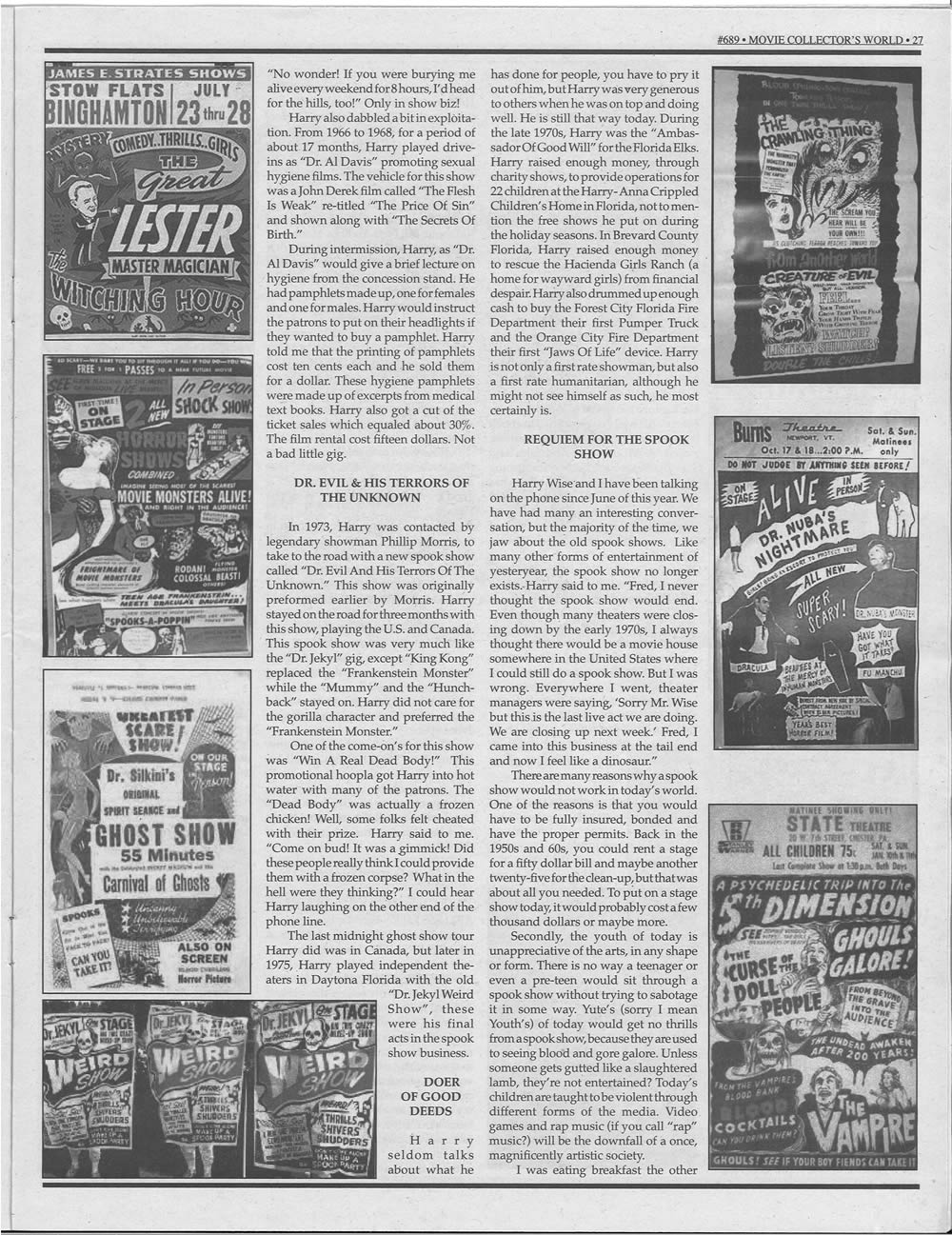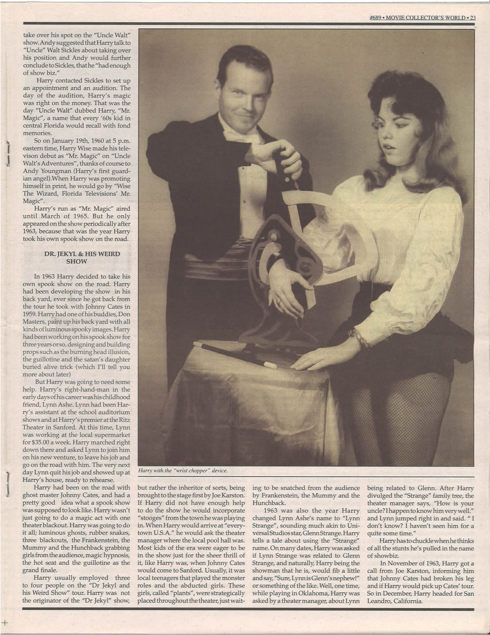 How to Collect a Monster: Harry Wise and the Lost Art Of Spook Shows Leave a Comment / Magazine Morgue / By JM Cozzoli With permission from Arena Publishing and Dr. Vollin, MD (aka Freddie Poe), here's How to Collect a Monster: The Birth of a Magician and the Tragedy of the Spook Show, from Movie Collector's World, issue 689, November 2005. Like this:Like Loading... Share this post Facebook Twitter Pinterest Linkedin