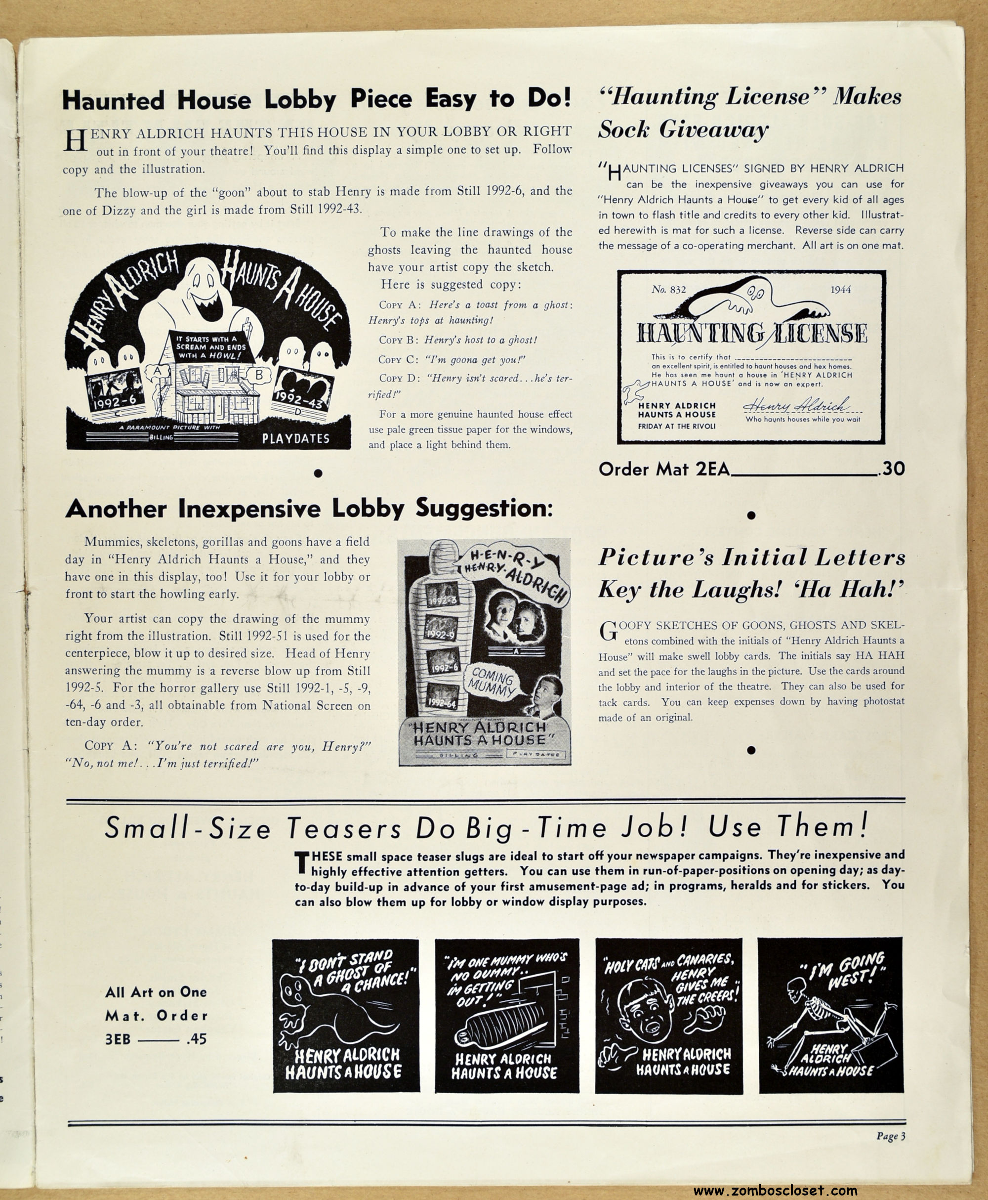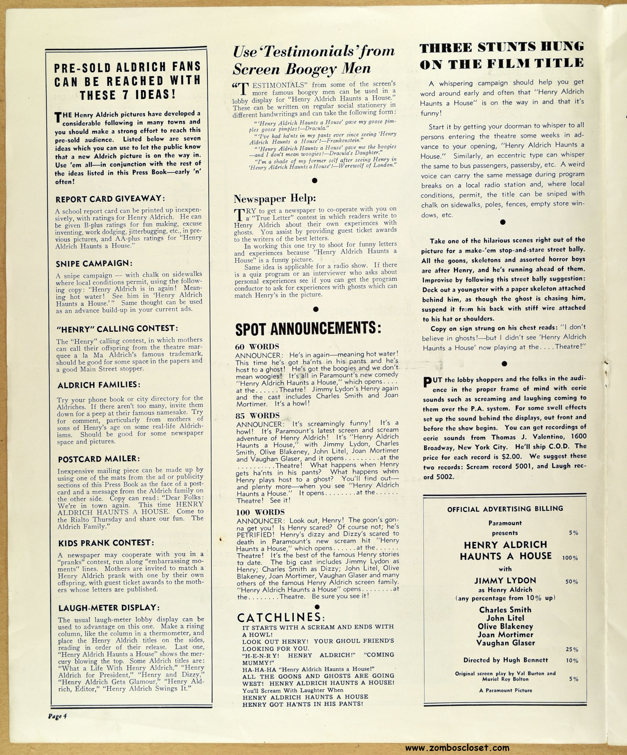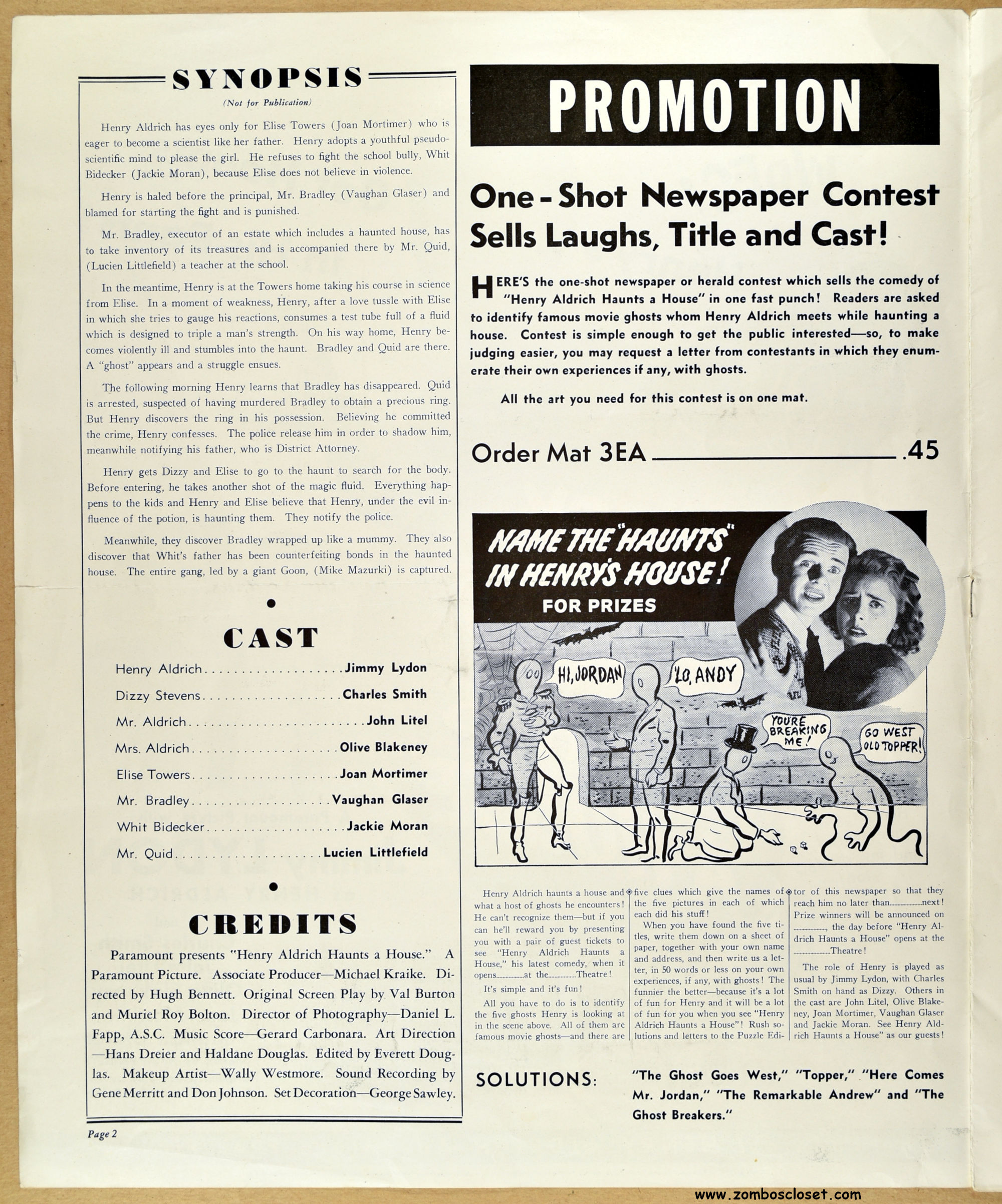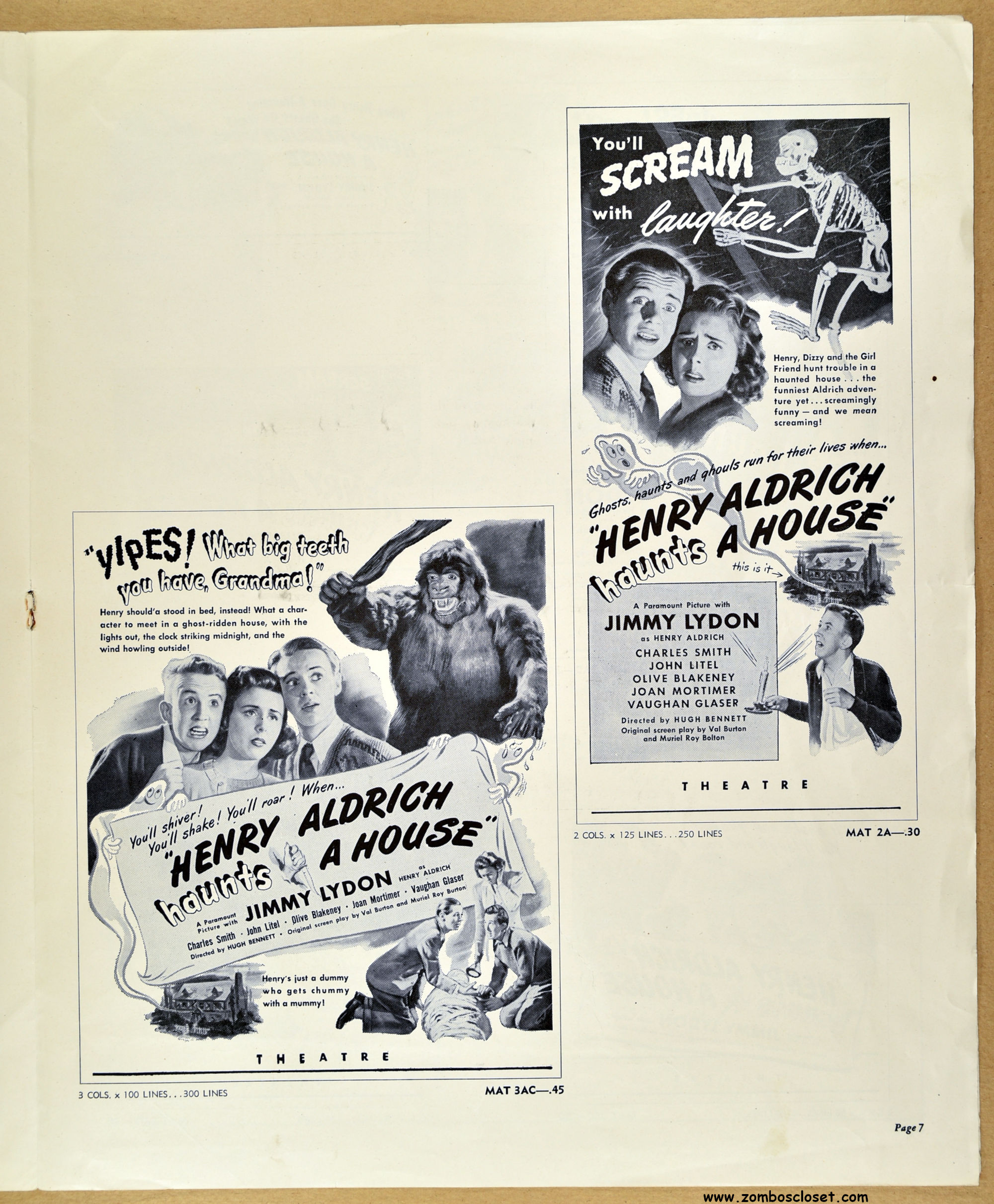 Comic book reader version: Download Henry Aldrich Haunts a House Pressbook
