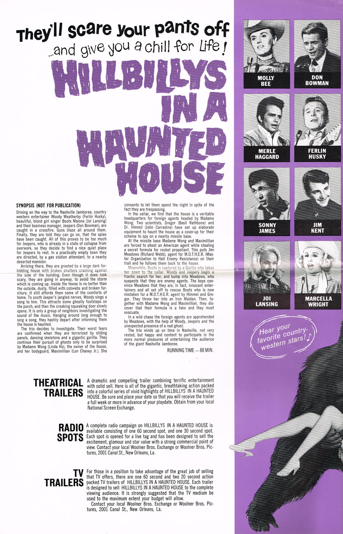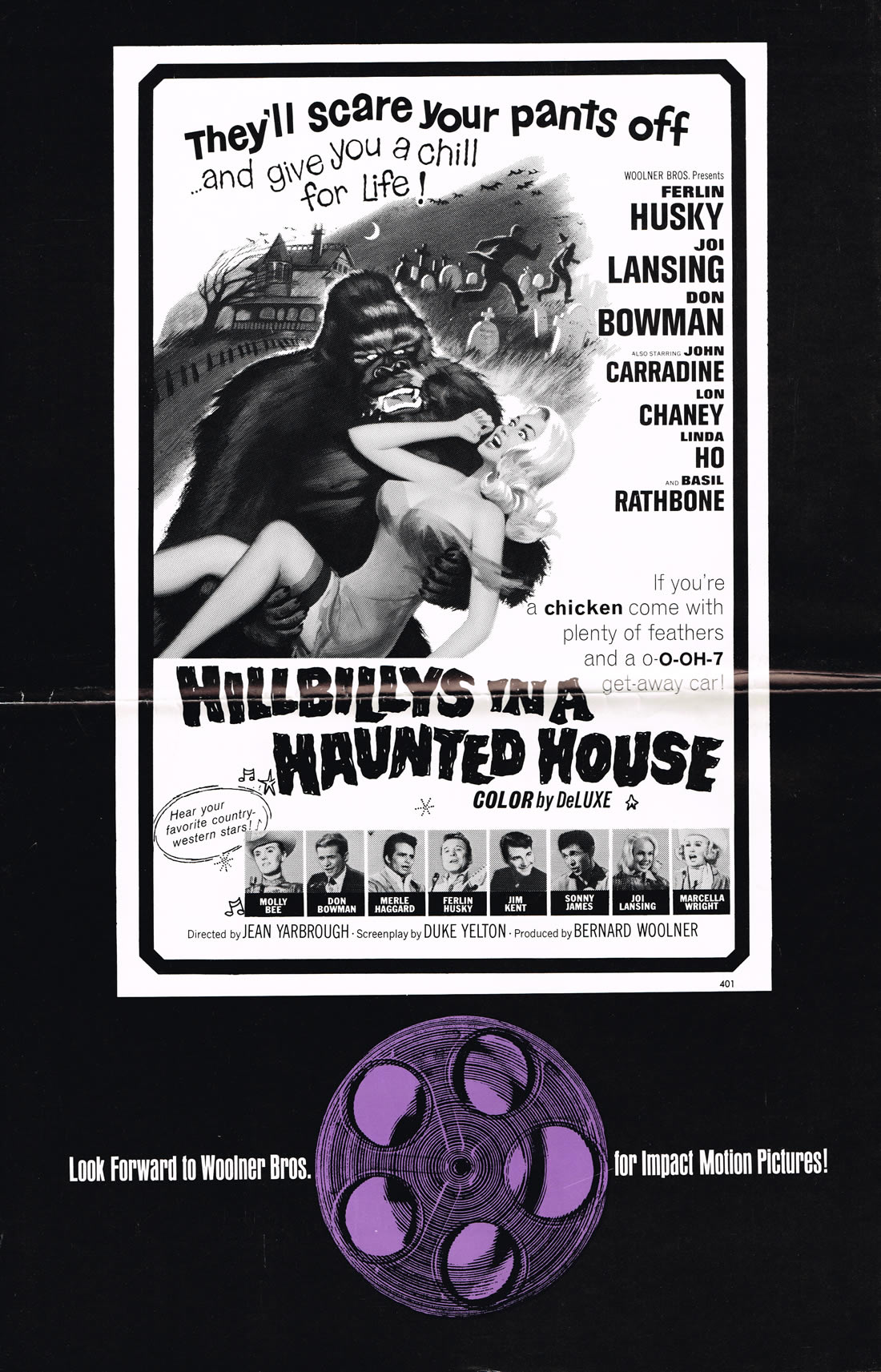 Apes and blonds are an oddity of plot dynamics in horror movies in the 1940s through 1960s. I have no expert opinion to give as to why: just accept it. Hillbillys in a Haunted House (1967) also has John Carradine, Basil Rathbone, Lon Chaney Jr., and music. Let the mirth begin. This is one of those movies you just itch like crazy to see. I have no explanation for that, either.