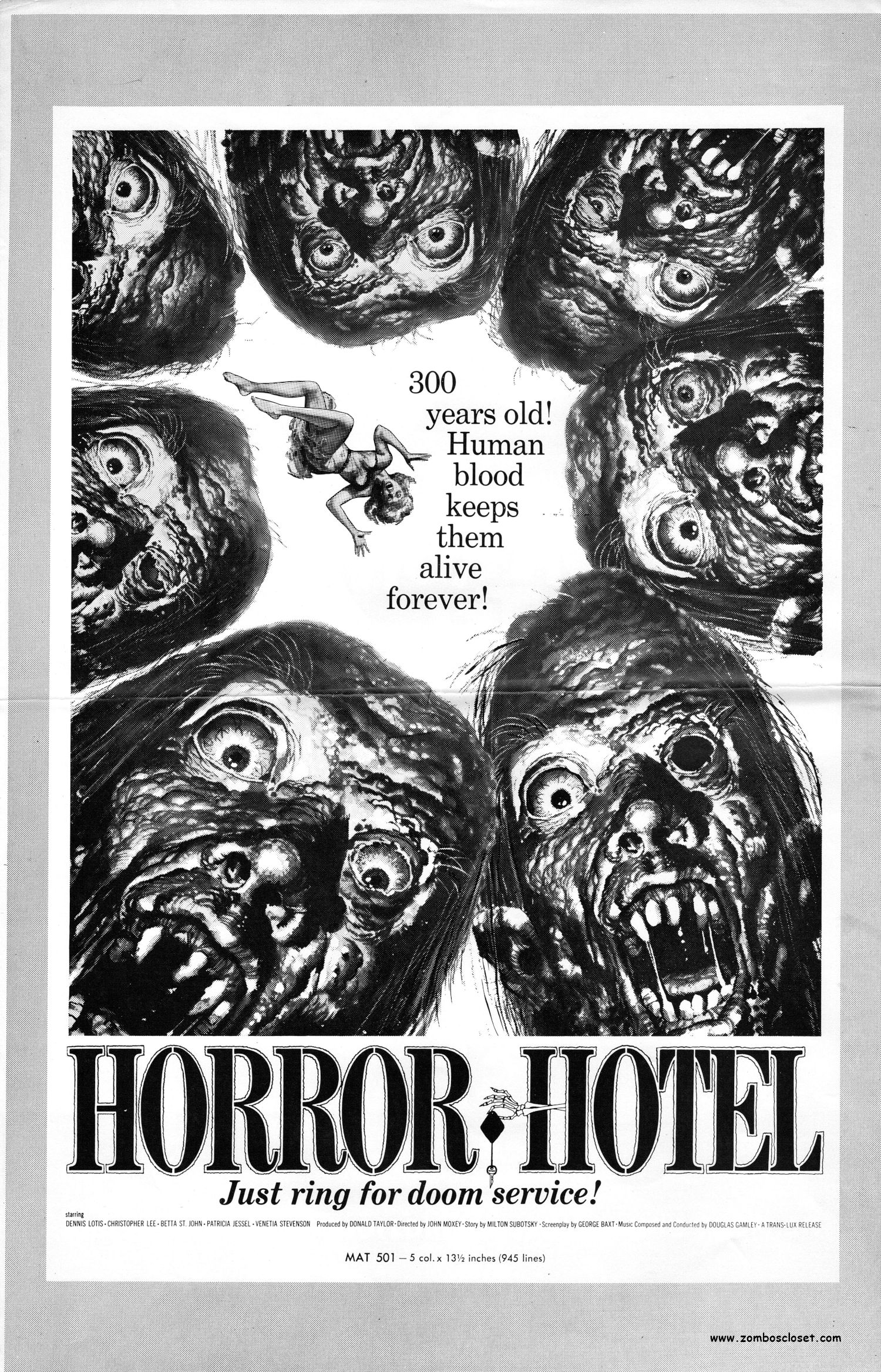The City of the Dead (although I prefer the more sensational U.S. title, Horror Hotel) was a staple for horror television back in the black and white days. Milton Subotsky rewrote the script and produced it, so this pretty much makes it the first Amicus production. And a good one it is, too. The poster art is killer.
