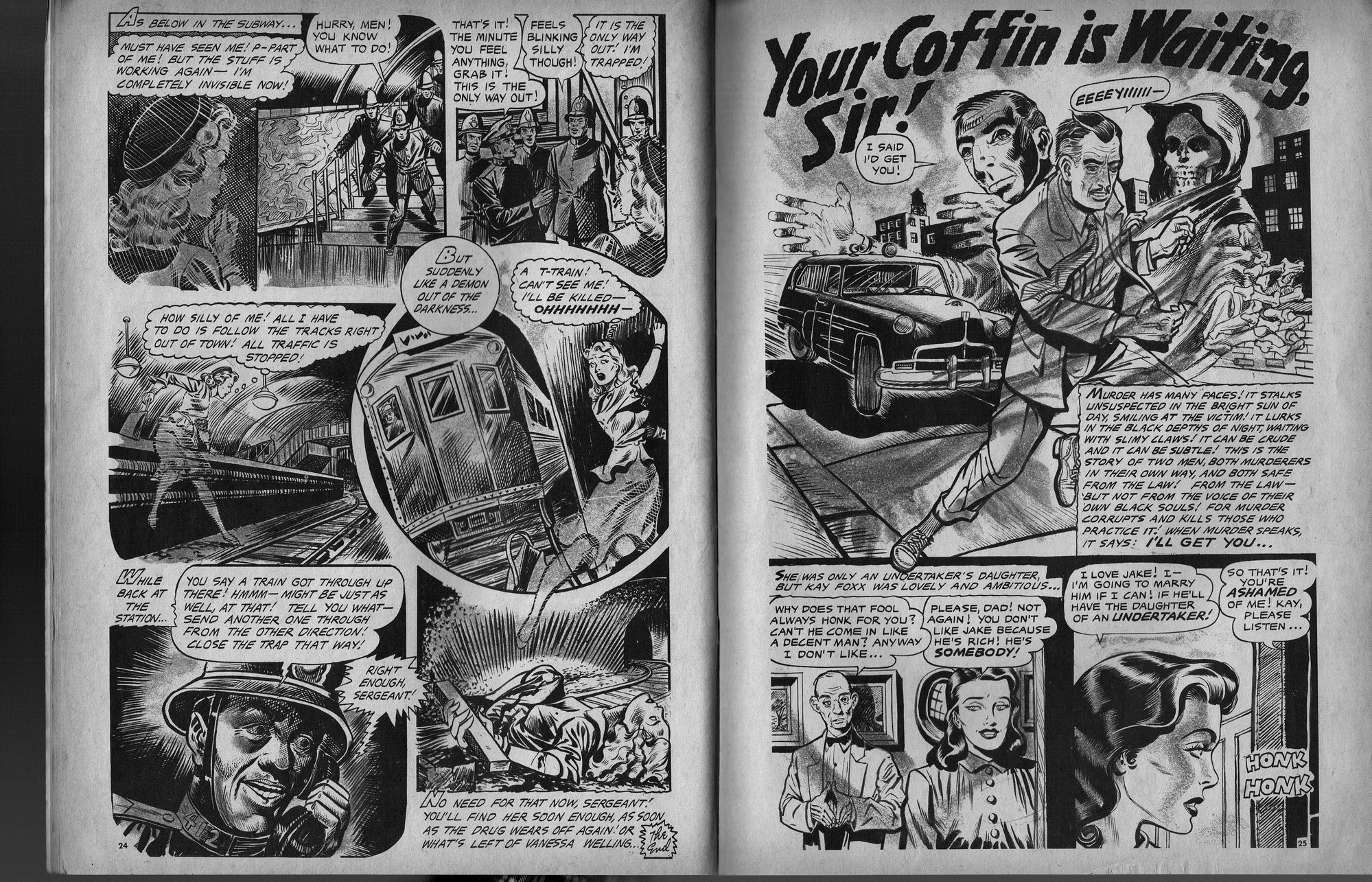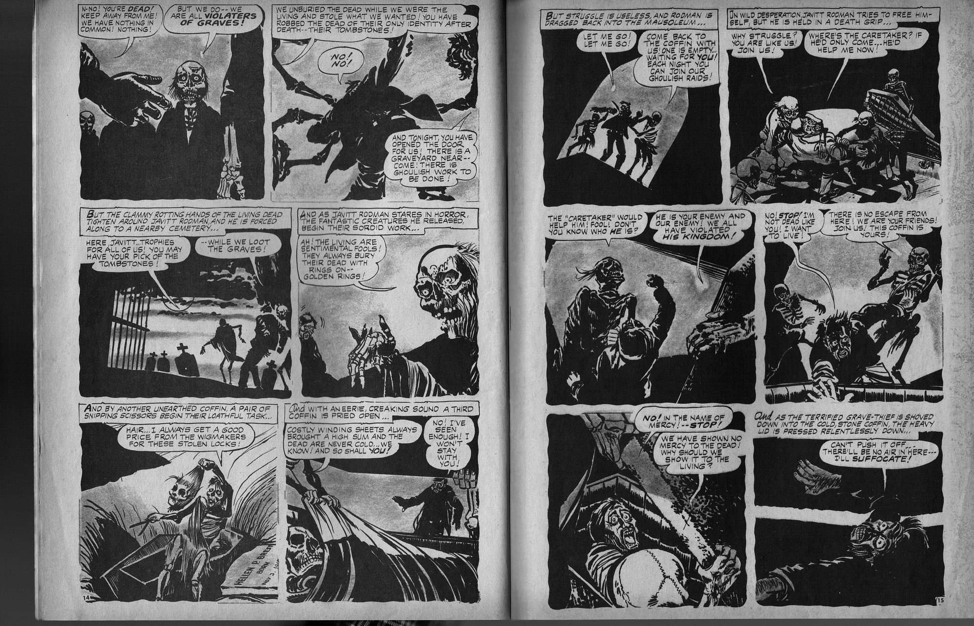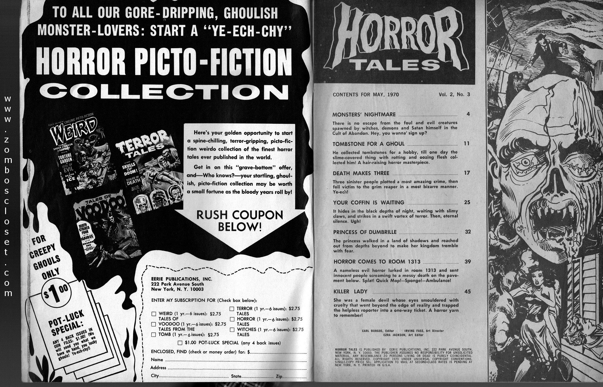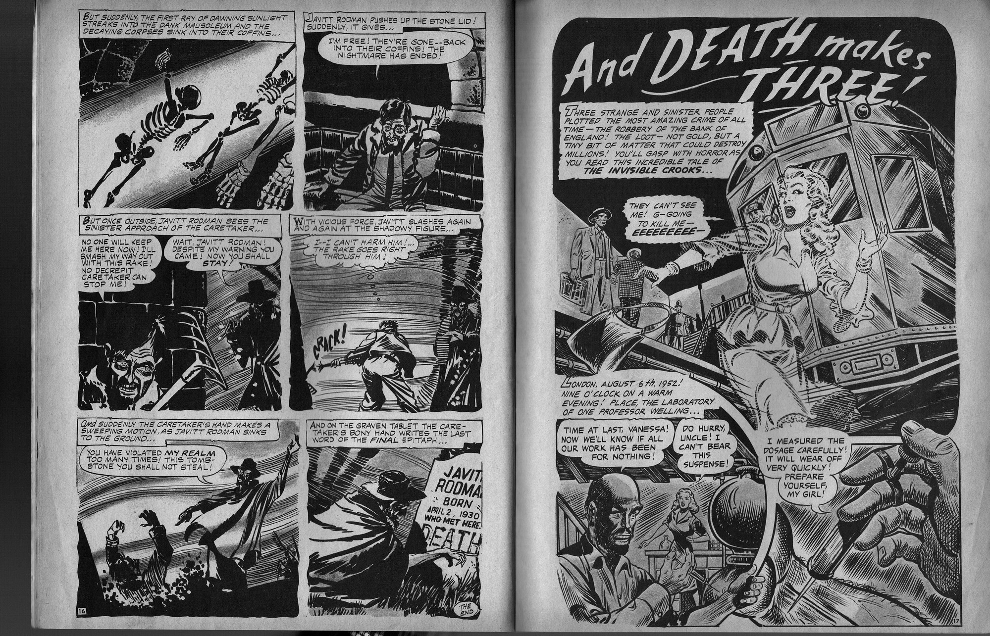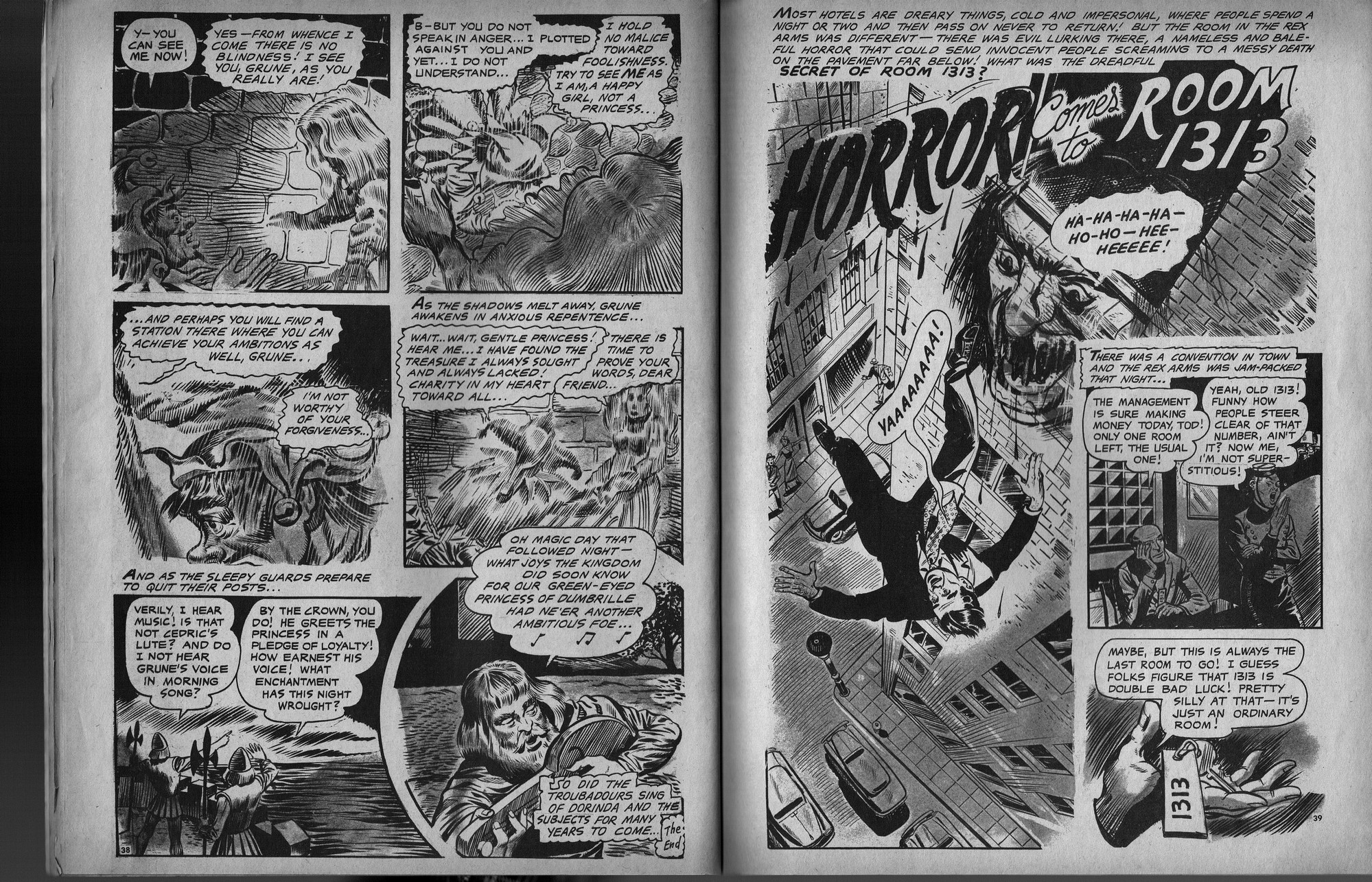 Lots of gruesome terror in this issue of Horror Tales, beginning with those vile monsters torturing their poor victim. Ghouls running amok, rail-kill hits the tracks, and horror comes to room 1313, all drawn with verve and nerve to bring a chill to your ebookish ways. Just try to keep your head, unlike the poor fool stalked by the lady killer in the last story.