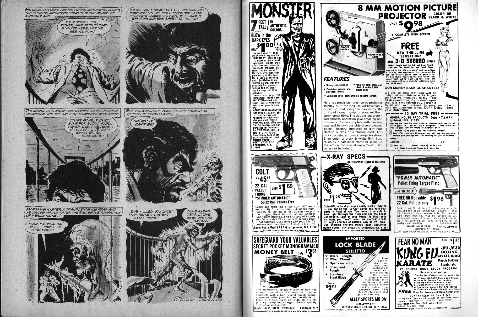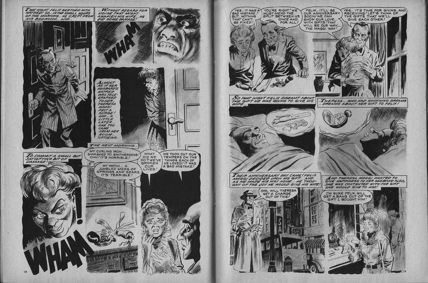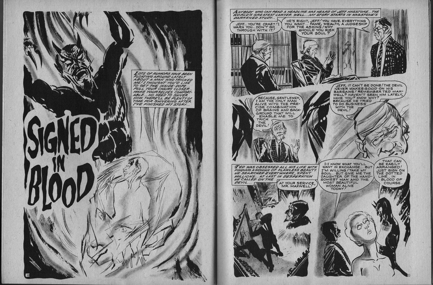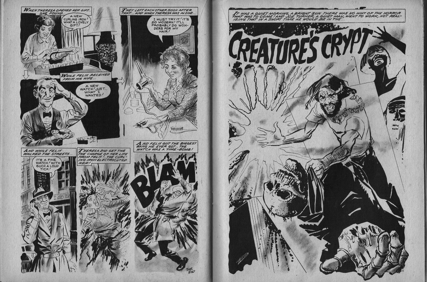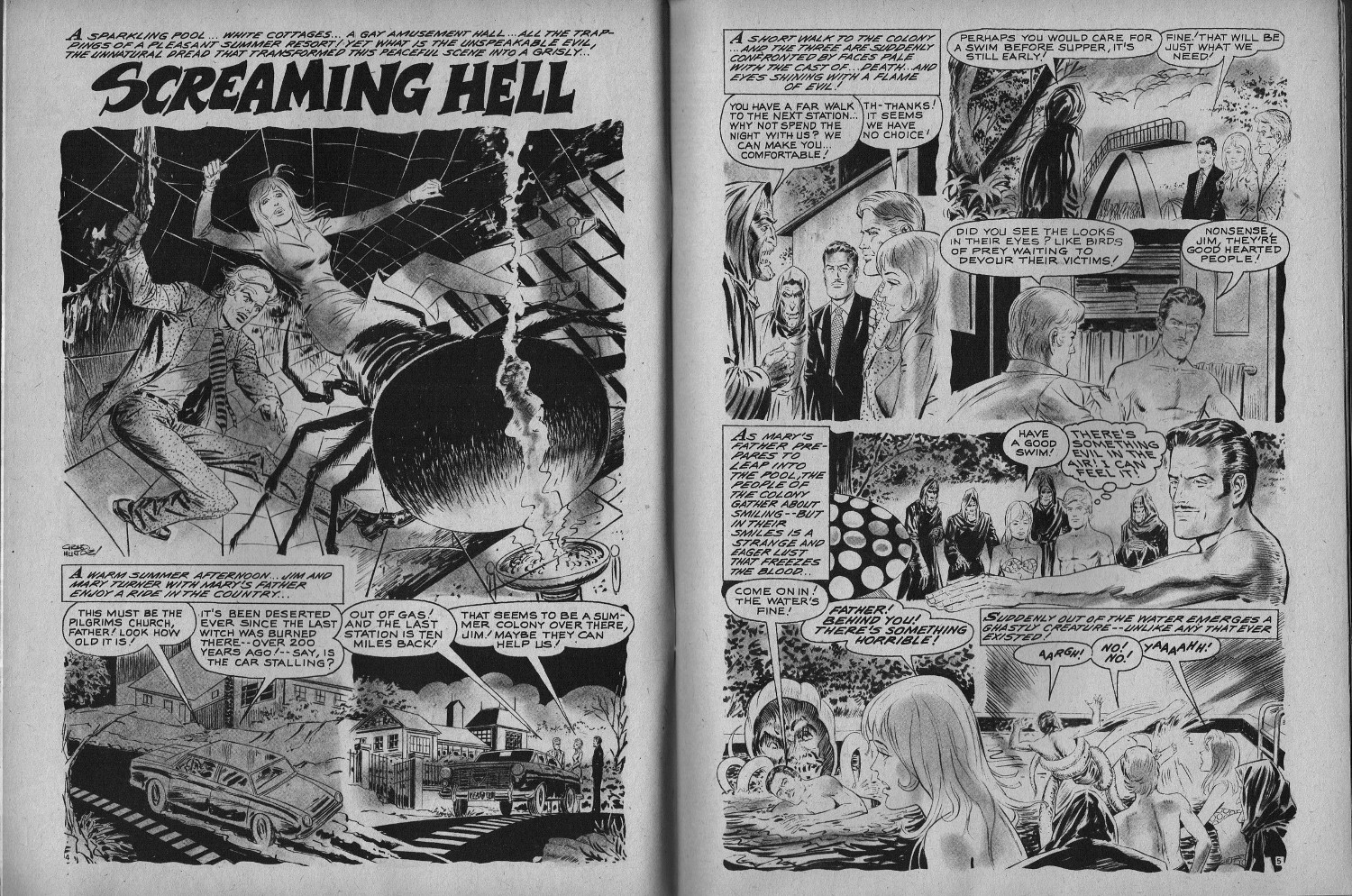 More horror as witches run a resort, dead and living mix into mayhem, and bad people get bad endings. And you think you've had bad days. This cover sums it up best. (Here's the comic reader version: Download Horror Tales v7-1)