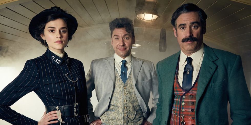 In the premiere episode, The Maggie’s Redress, a nun is murdered. A witness believes the murderer to be a ghost. Scotland Yard is incredulous. The mystery begins and the sensational newspaper headlines attract both Doyle (Stephen Mangan) and Houdini (Michael Weston) to investigate. Each has his own agenda for doing so. Doyle is a strong believer and supporter in supernatural phenomena and spiritualism, Houdini isn’t. They meet at Scotland Yard but the police want nothing to do with them after Doyle’s fictional detective makes coppers appear amateurish, and after Houdini’s escapes from British jail cells makes those coppers look incompetent. As a devious compromise to appease Doyle and Houdini, Constable Stratton is assigned to chaperon them while making sure they, and especially her, do not do any real detective work. When she enters the room, Houdini asks her to get him a cup of coffee. Typical behavior in the age before women’s lib.