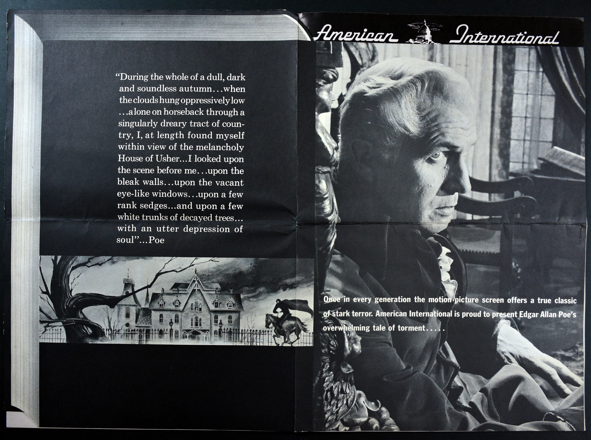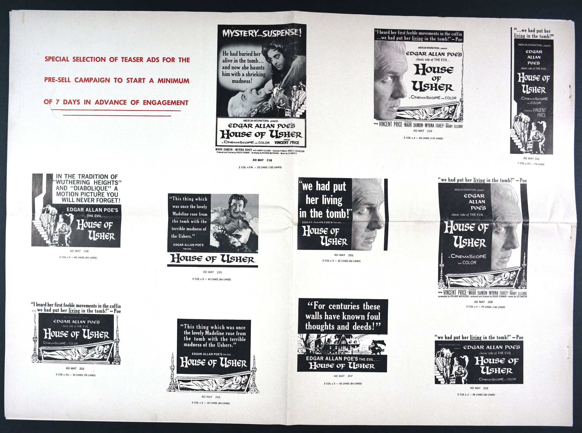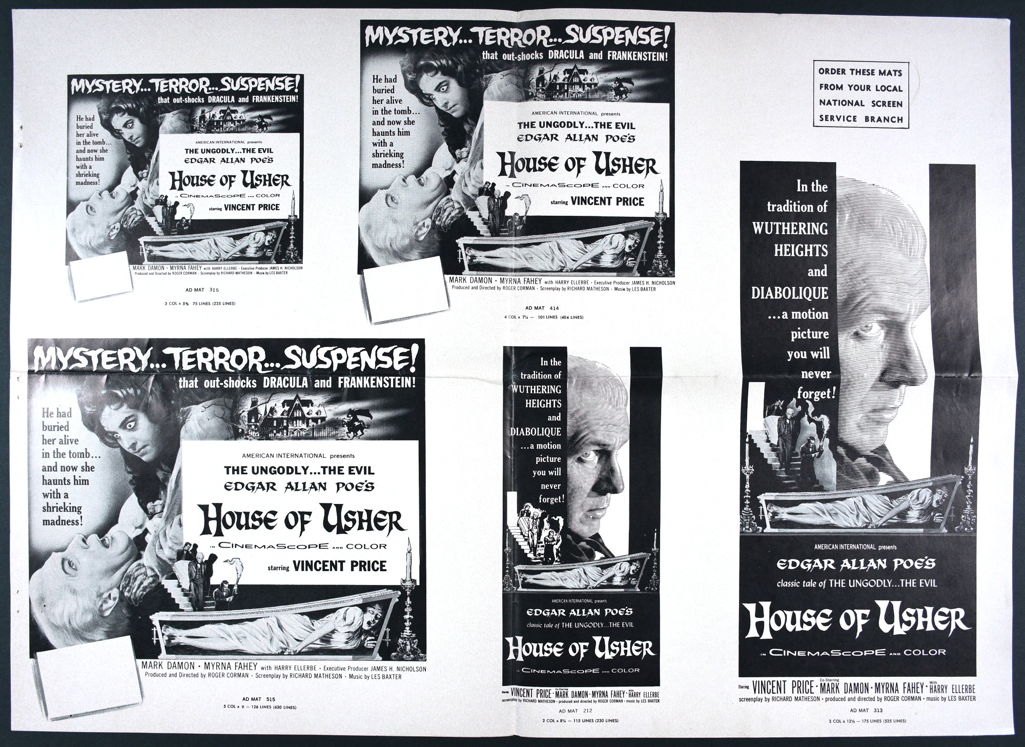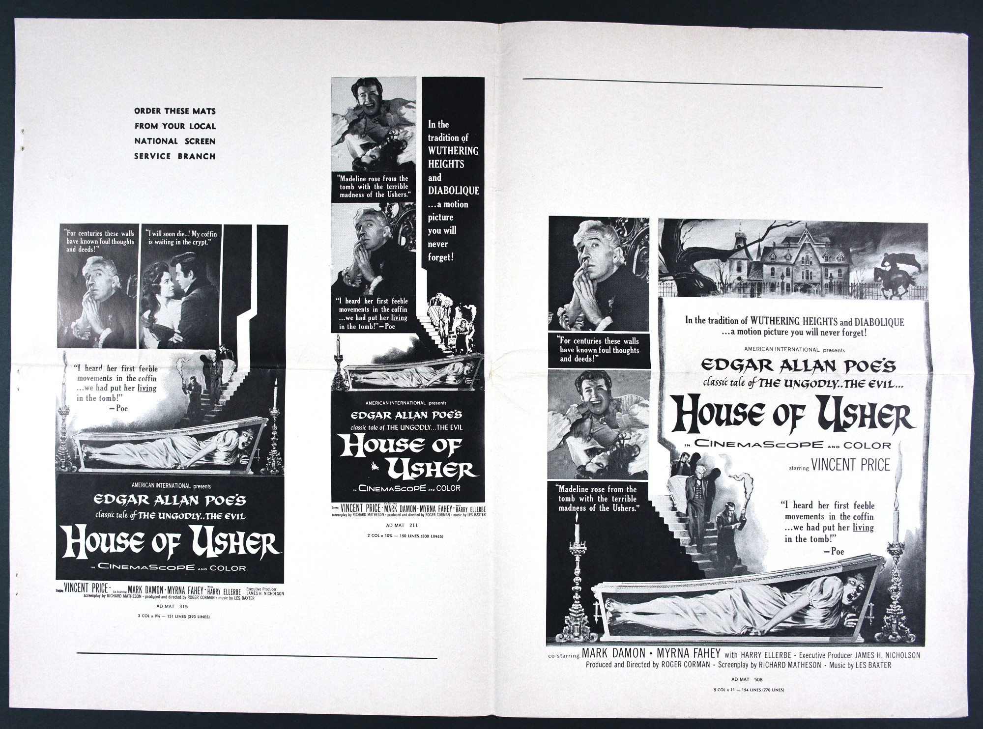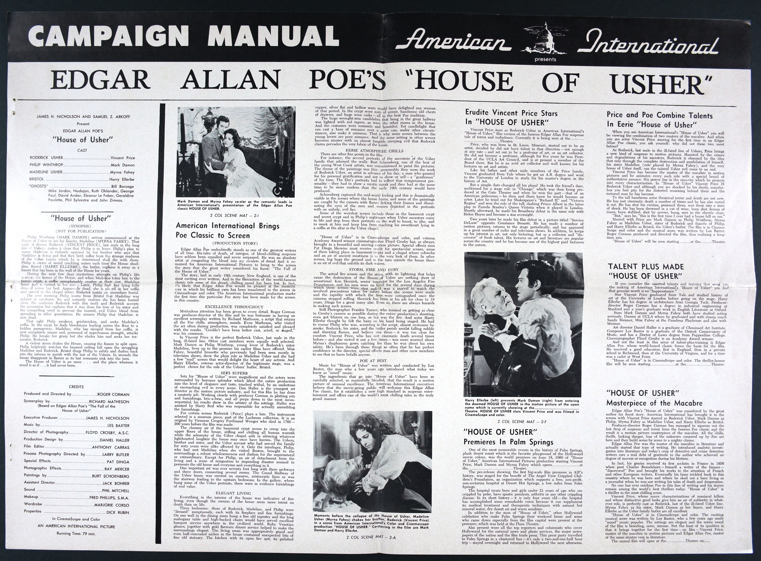 American International's over-sized pressbook for House of Usher sells the Price, Poe, and terror quite well. And! There's a coloring page! What better way to promote horror than with a coloring page and crayons! Sadly, they didn't make the poster art the coloring page. Pity. Try getting those flesh tones right on the screaming woman in the coffin. Here's the comic book reader version: Download House of Usher Pressbook. Tattered gown white and morbid crimson would be hard to find in the crayon box, too.