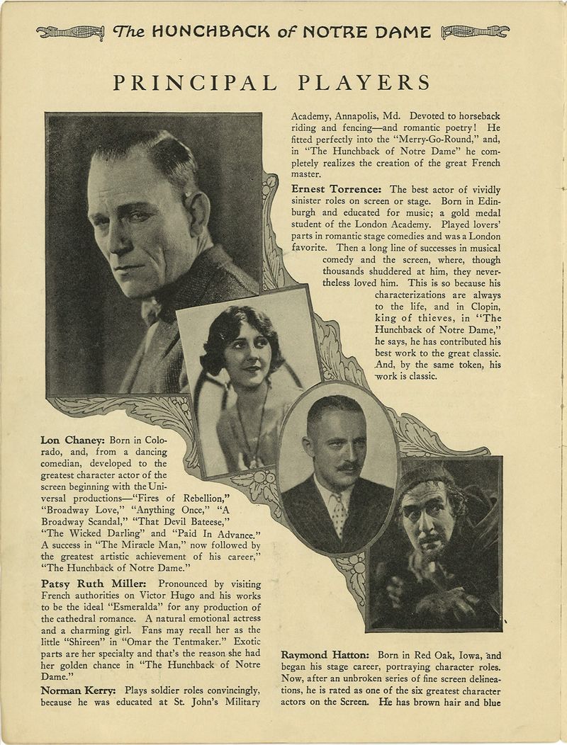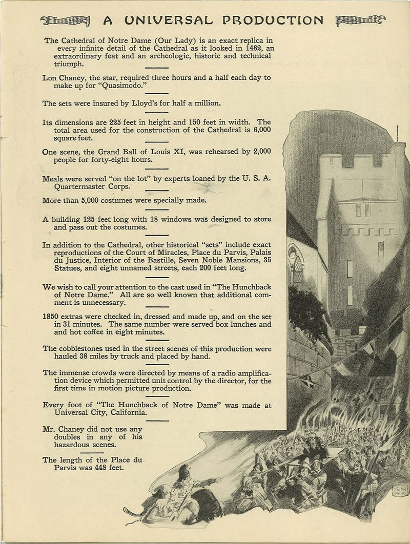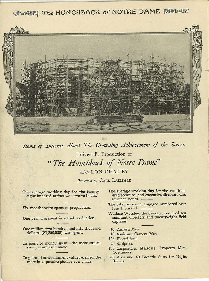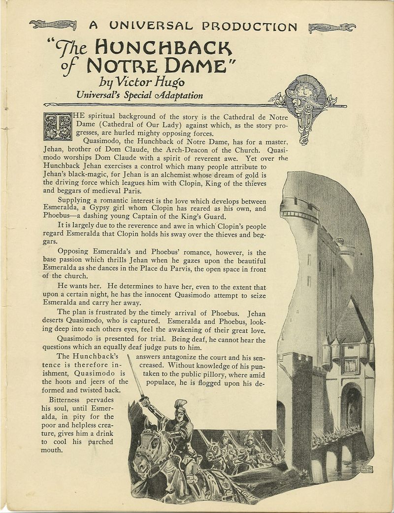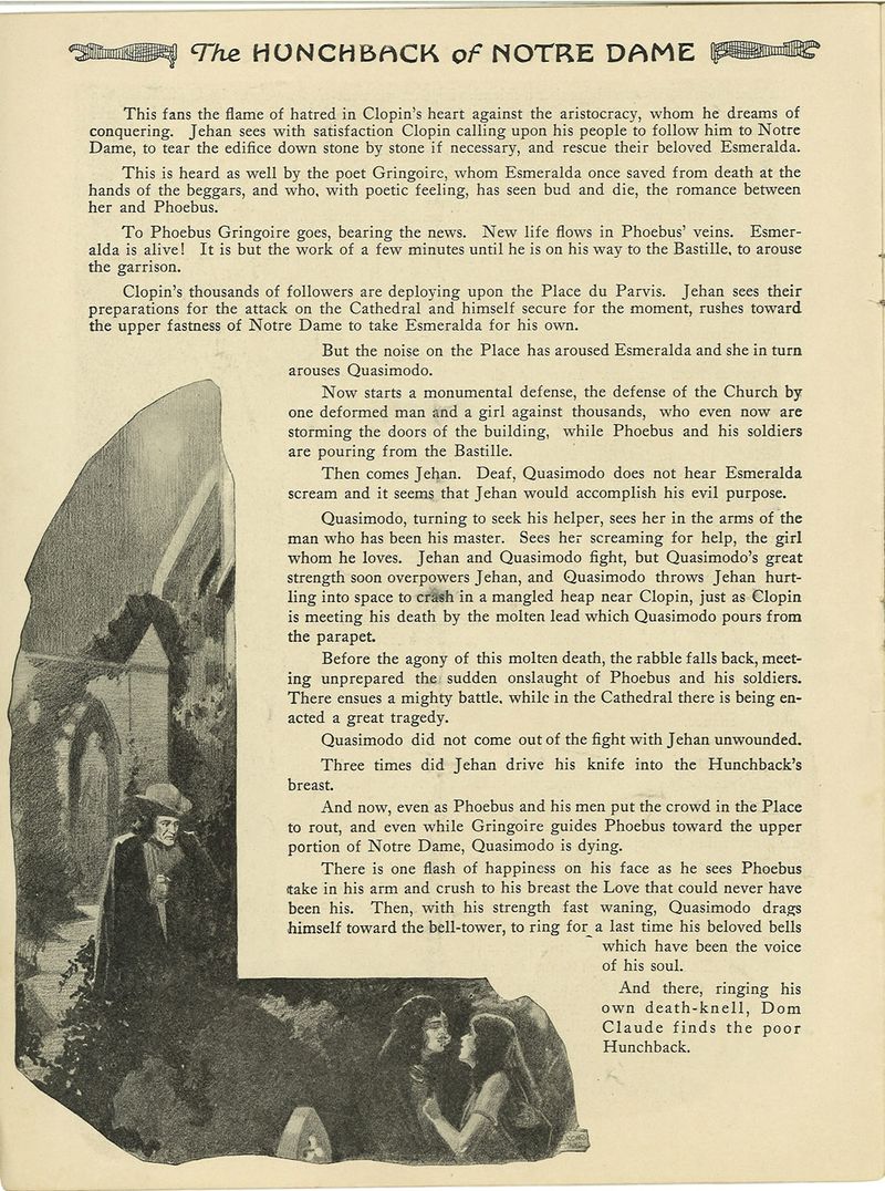 My eyes popped out when I saw this 1923 souvenir program for The Hunchback of Notre Dame in Professor Kinema’s archives. After I put them back in so I could see better, I knew I had to share these fantastic 18 pages of movie history. And you don’t even need to pay the 25¢ cover charge!