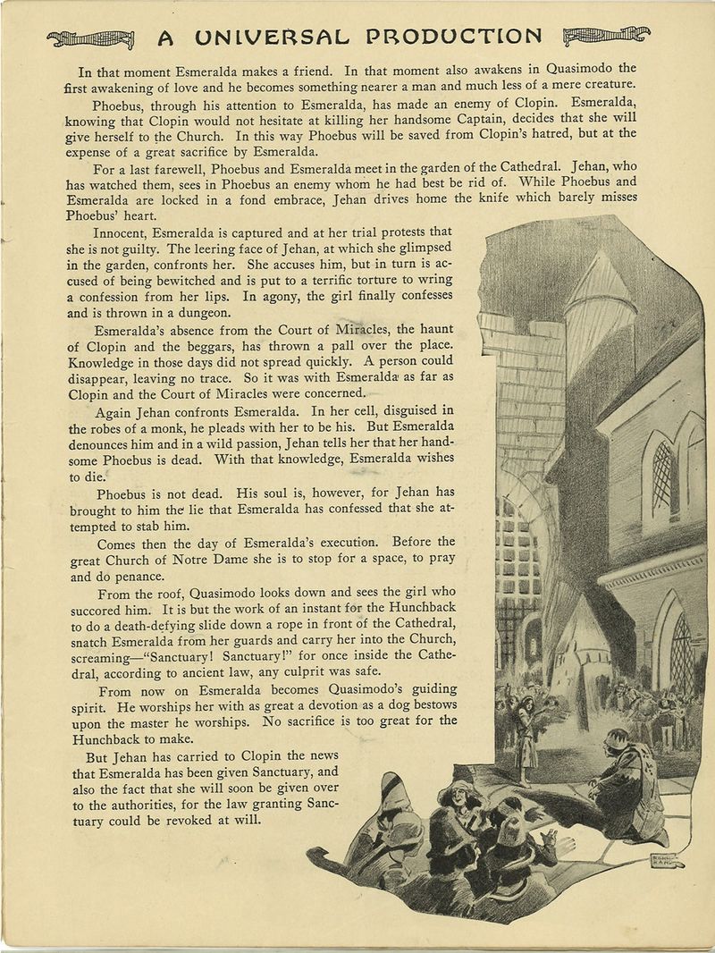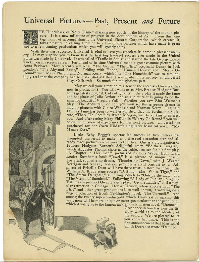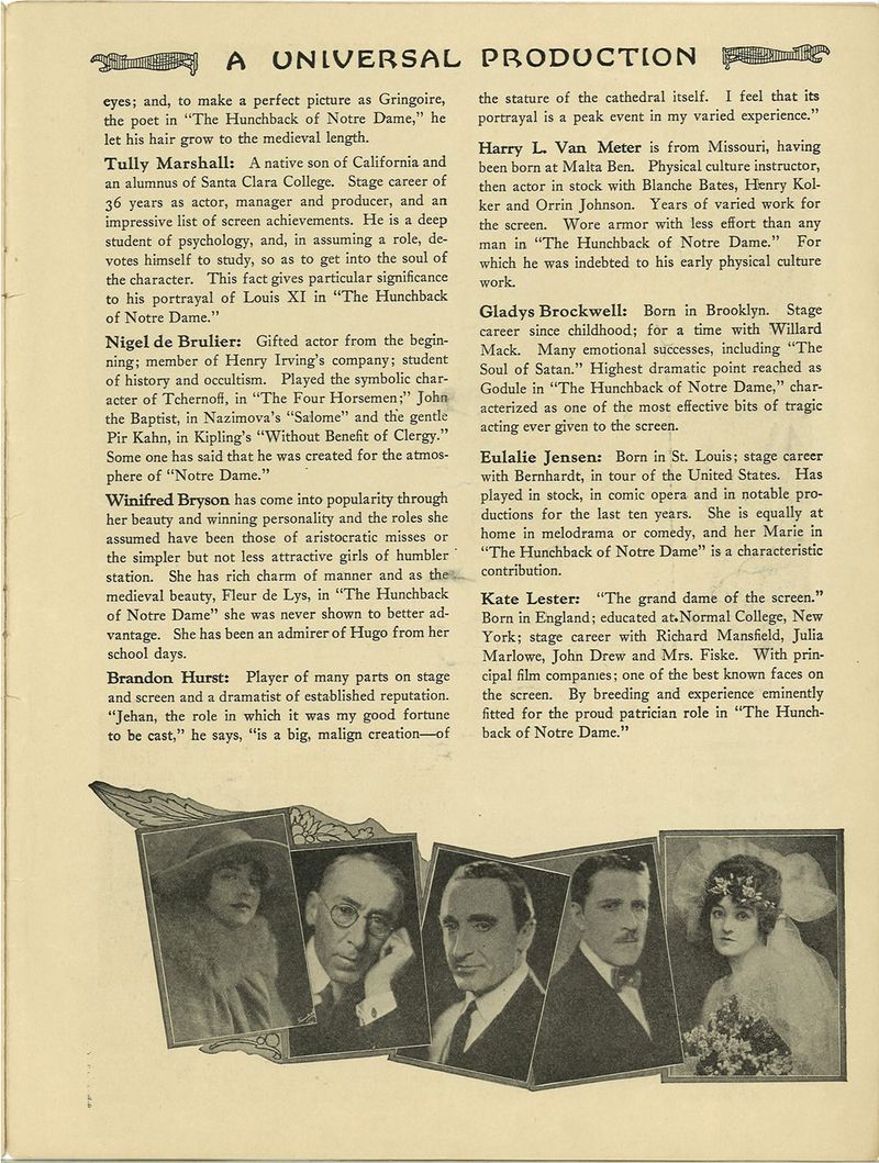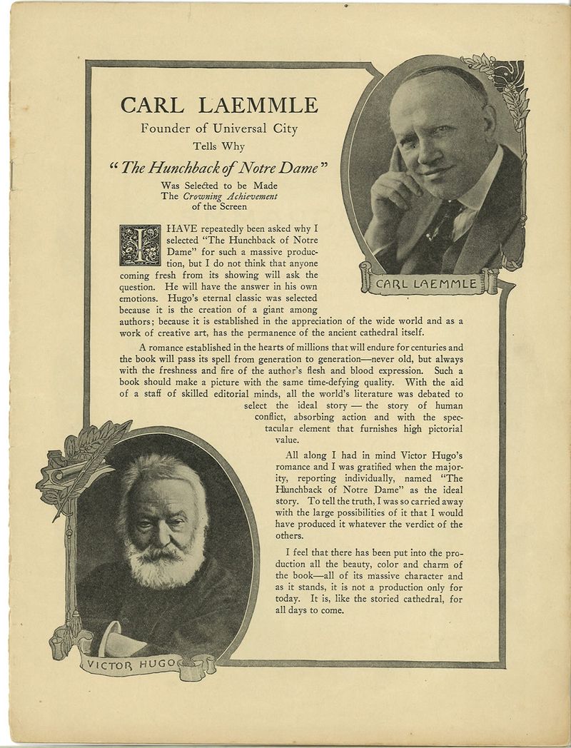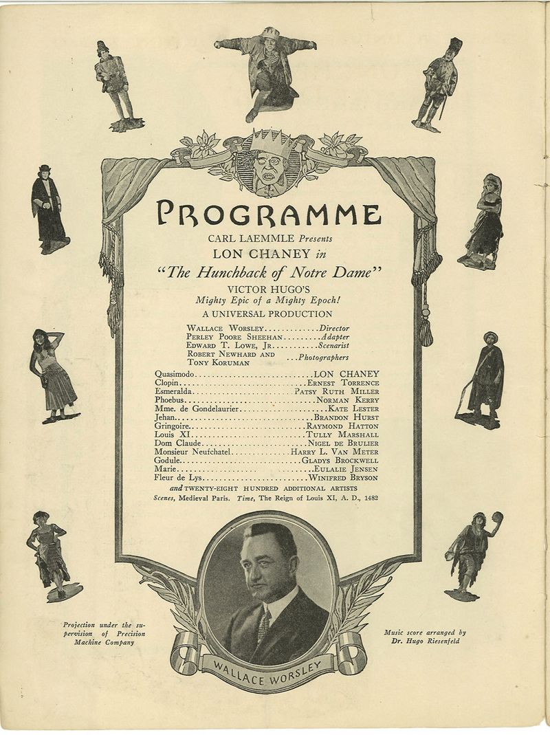 My eyes popped out when I saw this 1923 souvenir program for The Hunchback of Notre Dame in Professor Kinema’s archives. After I put them back in so I could see better, I knew I had to share these fantastic 18 pages of movie history. And you don’t even need to pay the 25¢ cover charge!