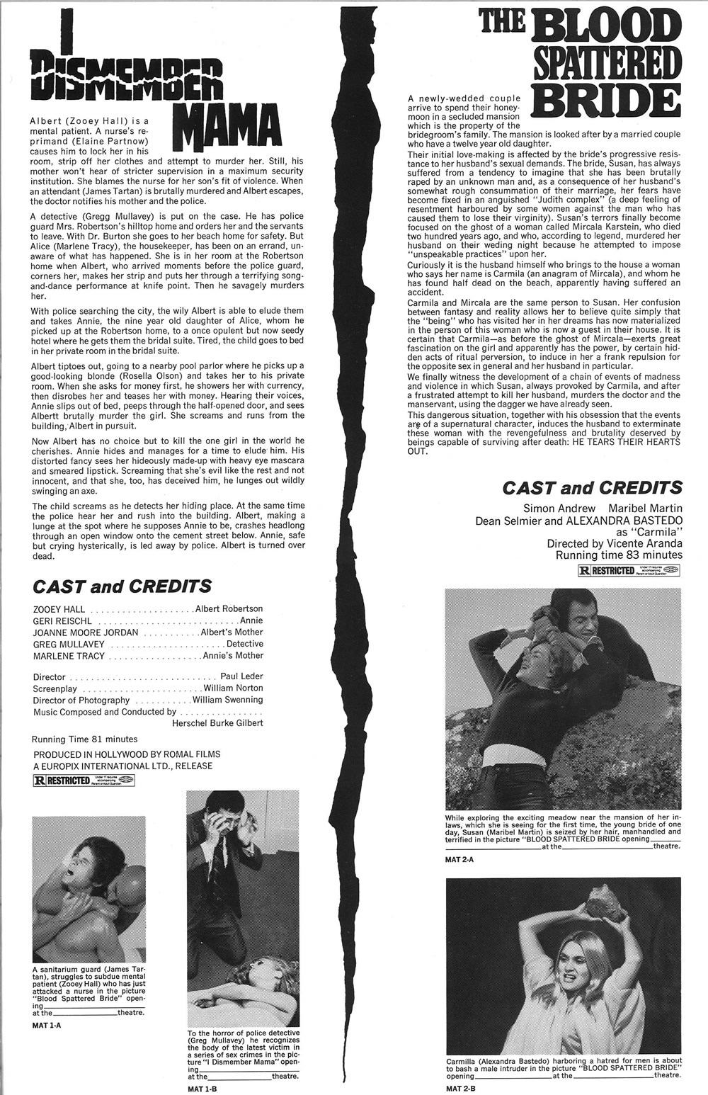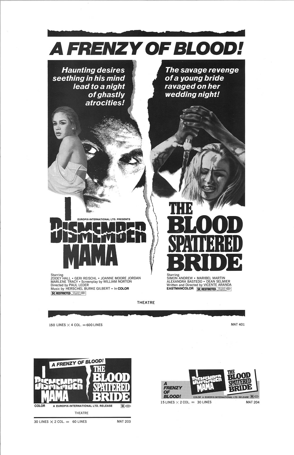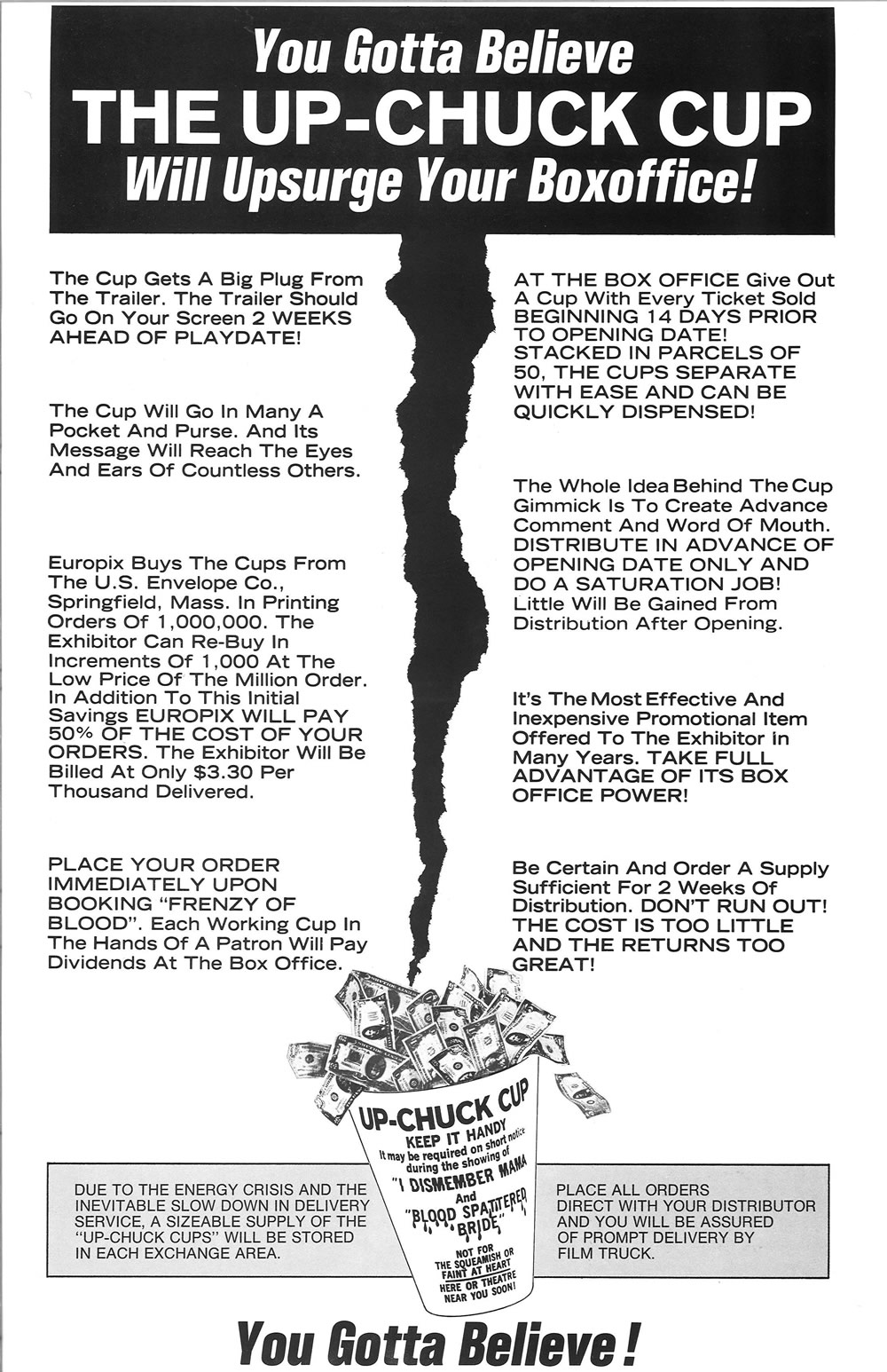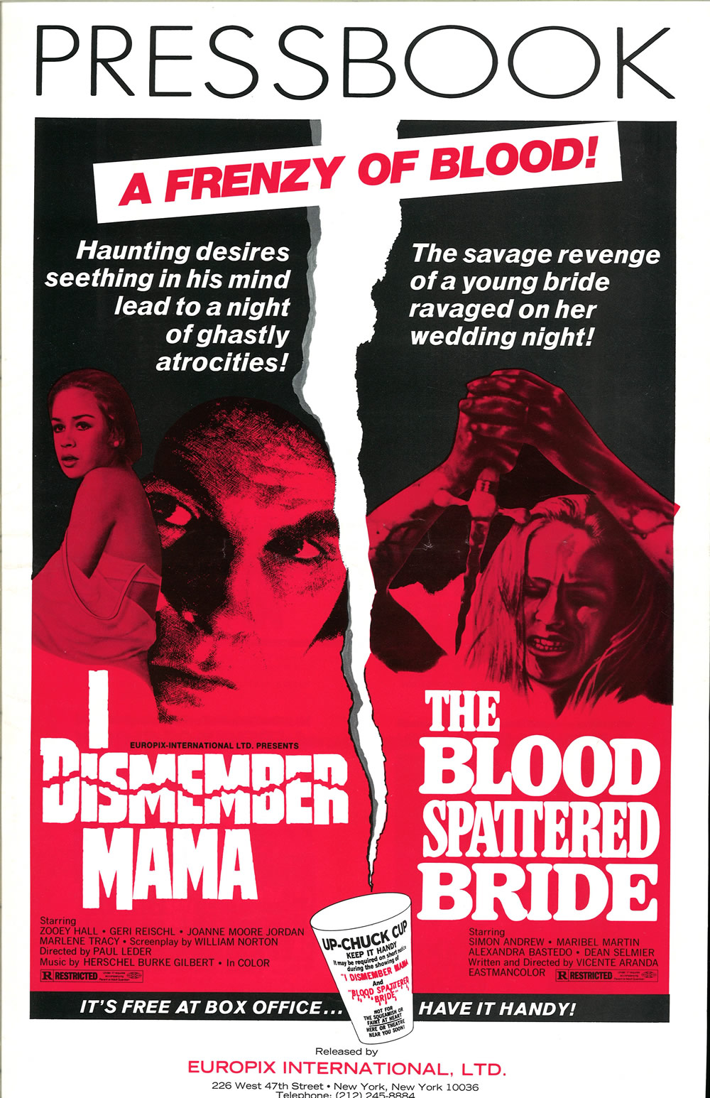Double Bill Pressbook: I Dismember Mama and The Blood Splattered Bride Leave a Comment / Pressbooks (Horror, Sci Fi, Fantasy) / By JM Cozzoli I can think of more movies the "Up-Chuck Cup" gimmick could be used with.Like this:Like Loading... Share this post Facebook Twitter Pinterest Linkedin